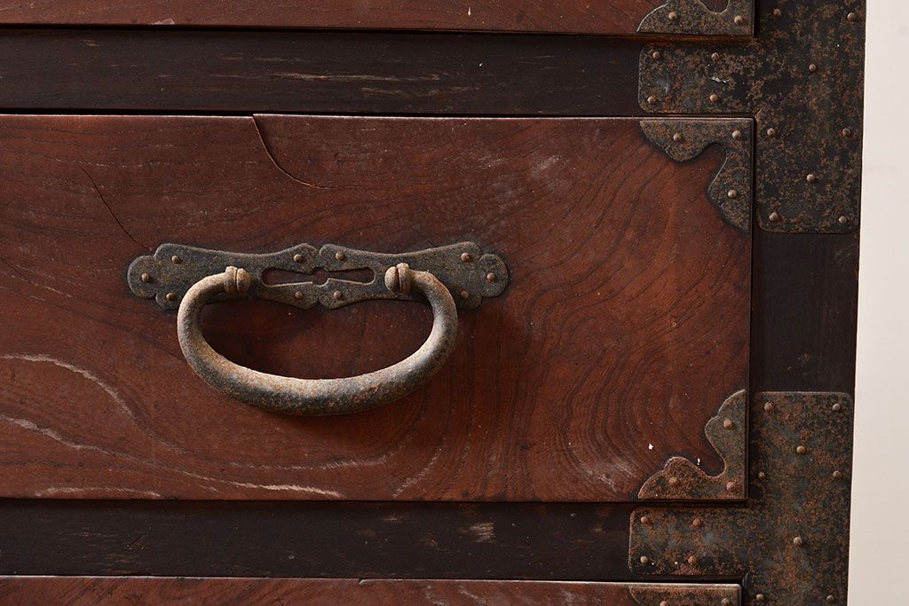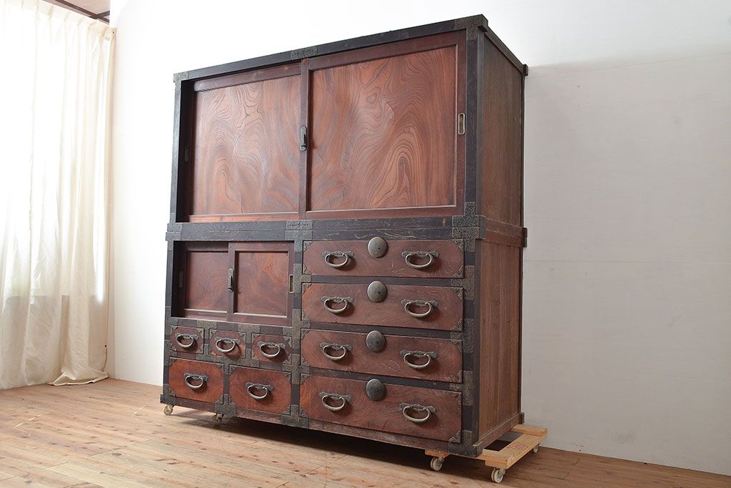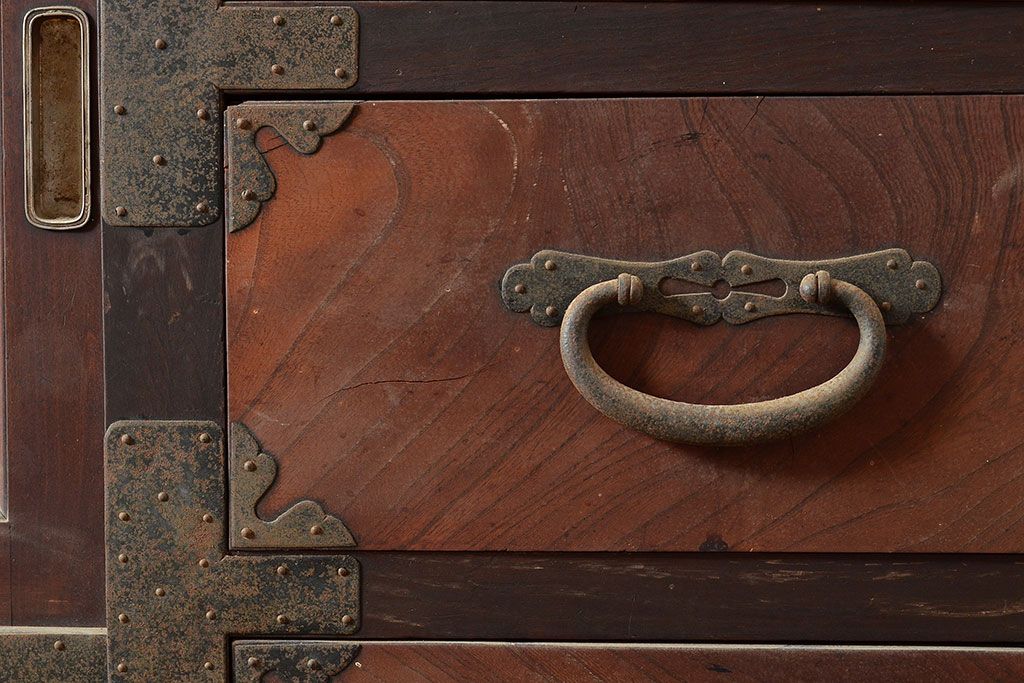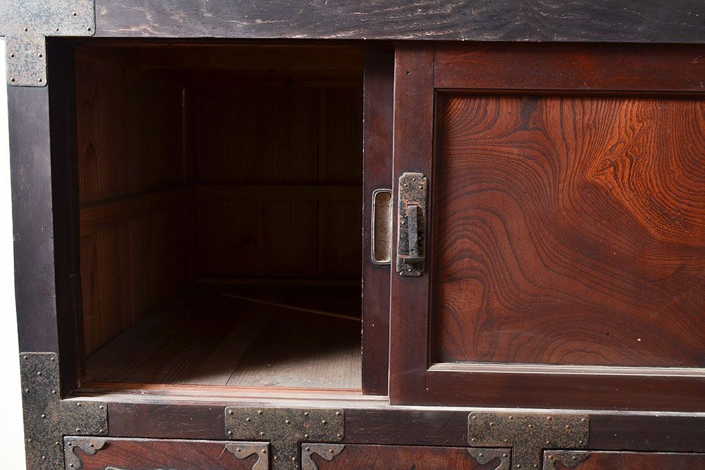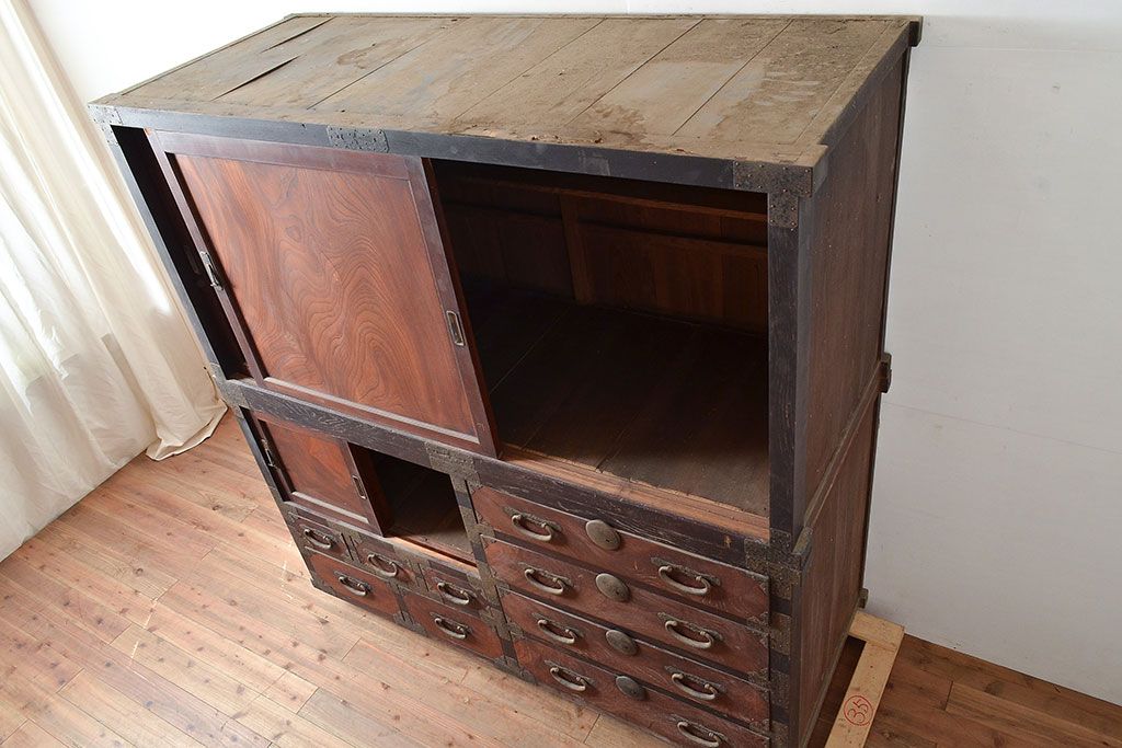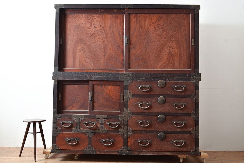 和箪笥 > 和製アンティーク 堂々とした存在感を放つ明治期の収納箪笥(夜具箪笥、布団箪笥、水屋箪笥)(R-047532)