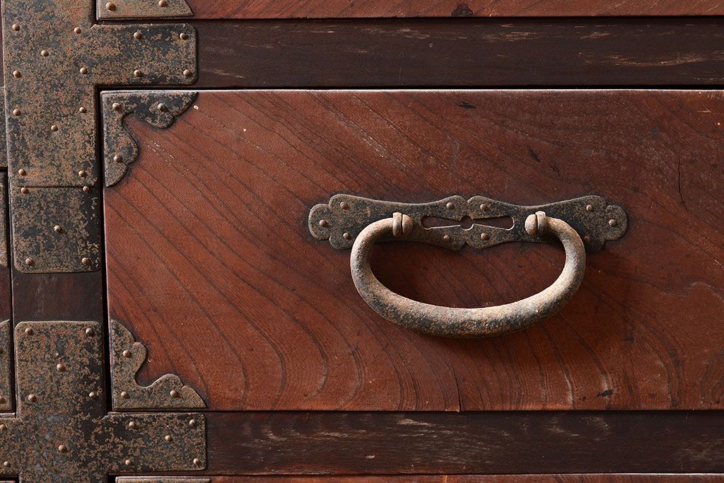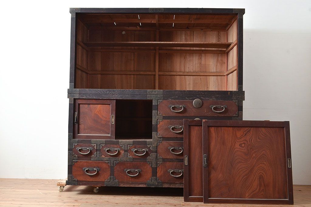 和箪笥> 水屋箪笥 > 和製アンティーク 堂々とした存在感を放つ明治期の収納箪笥(夜具箪笥、布団箪笥、水屋箪笥)(R-047532)