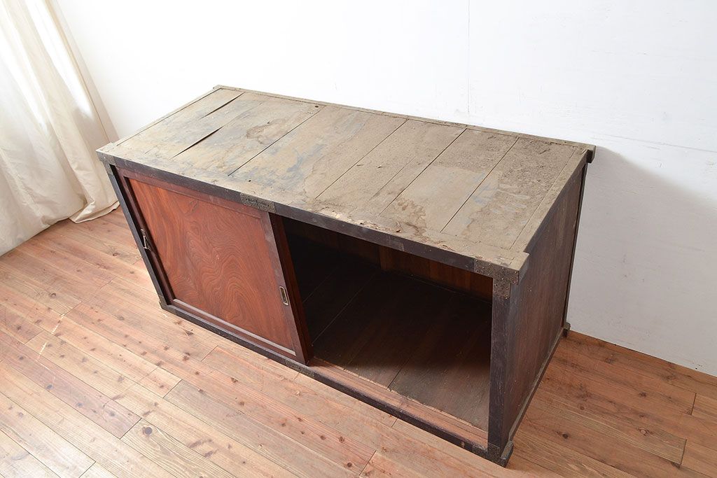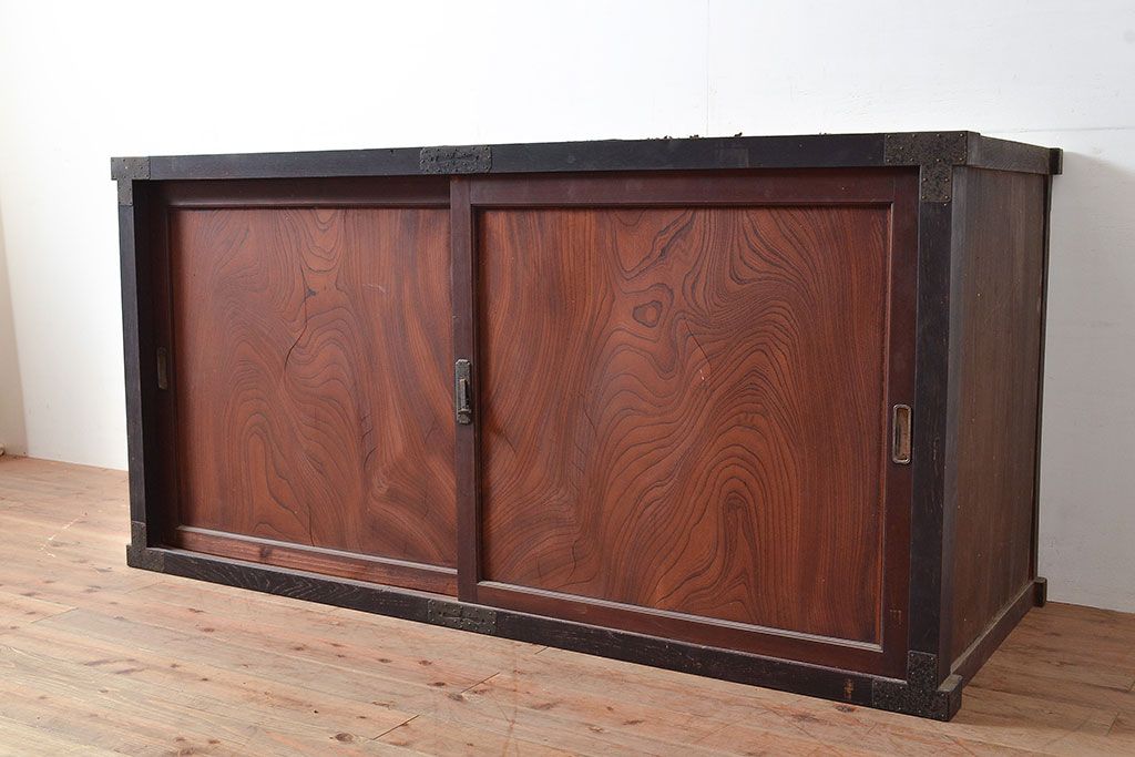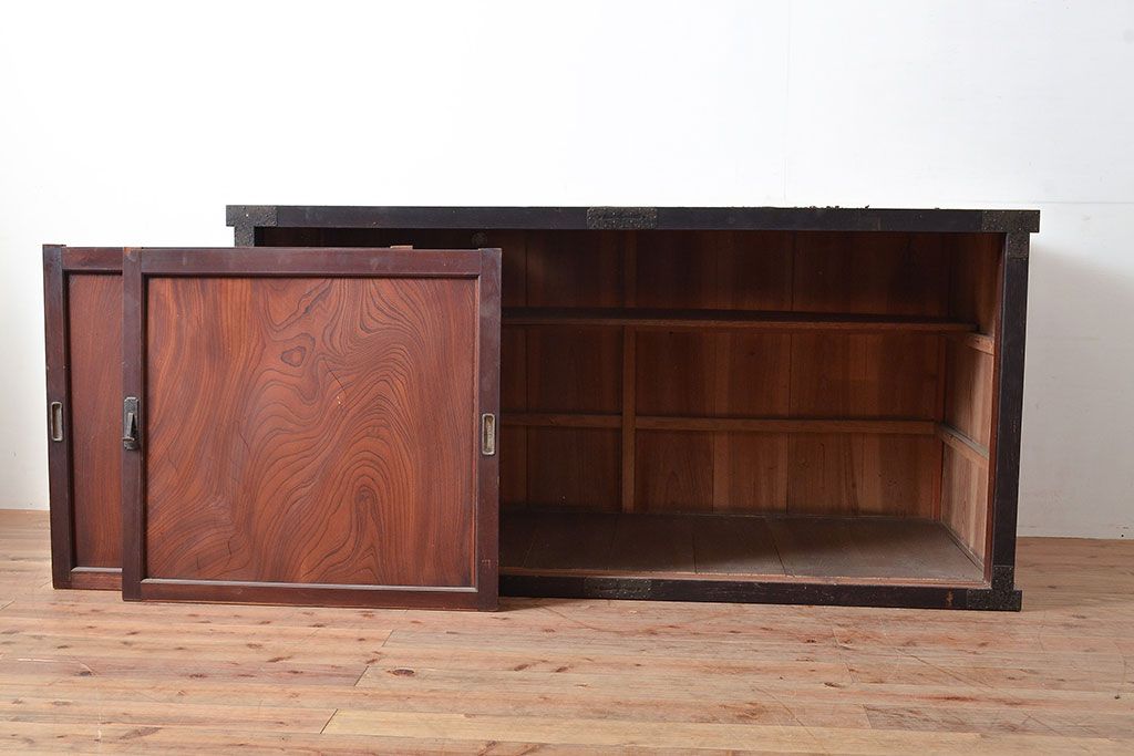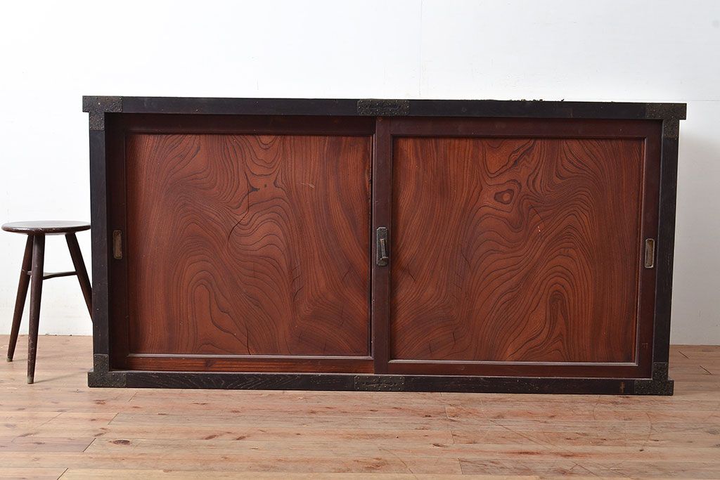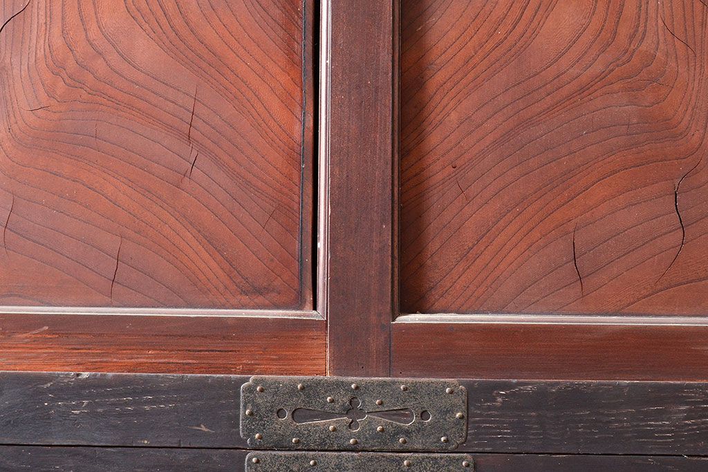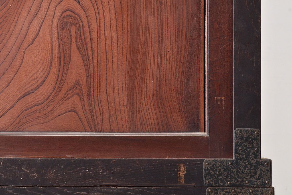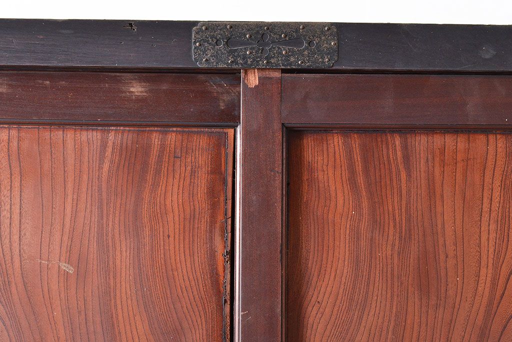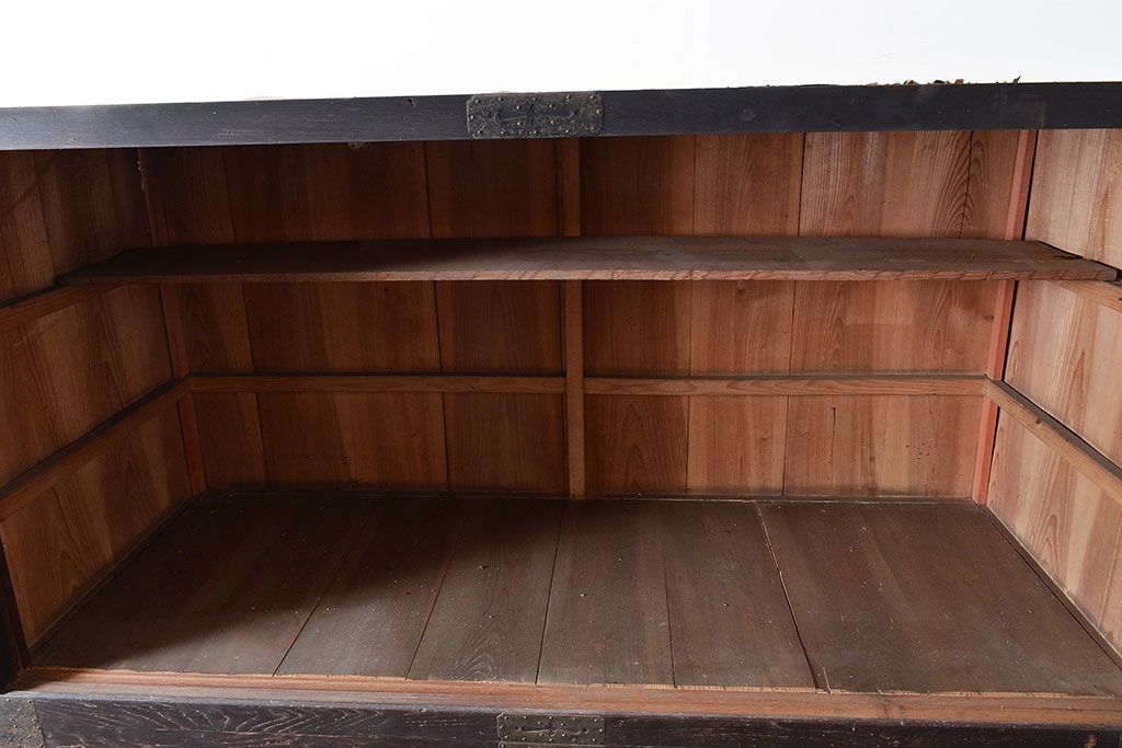 キャビネット・戸棚> サイドボード > 和製アンティーク 使い込まれた木肌や金具が味わい深い収納箪笥・上段(夜具箪笥、布団箪笥、サイドボード)(R-047533)