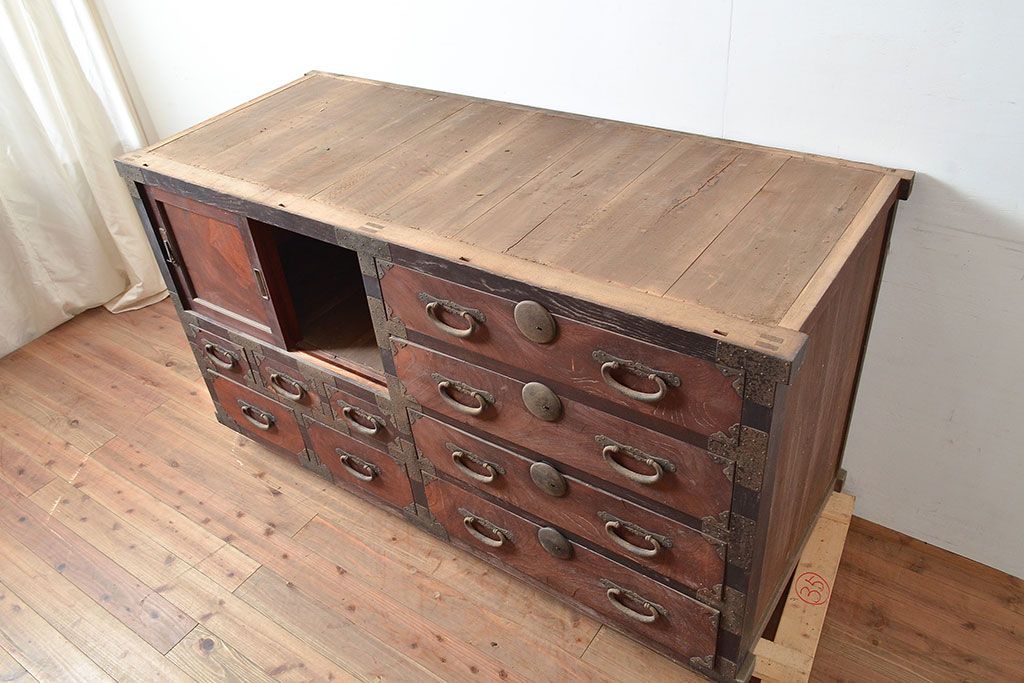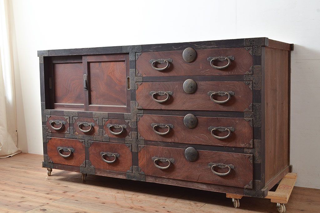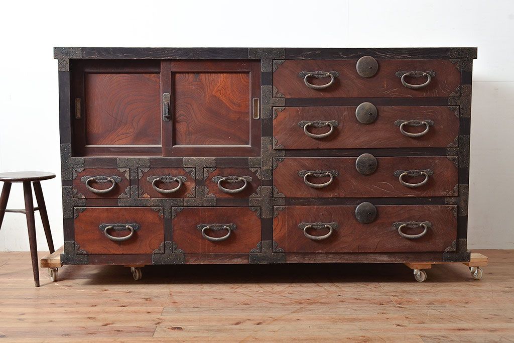 キャビネット・戸棚> サイドボード > 和製アンティーク 堂々とした存在感を放つ明治期の収納箪笥・下段(夜具箪笥、水屋箪笥、サイドボード)(R-047534)