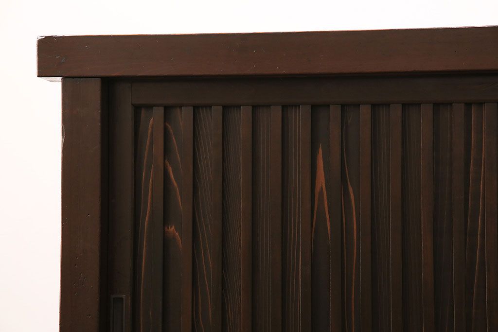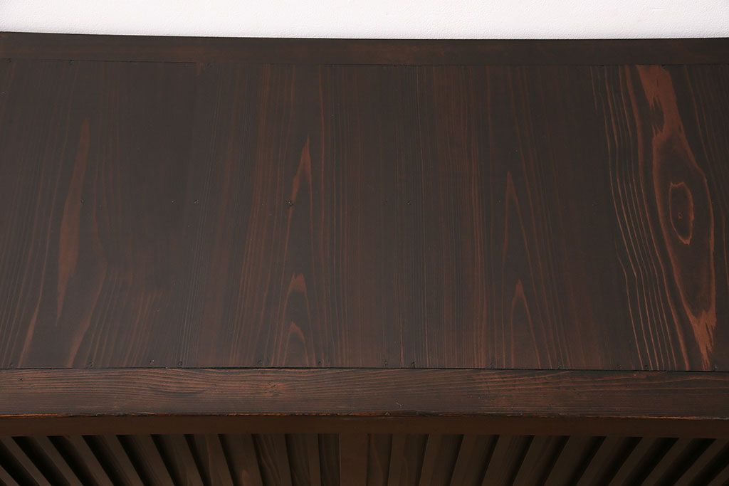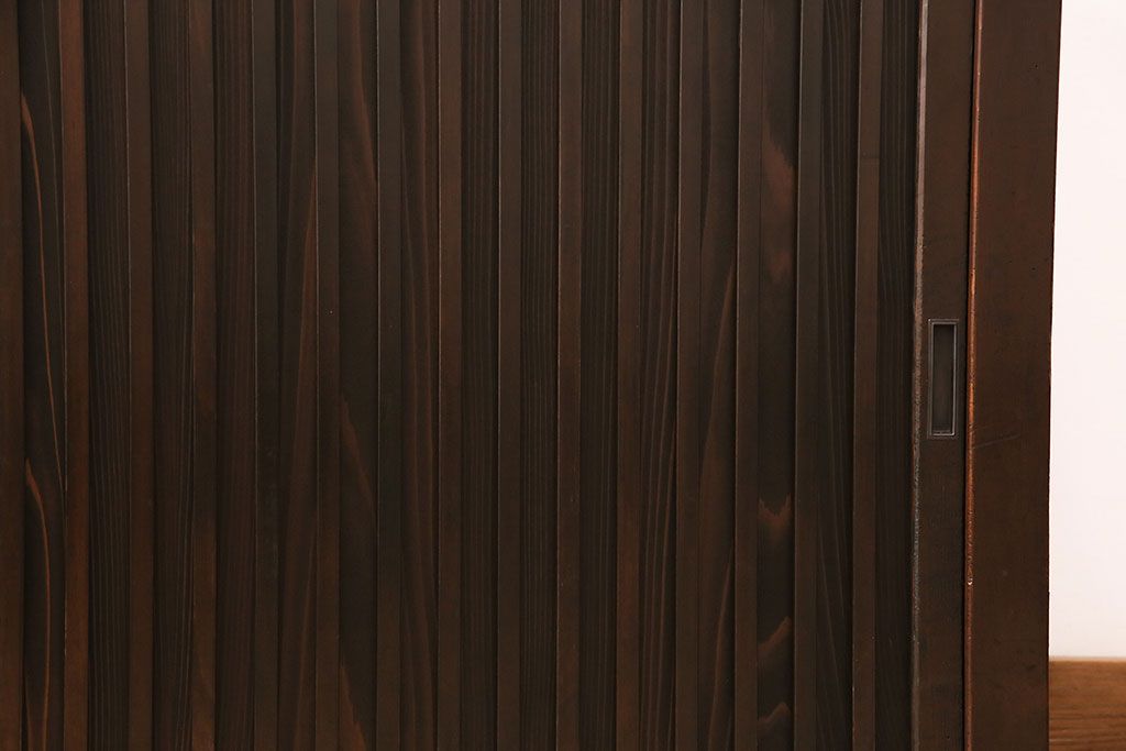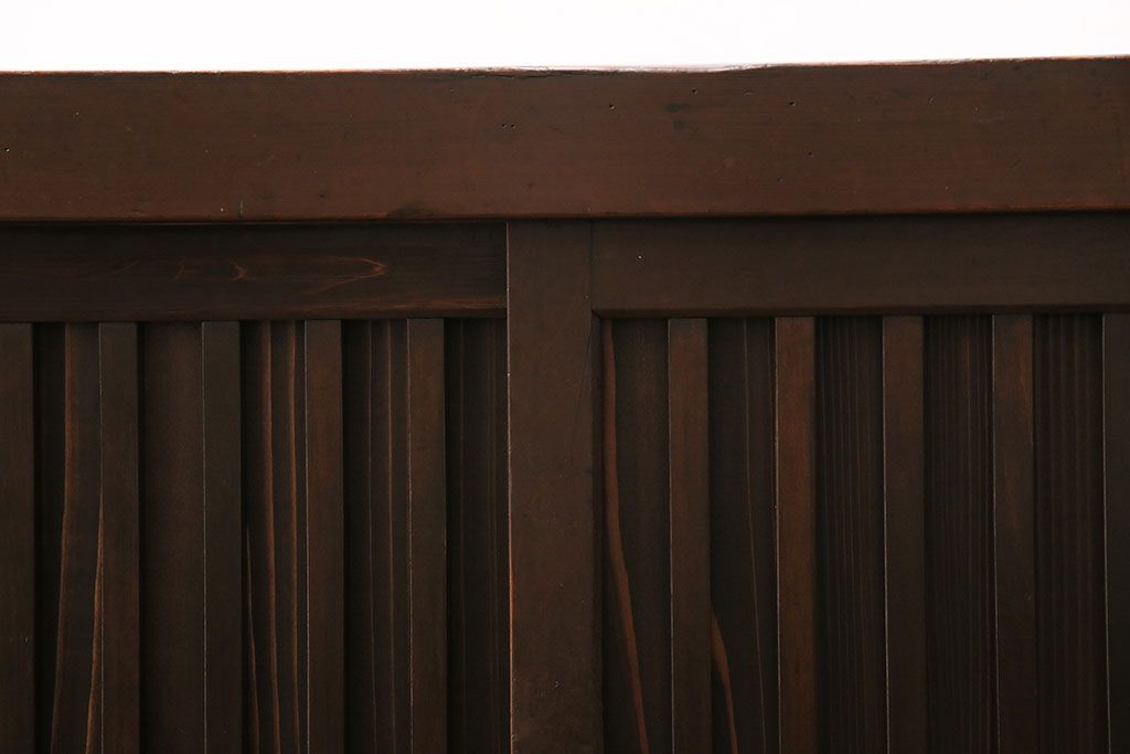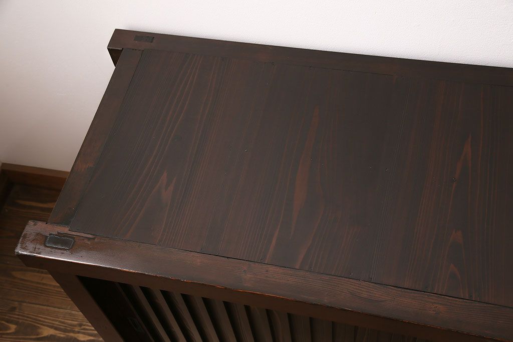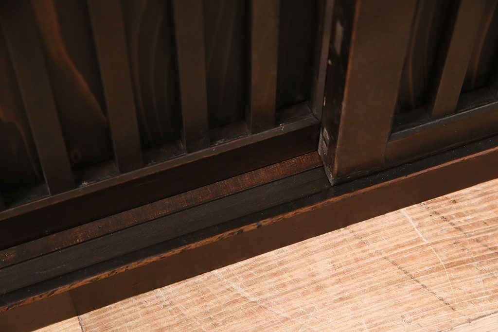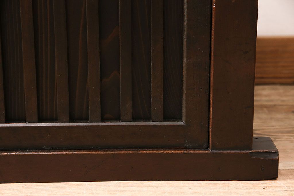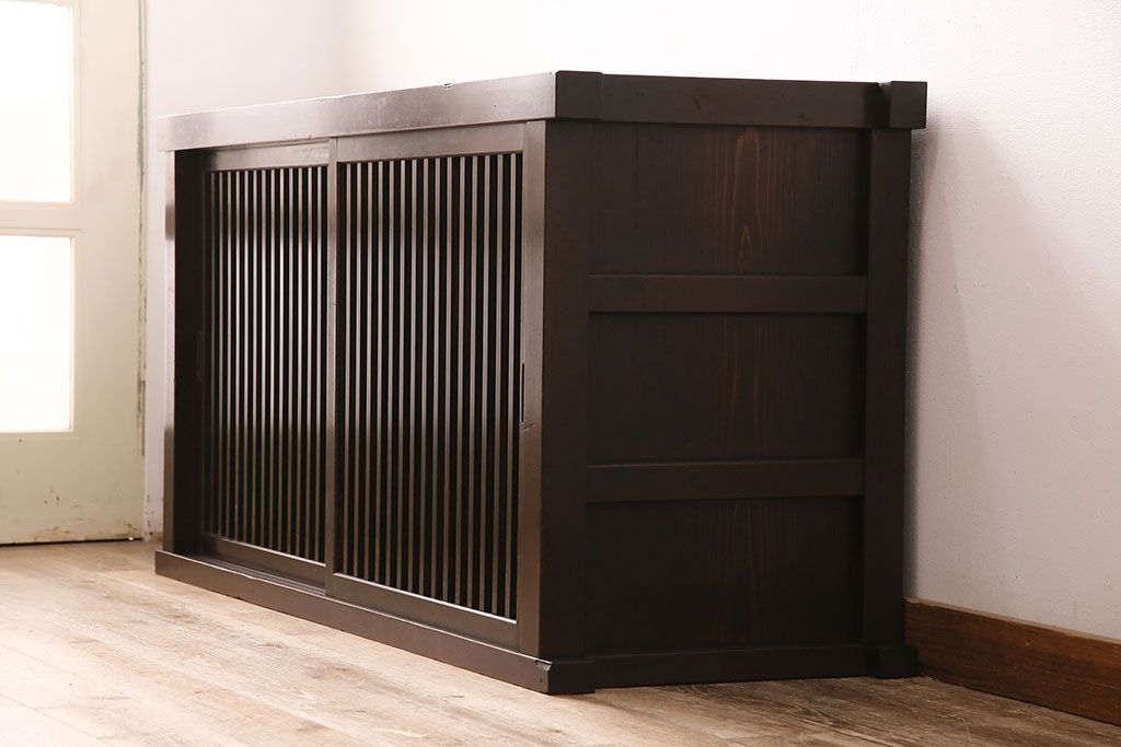 和箪笥> 水屋箪笥 > 水屋箪笥サイドボードをリペア&カスタム!建具は縦格子を製作。収納部はセパレートさせ、可動式の棚板を設置。現状に近しい色味に着色し仕上げ。(収納棚、戸棚、リビングボード、下駄箱)