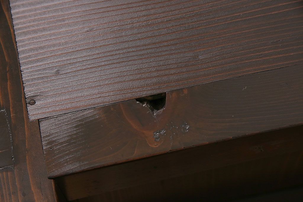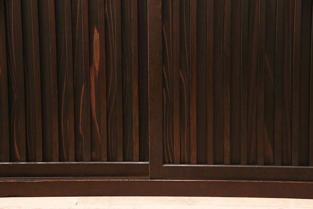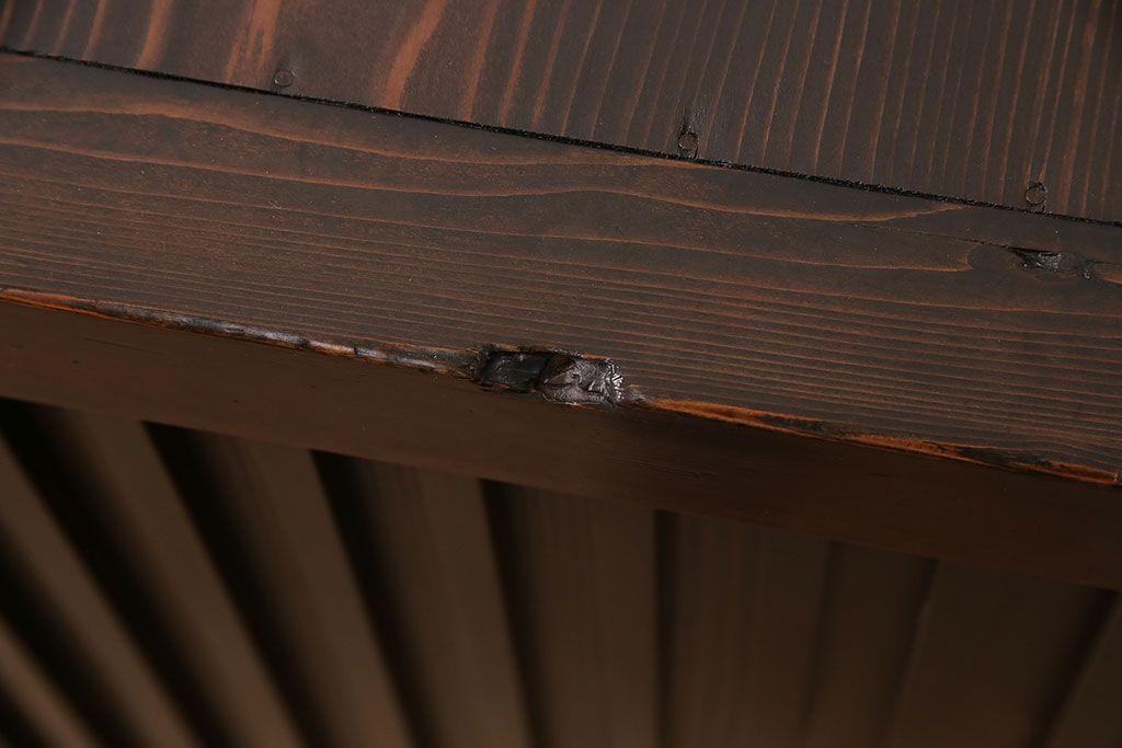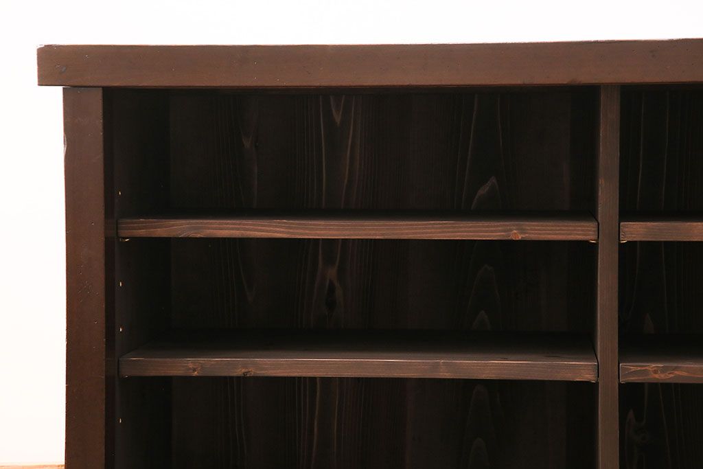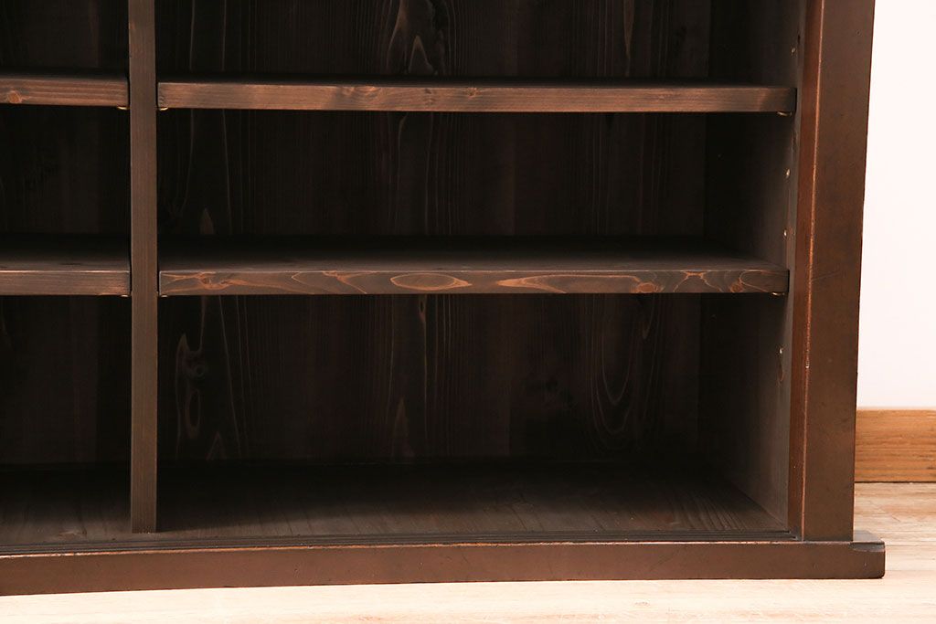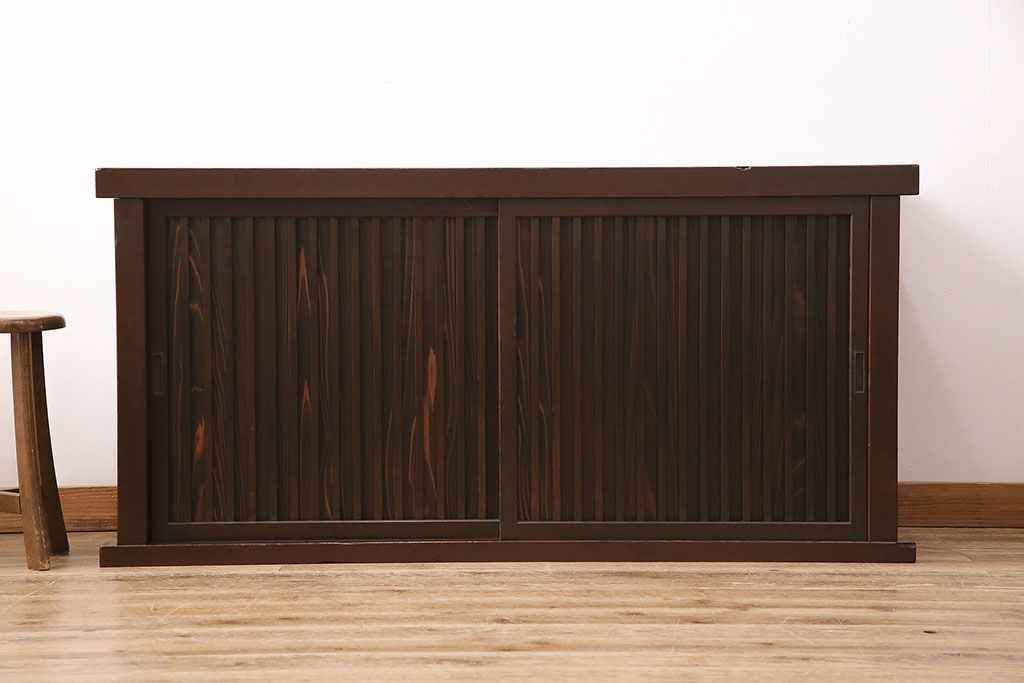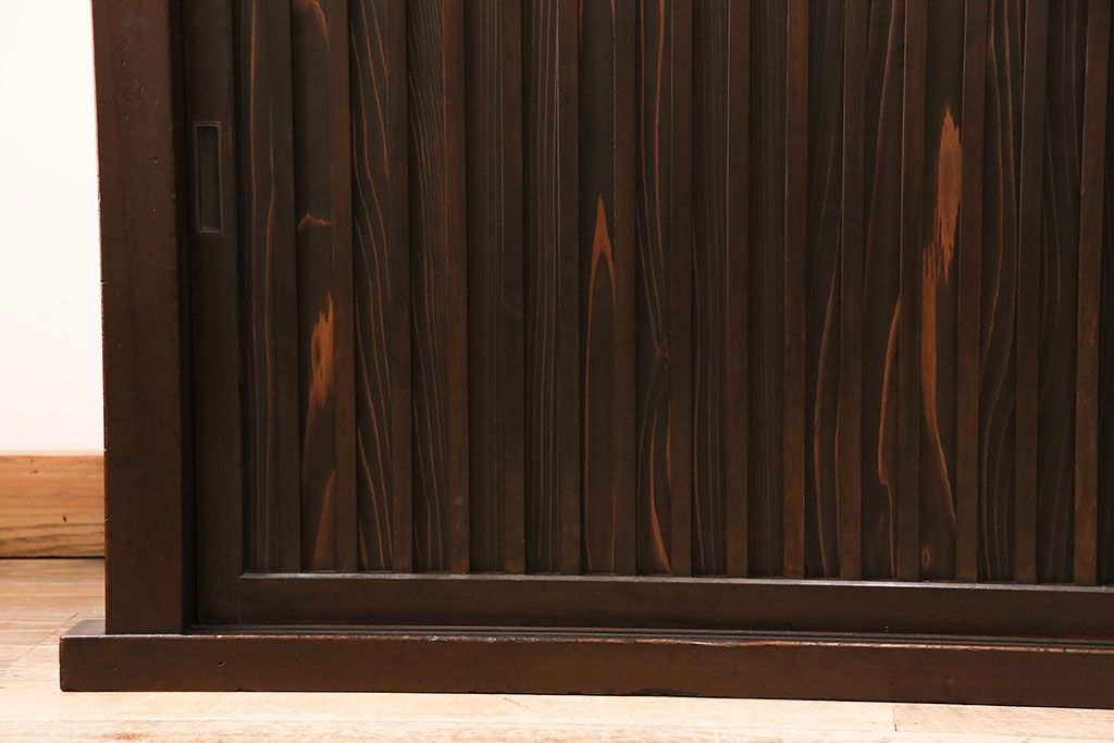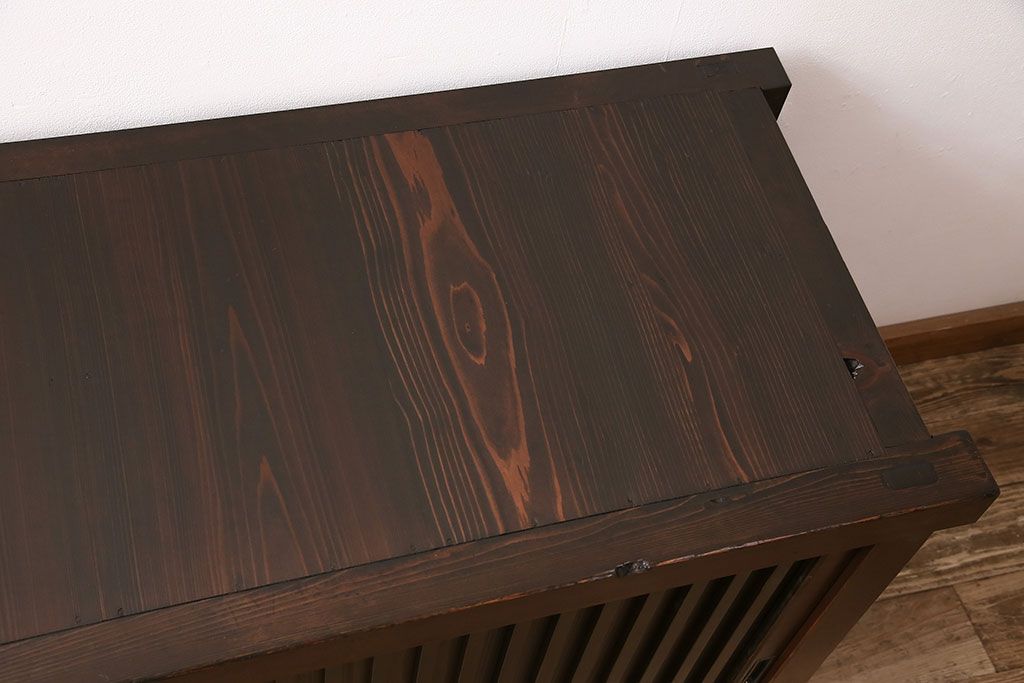 和箪笥> 水屋箪笥 > 水屋箪笥サイドボードをリペア&カスタム!建具は縦格子を製作。収納部はセパレートさせ、可動式の棚板を設置。現状に近しい色味に着色し仕上げ。(収納棚、戸棚、リビングボード、下駄箱)