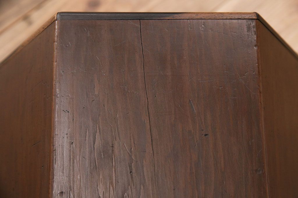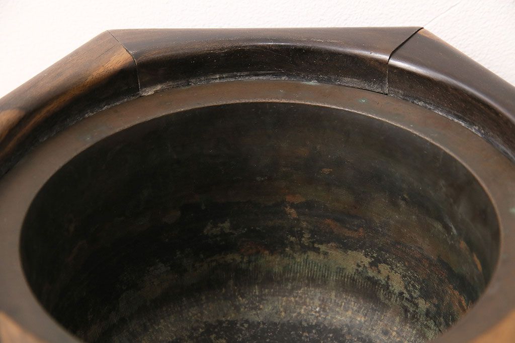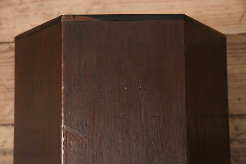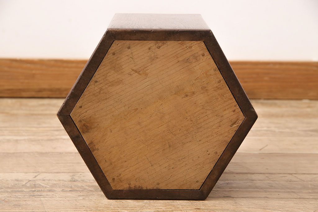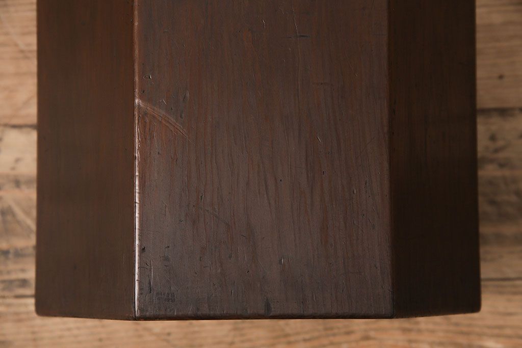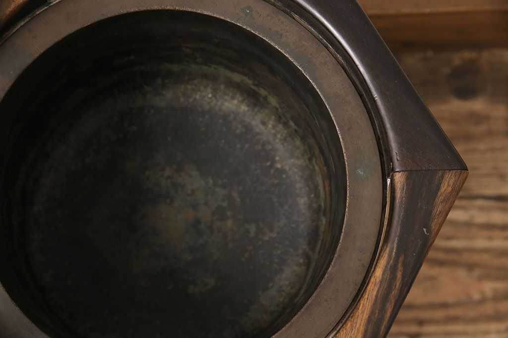 アンティーク雑貨 本体杉材・上部黒柿材 凝った意匠がぱっと目を引く六角型木製火鉢(角火鉢)(R-048502)