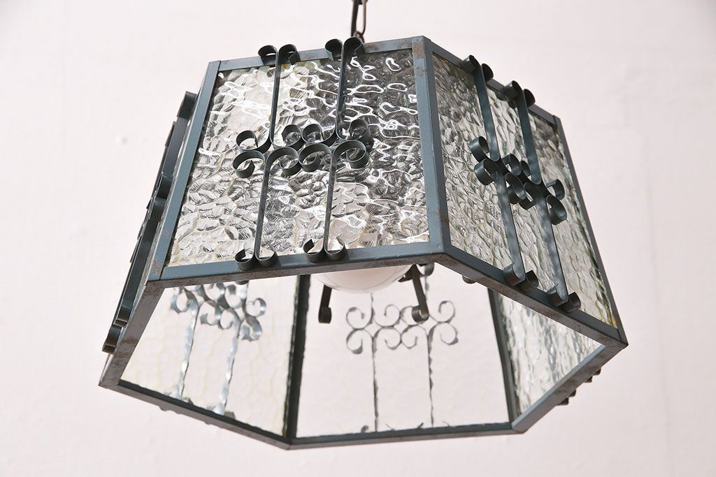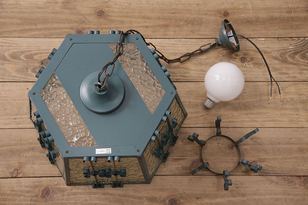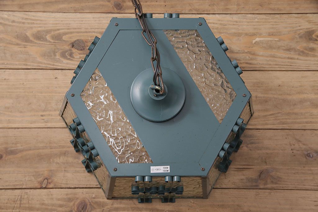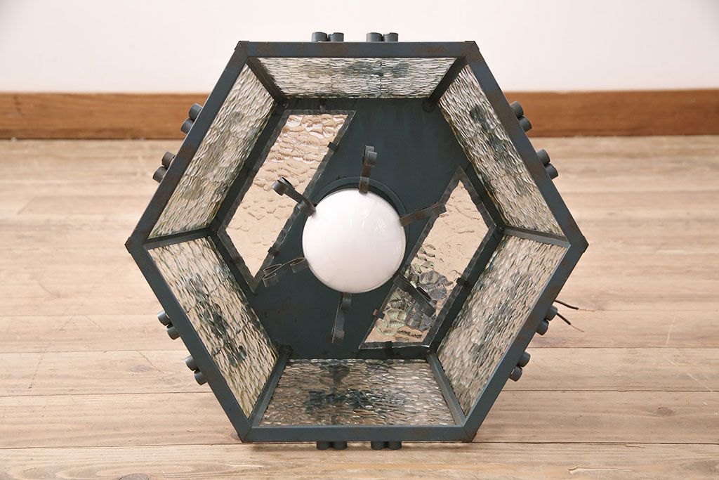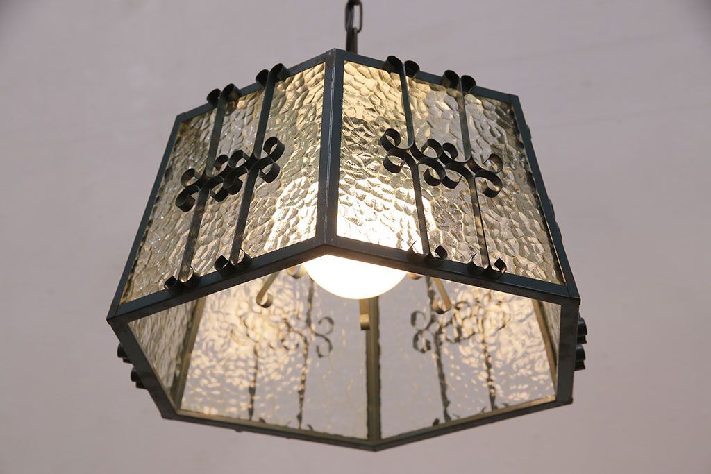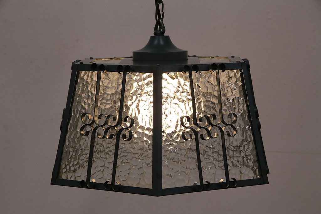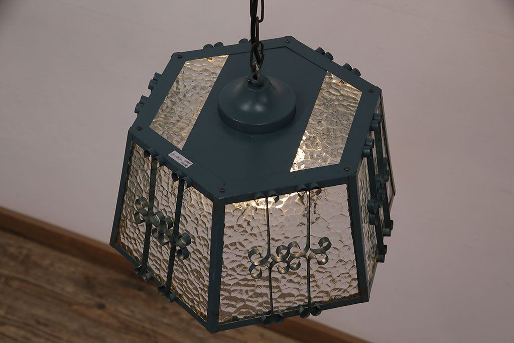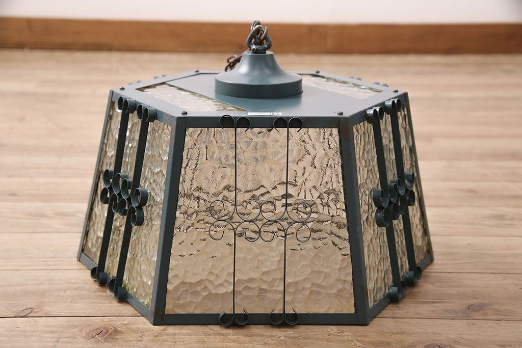 アンティーク照明 昭和レトロ 石目模様のガラスが懐かしさ漂う天井照明(ペンダントライト、吊り下げ照明)(R-048613)です。