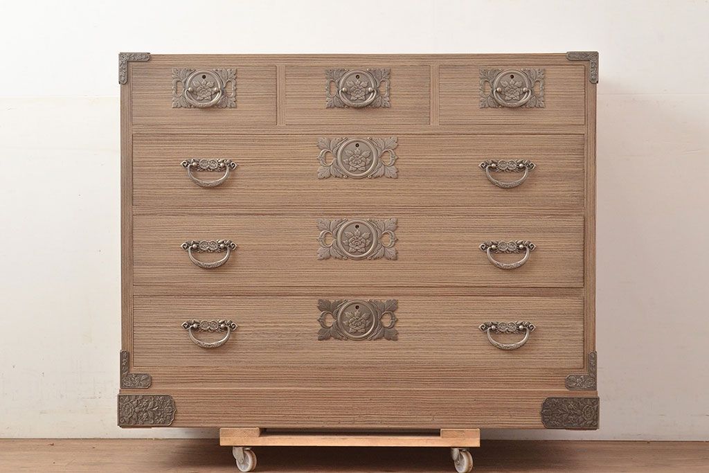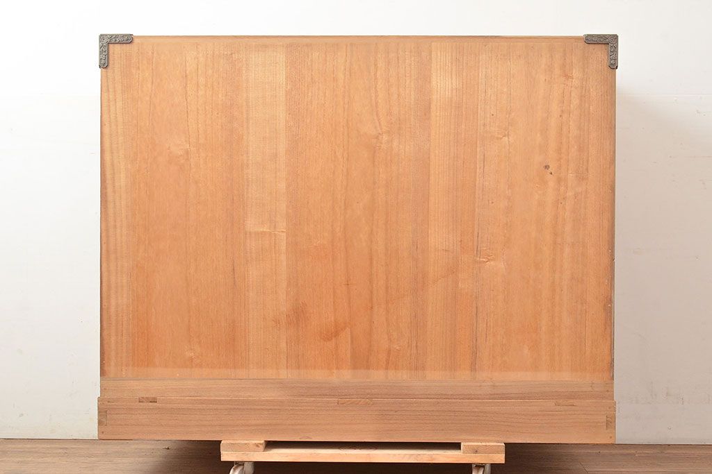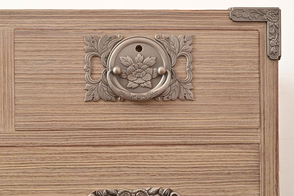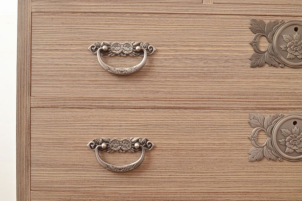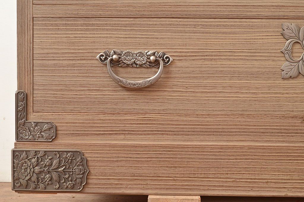 和箪笥 > 中古 国産 伝統工芸 桐屋田中製 優美な牡丹金具が品の良さを高める総桐材製の衣装箪笥(定価約60万円)(桐箪笥、整理箪笥、チェスト、引き出し、桐たんす)(R-048403)