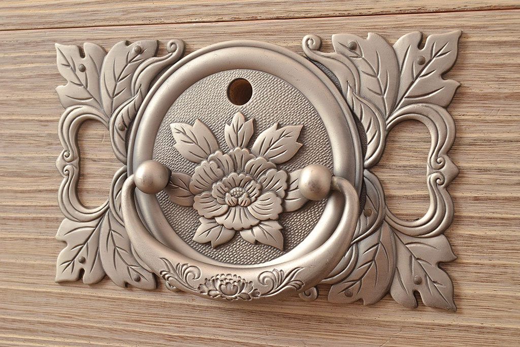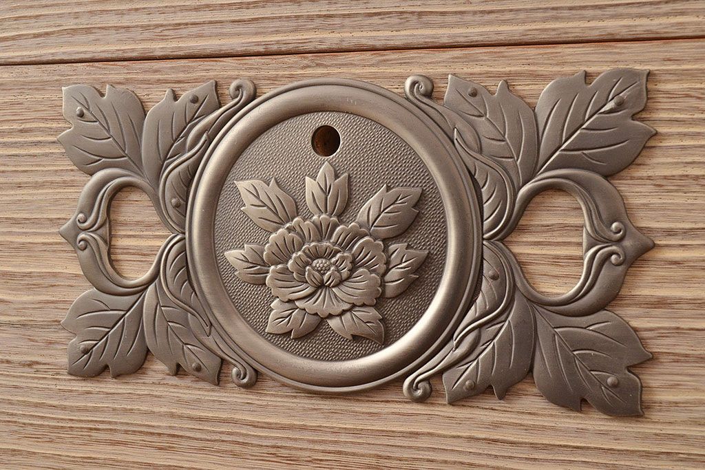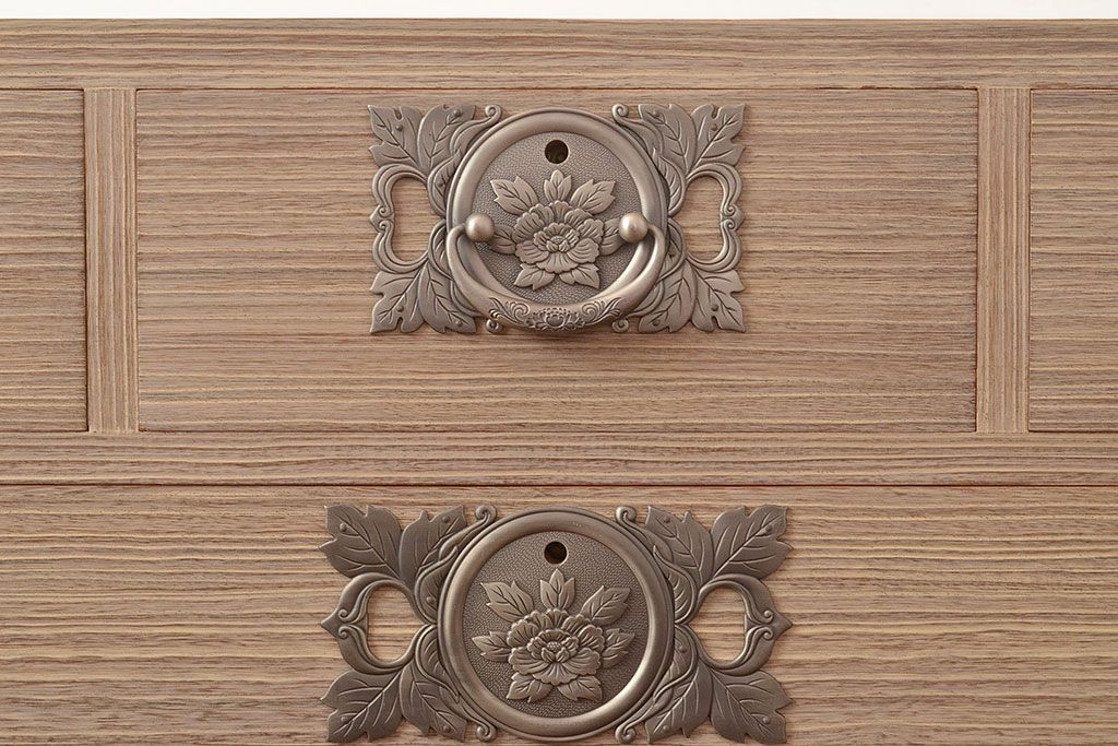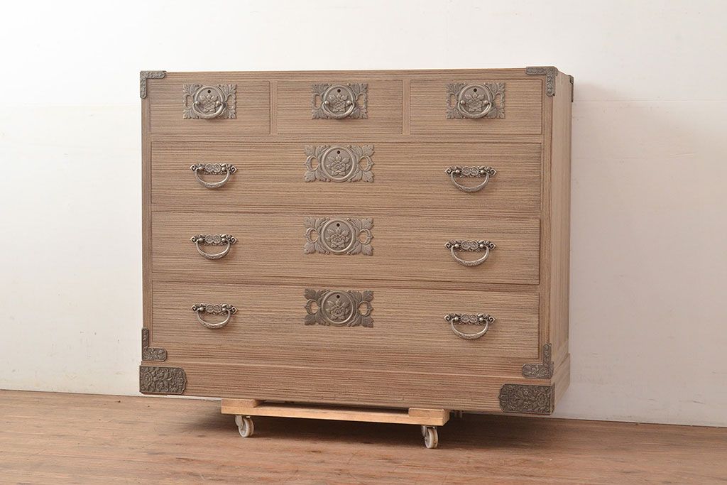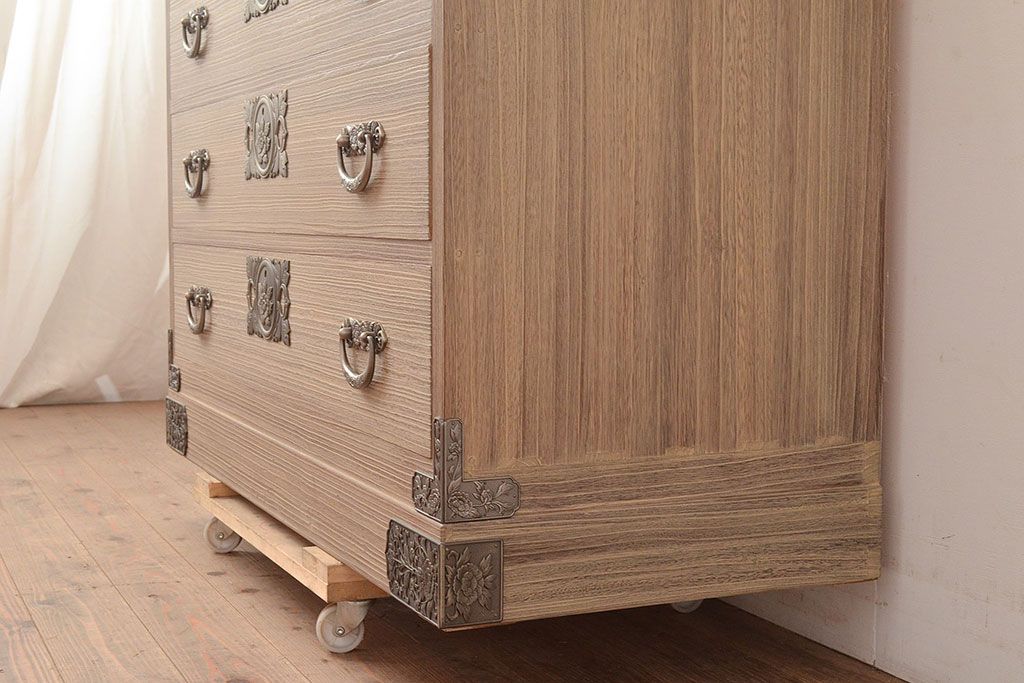 和箪笥 > 中古 国産 伝統工芸 桐屋田中製 優美な牡丹金具が品の良さを高める総桐材製の衣装箪笥(定価約60万円)(桐箪笥、整理箪笥、チェスト、引き出し、桐たんす)(R-048403)