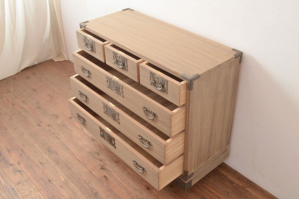 中古 国産 伝統工芸 桐屋田中製 優美な牡丹金具が品の良さを高める総桐材製の衣装箪笥(定価約60万円)(桐箪笥、整理箪笥、チェスト、引き出し、桐たんす)(R-048403)