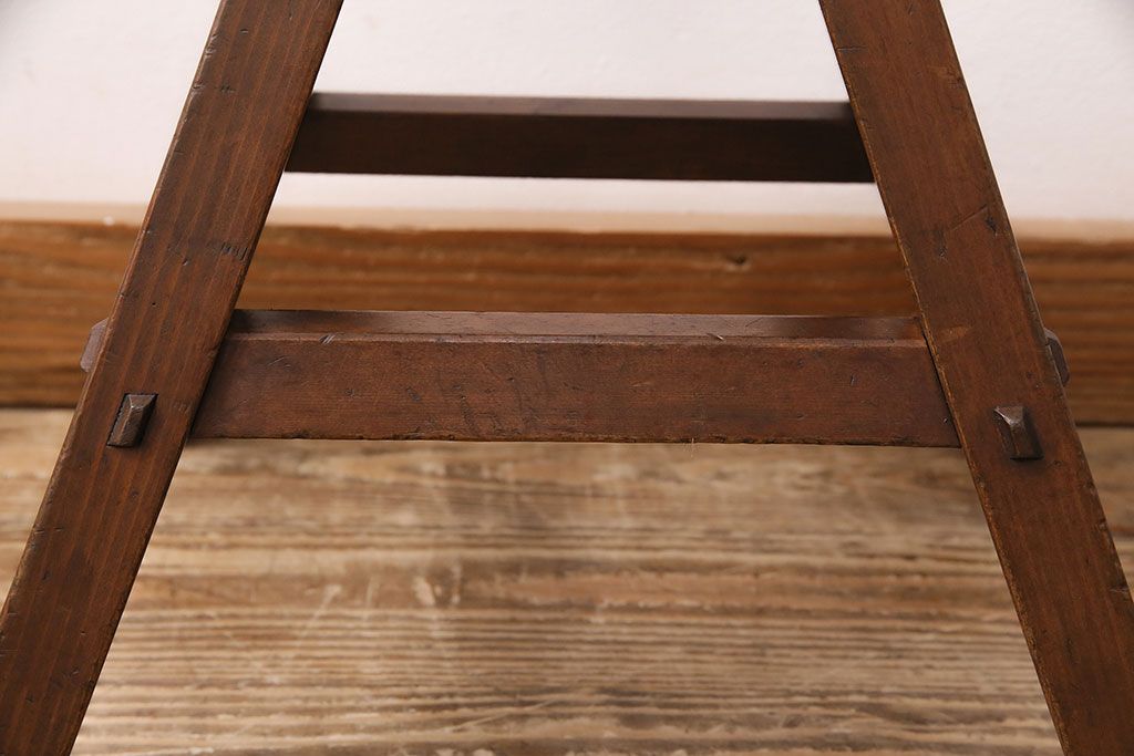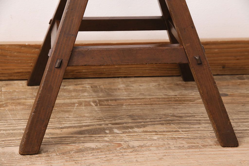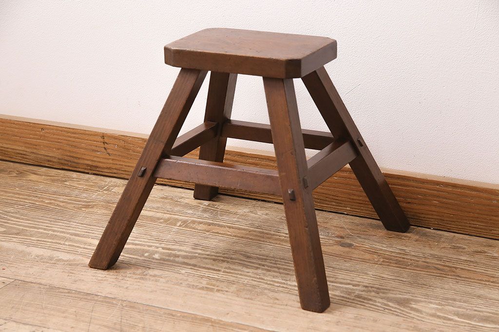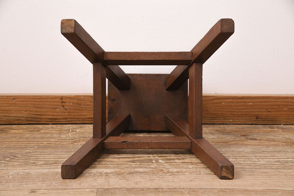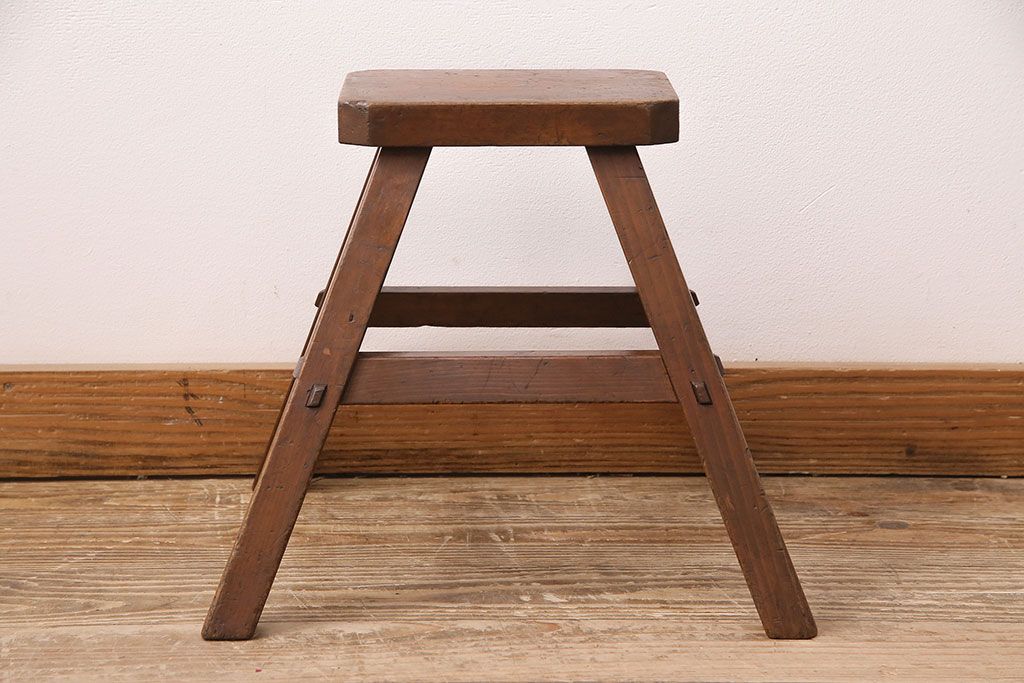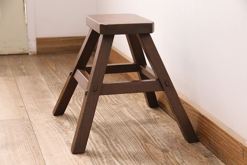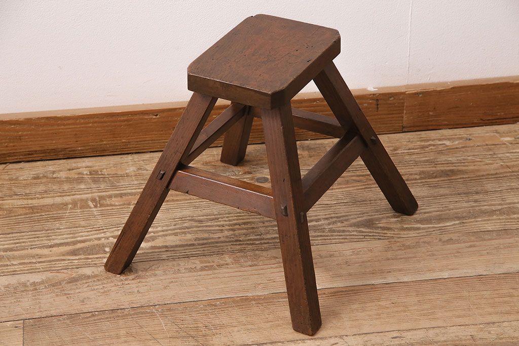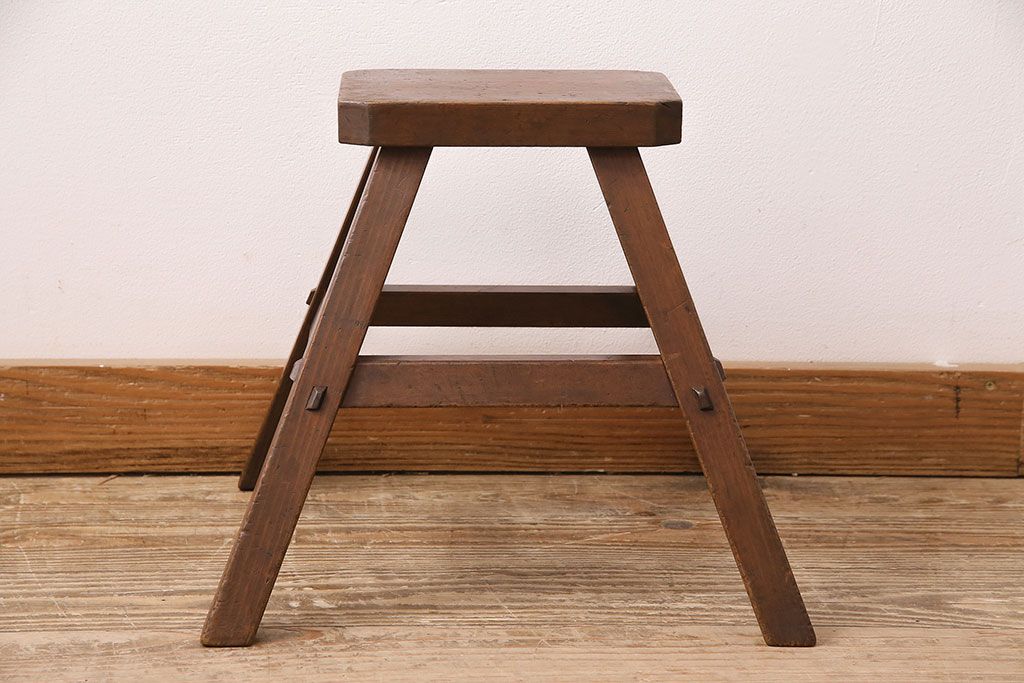 ラフジュ工房> 花台・飾り台 > 和製アンティーク 使い込まれた木肌が味わい深い、レトロな踏み台(スツール、花台)(R-048635)