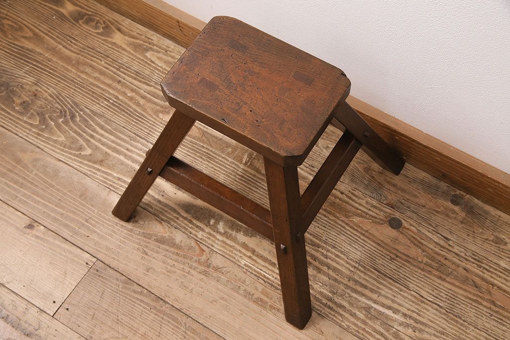 ラフジュ工房> 椅子・ベンチ> スツール > 和製アンティーク 使い込まれた木肌が味わい深い、レトロな踏み台(スツール、花台)(R-048635)