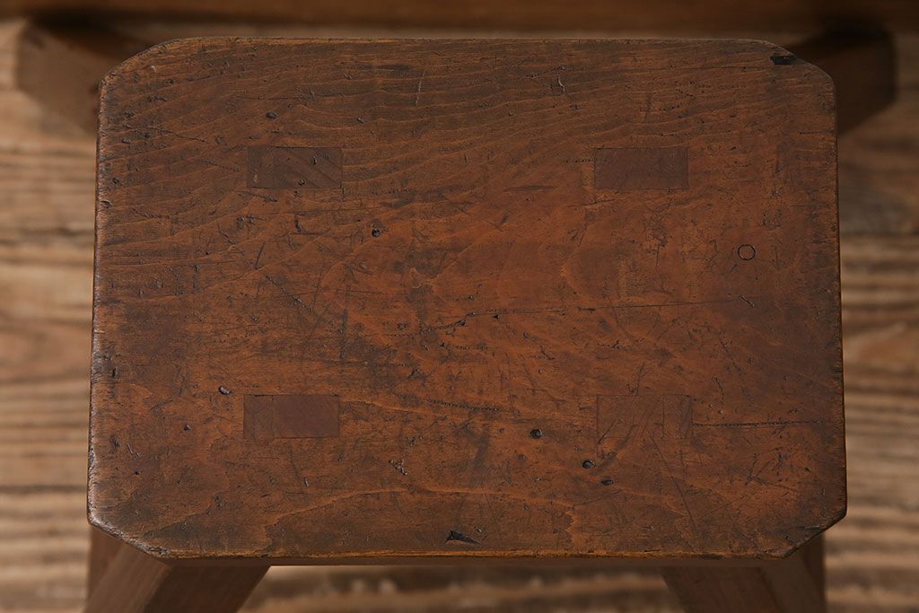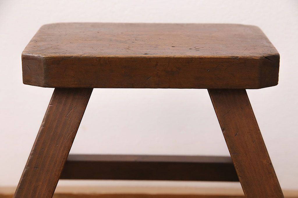 ラフジュ工房> 古道具・古民具> 踏み台 > 和製アンティーク 使い込まれた木肌が味わい深い、レトロな踏み台(スツール、花台)(R-048635)