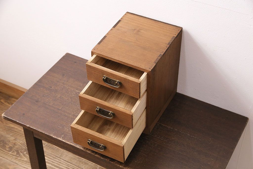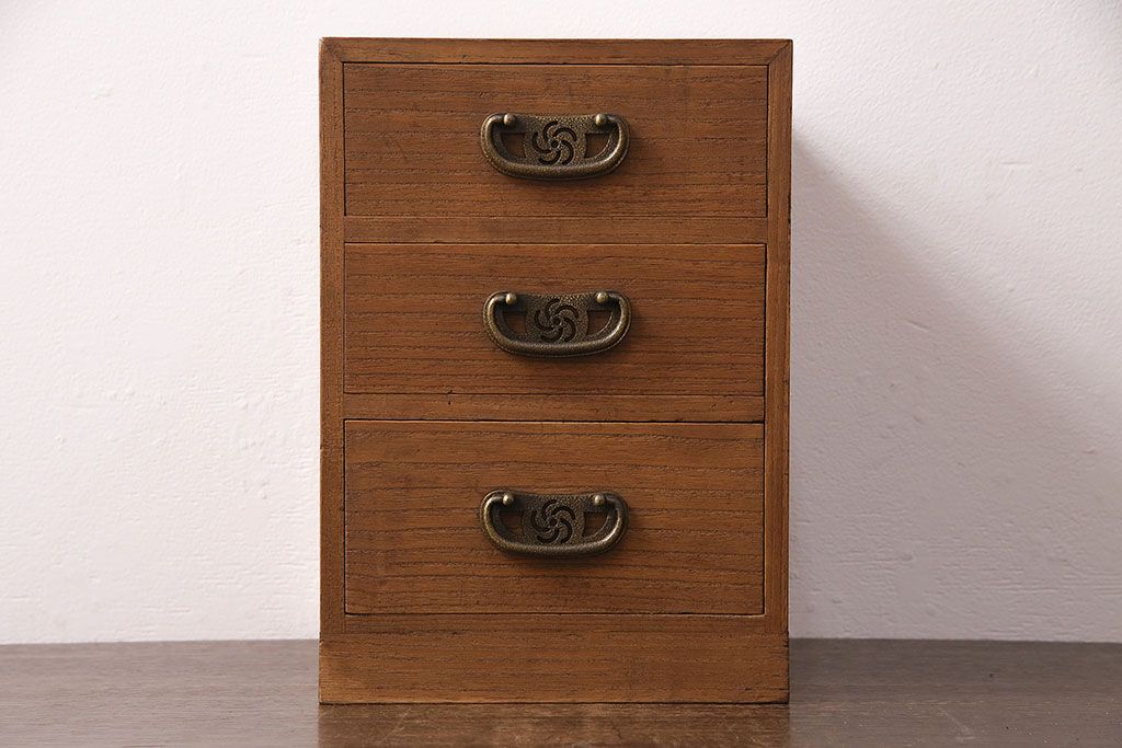 アンティーク家具 桐材 可愛らしい引手と上品な雰囲気が魅力の小引き出し(小物収納、卓上収納、引き出し、チェスト)(R-048533)