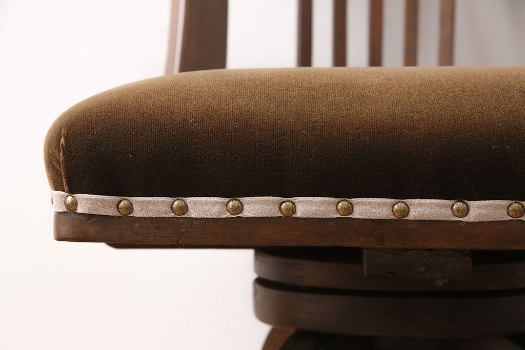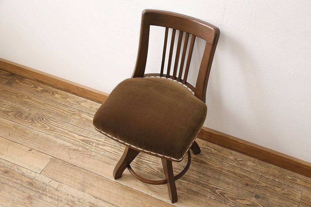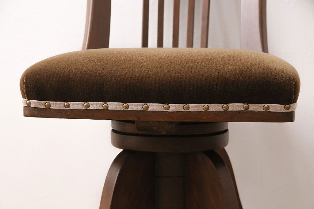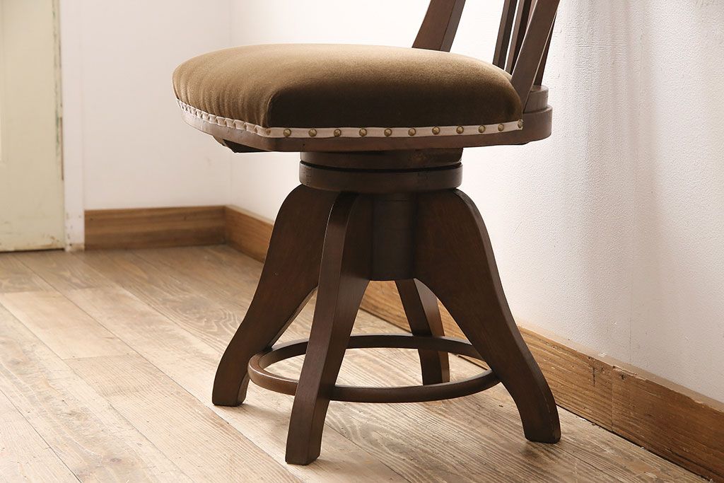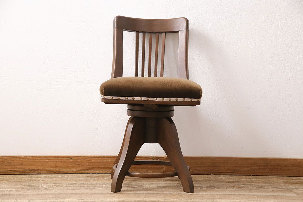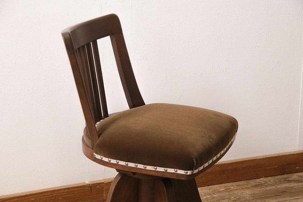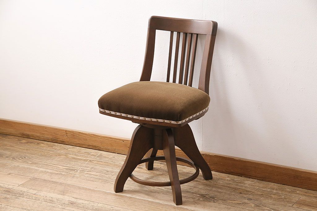 椅子・ベンチ> 回転椅子 > アンティーク家具 樺材 落ち着いた色合いのレトロな回転チェア(ドクターチェア、回転椅子、椅子)(R-048495)