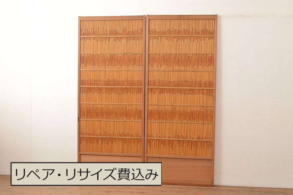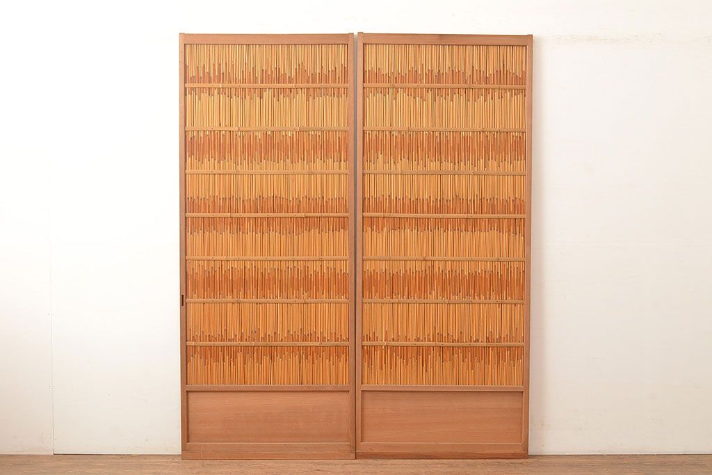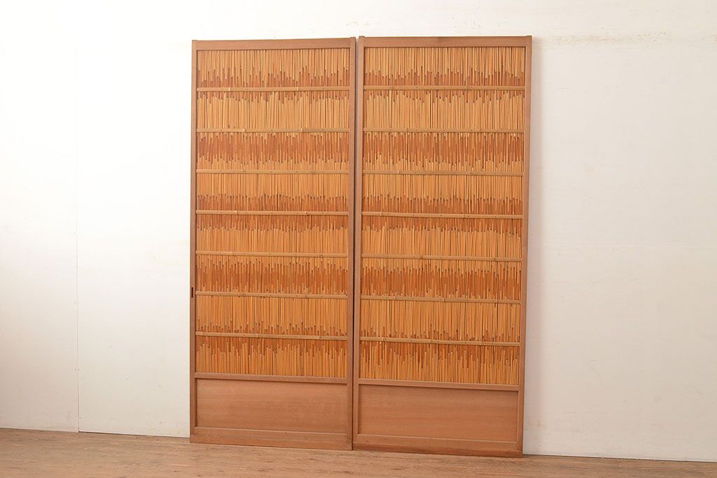 ドア・建具> 簾戸・夏戸・網戸 > 和製アンティーク 夏の暑さを快適にしてくれる、品のある佇まいの簀戸2枚セット(簾戸、簀戸、葭戸、夏障子、すど、葦戸)(R-048228)