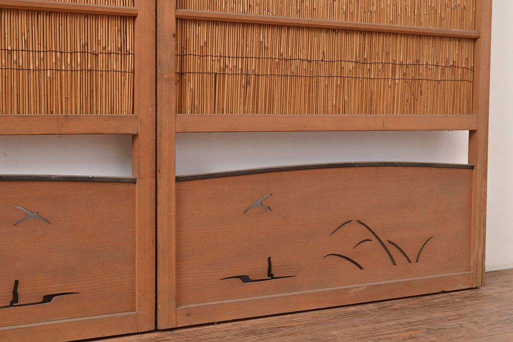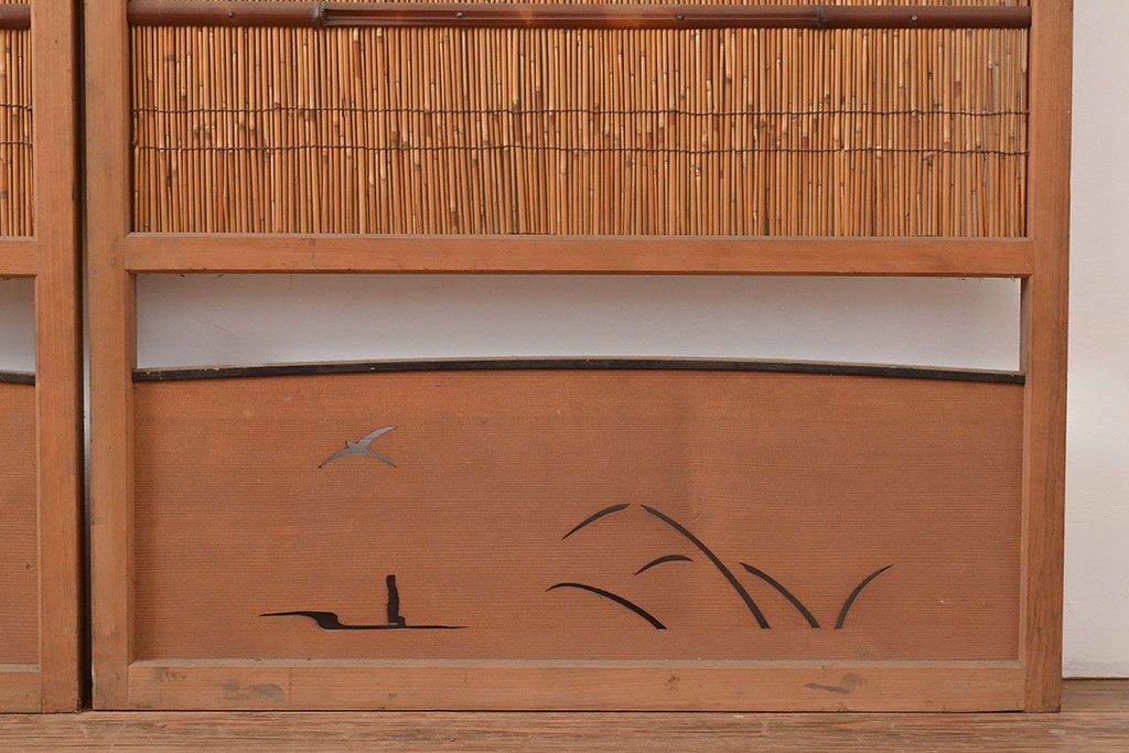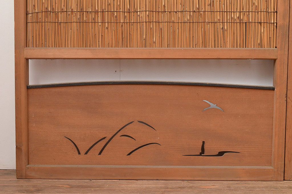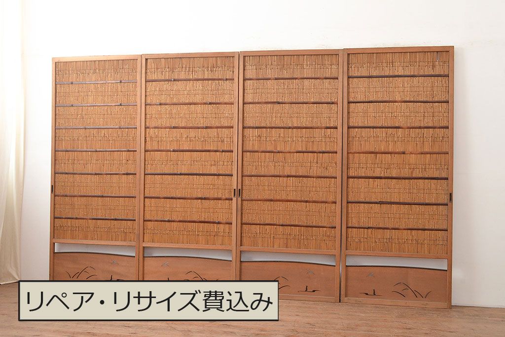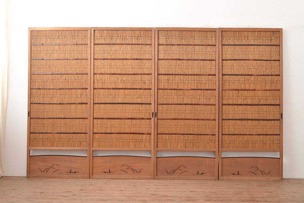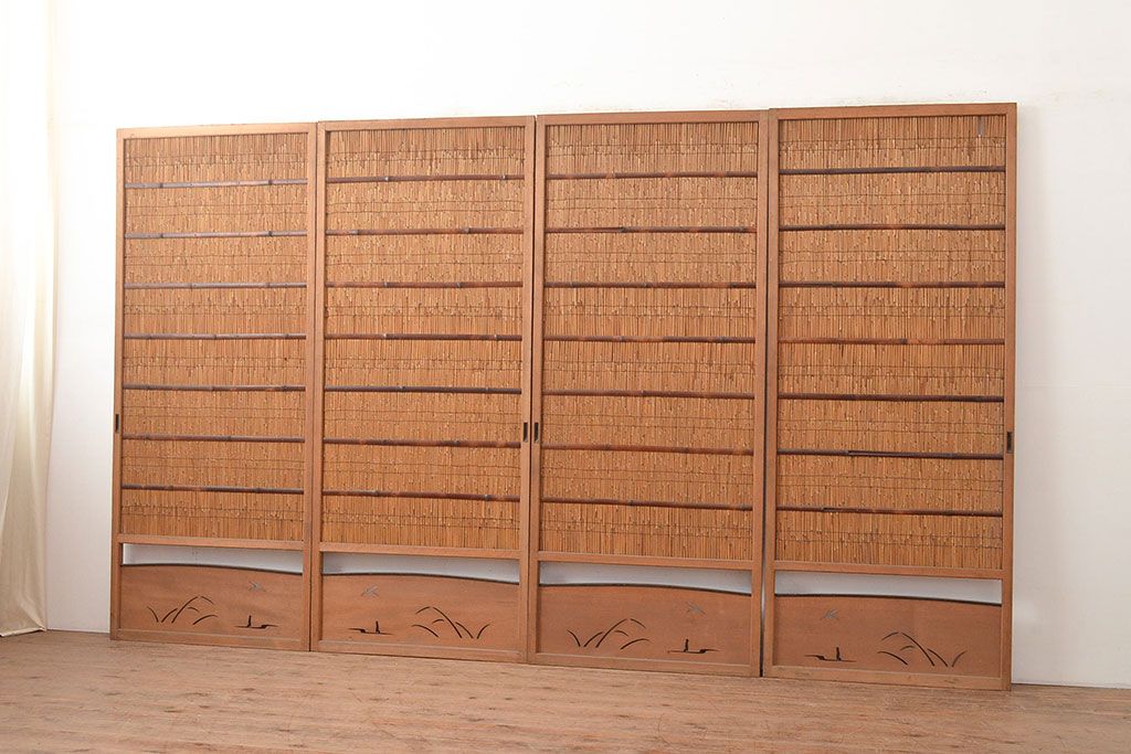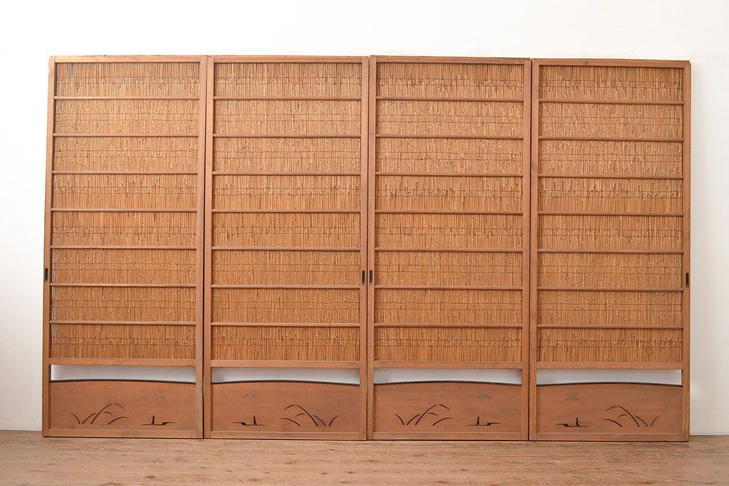 ドア・建具> 4枚〜セット > 和製アンティーク 夏の暑さを快適にしてくれる、品のある佇まいの簀戸4枚セット(簾戸、簀戸、葭戸、夏障子、すど、葦戸)(R-048229)