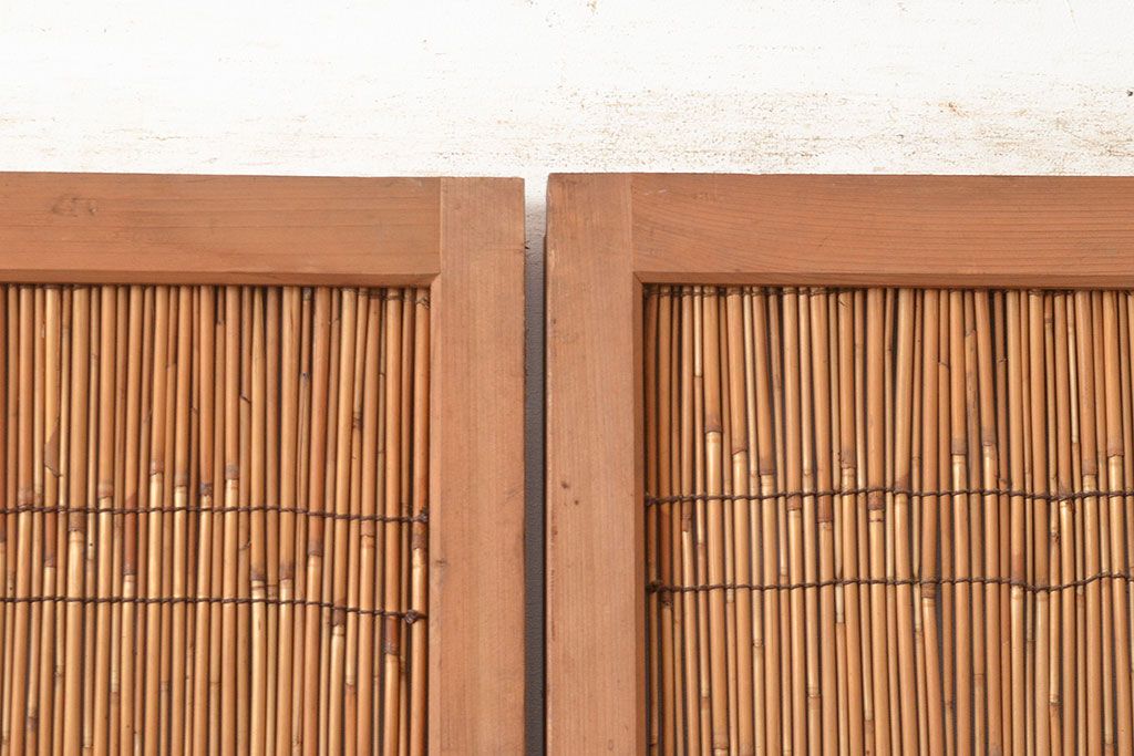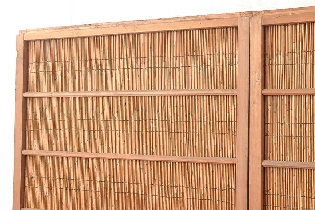 ドア・建具> 簾戸・夏戸・網戸 > 和製アンティーク 夏の暑さを快適にしてくれる、品のある佇まいの簀戸4枚セット(簾戸、簀戸、葭戸、夏障子、すど、葦戸)(R-048229)
