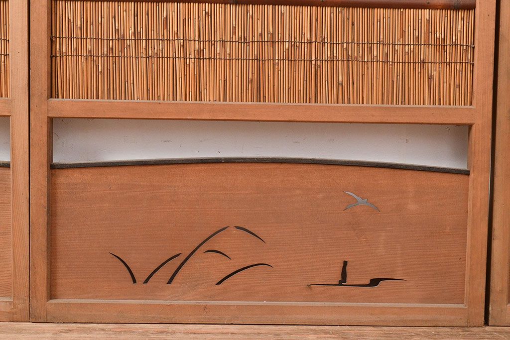 ドア・建具> 引き戸 > 和製アンティーク 夏の暑さを快適にしてくれる、品のある佇まいの簀戸4枚セット(簾戸、簀戸、葭戸、夏障子、すど、葦戸)(R-048229)