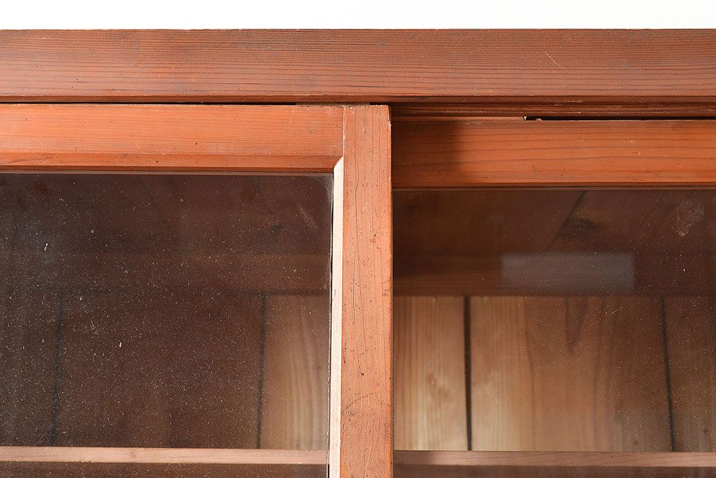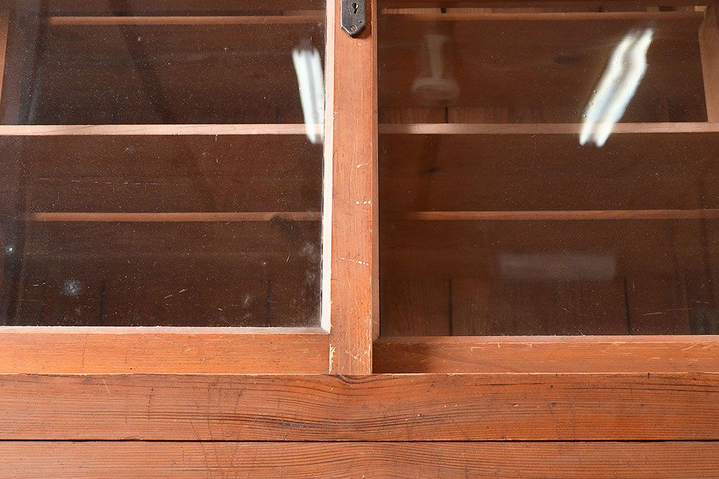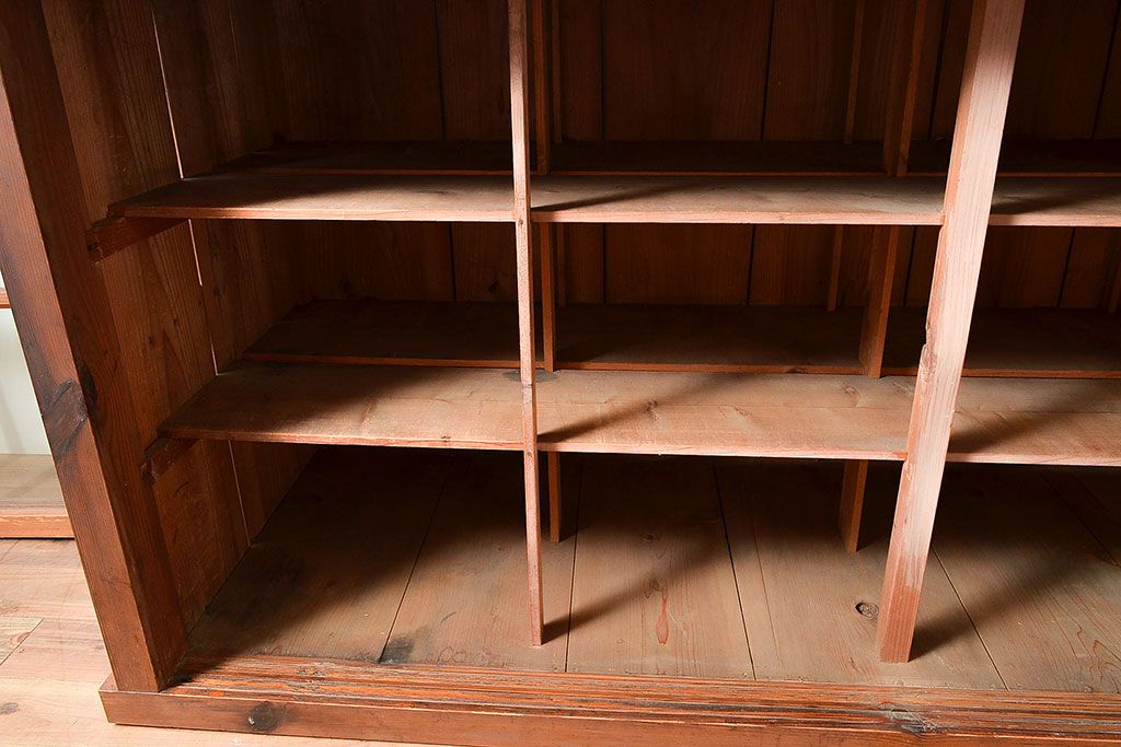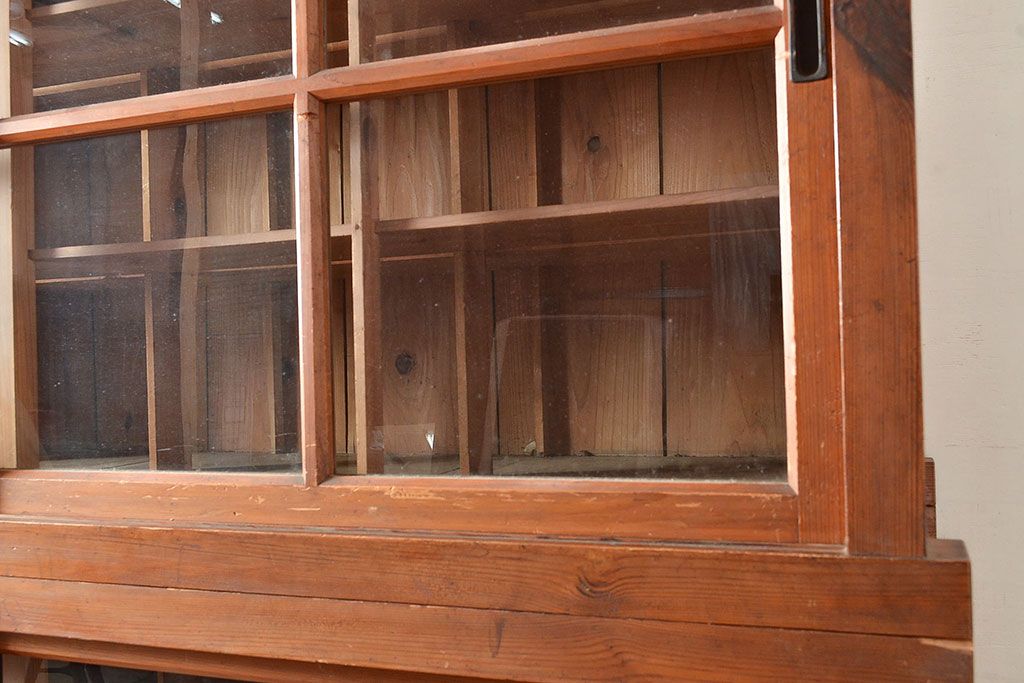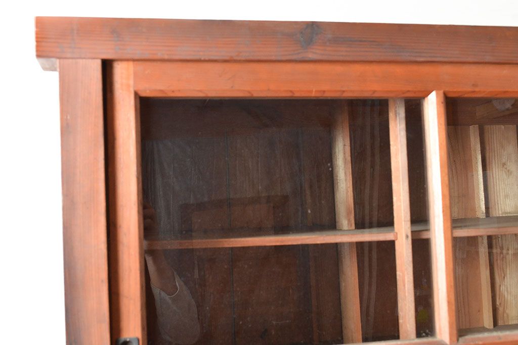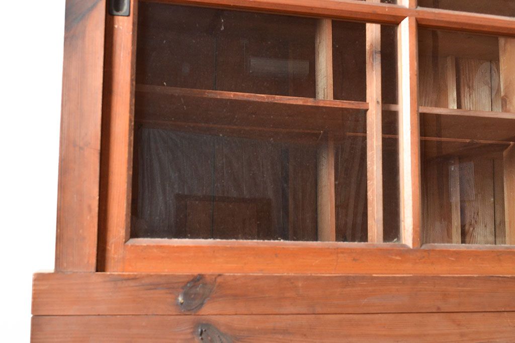 キャビネット・戸棚 > 和製アンティーク 前面松材 収納がたっぷりできる、堂々とした佇まいの収納棚・上段(戸棚、キャビネット、リビングボード)(R-047590)