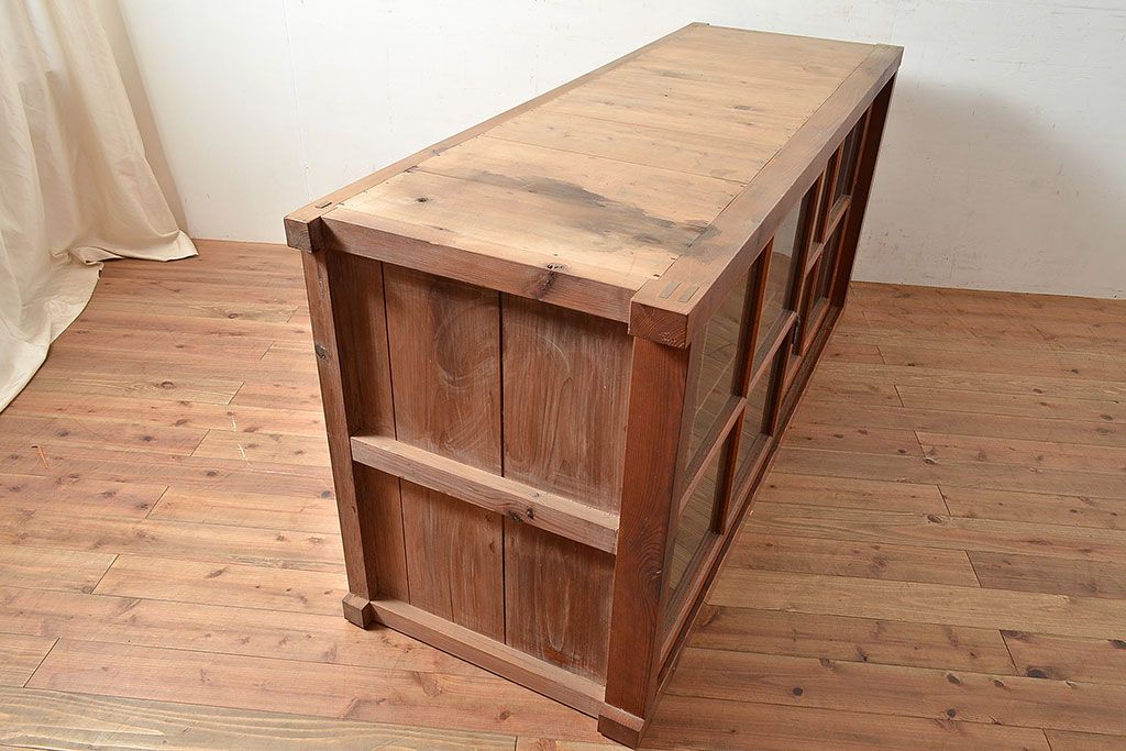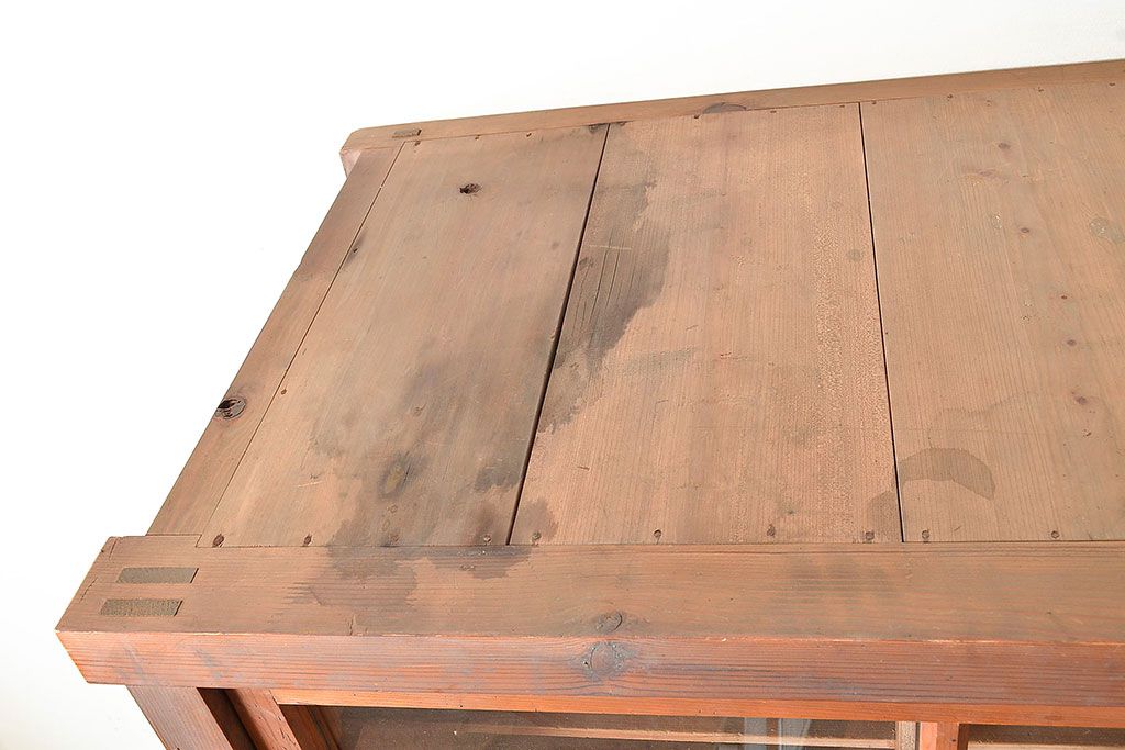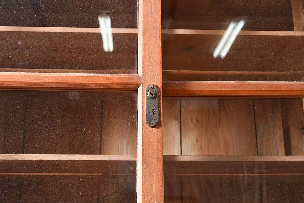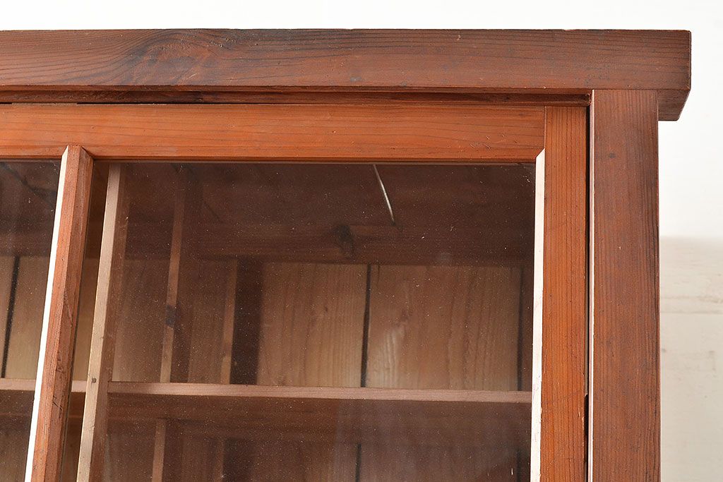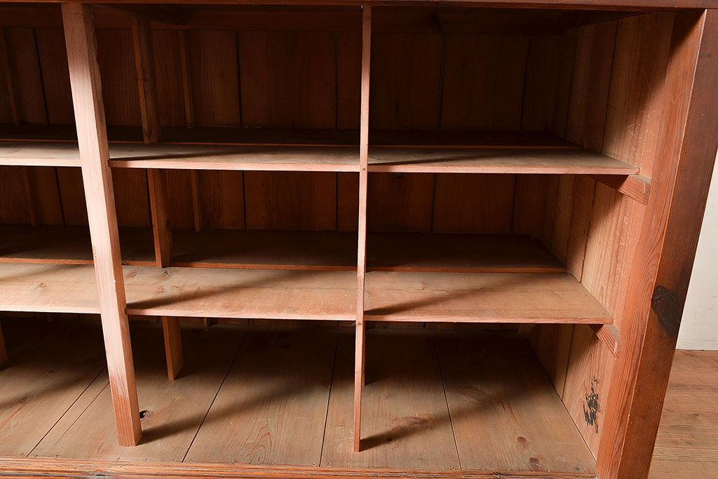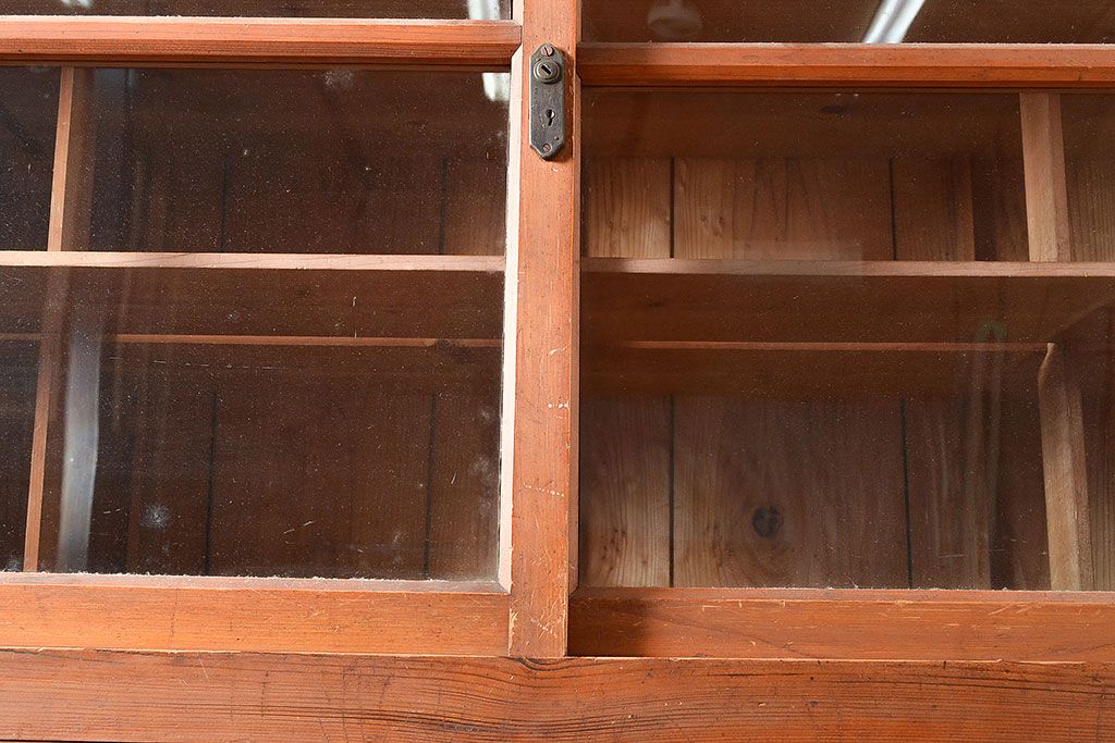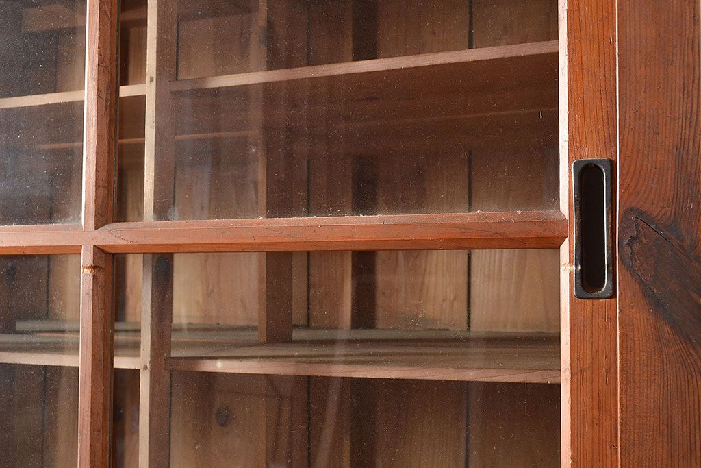 キャビネット・戸棚 > 和製アンティーク 前面松材 収納がたっぷりできる、堂々とした佇まいの収納棚・上段(戸棚、キャビネット、リビングボード)(R-047590)