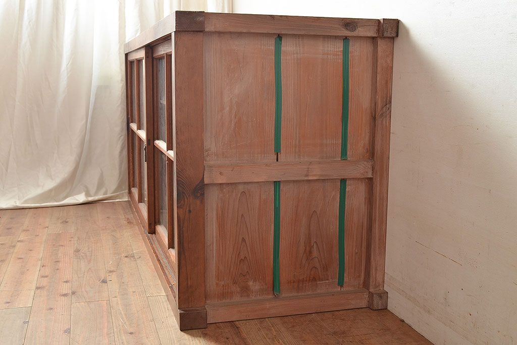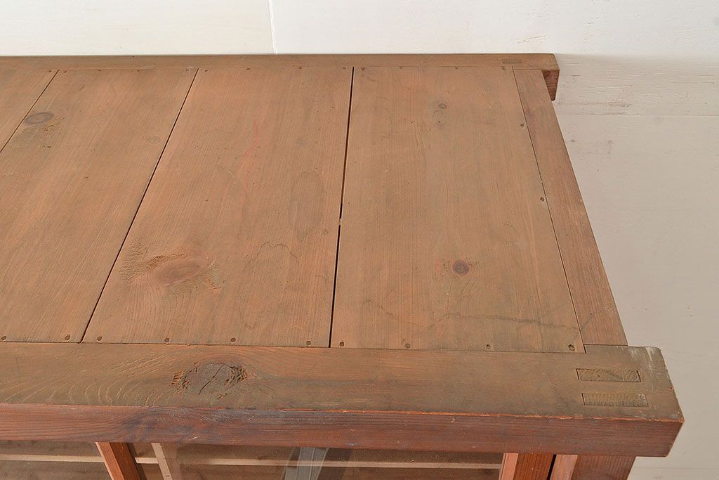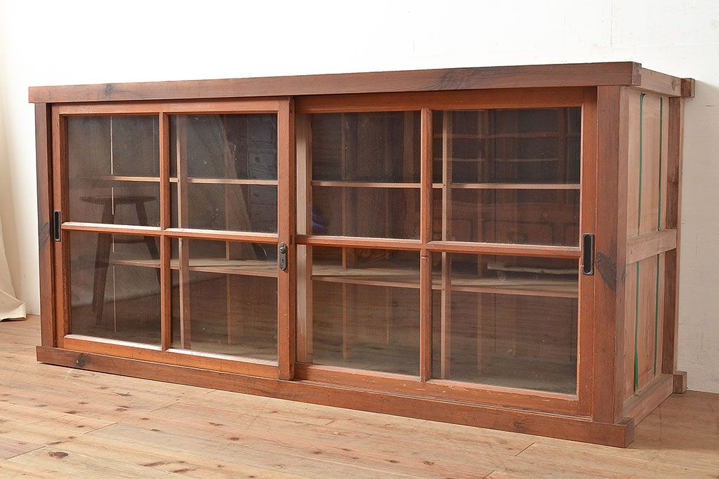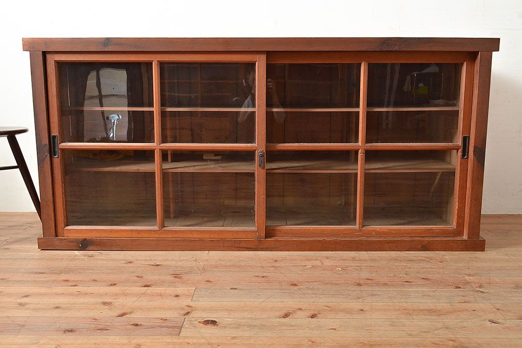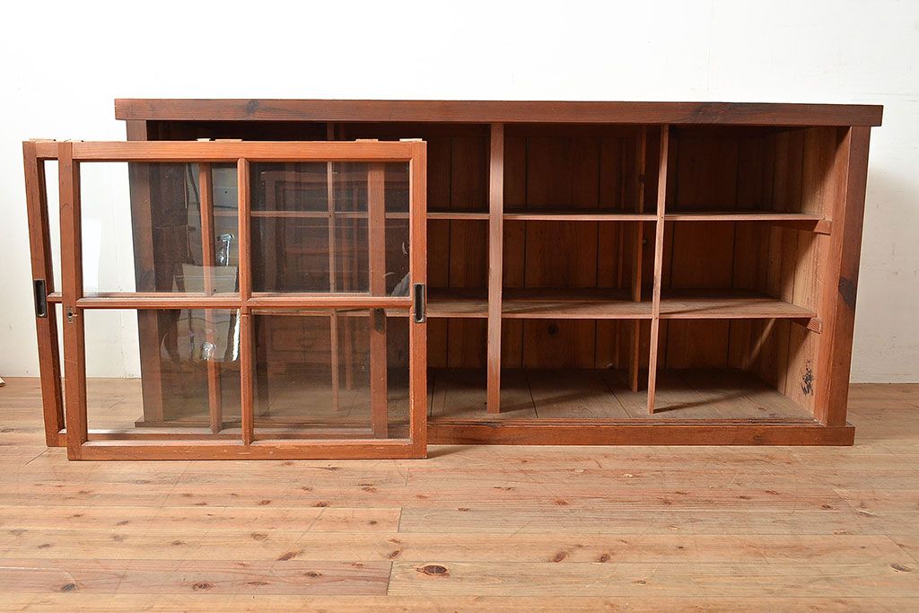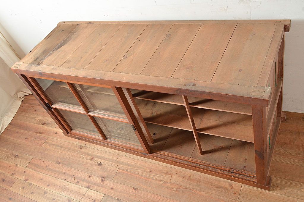 キャビネット・戸棚 > 和製アンティーク 前面松材 収納がたっぷりできる、堂々とした佇まいの収納棚・上段(戸棚、キャビネット、リビングボード)(R-047590)