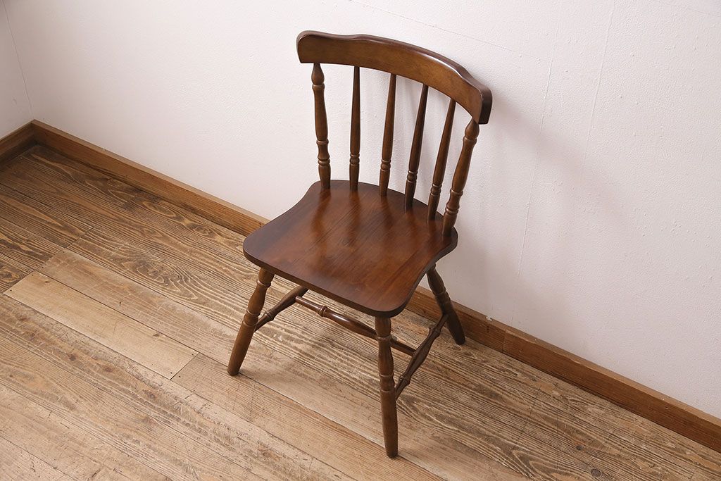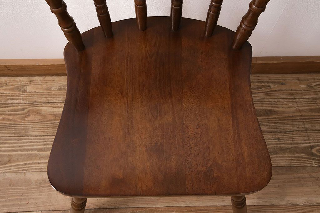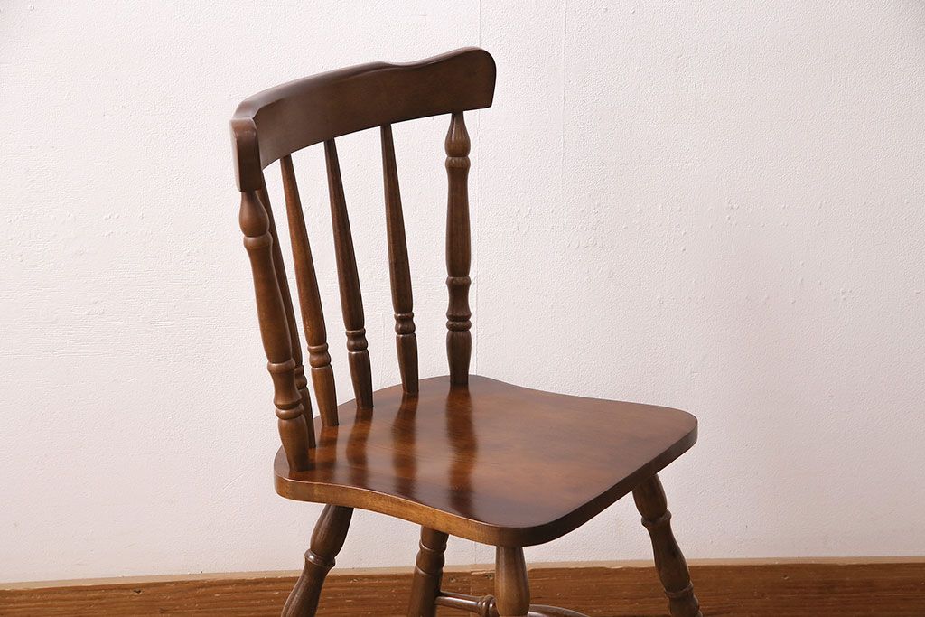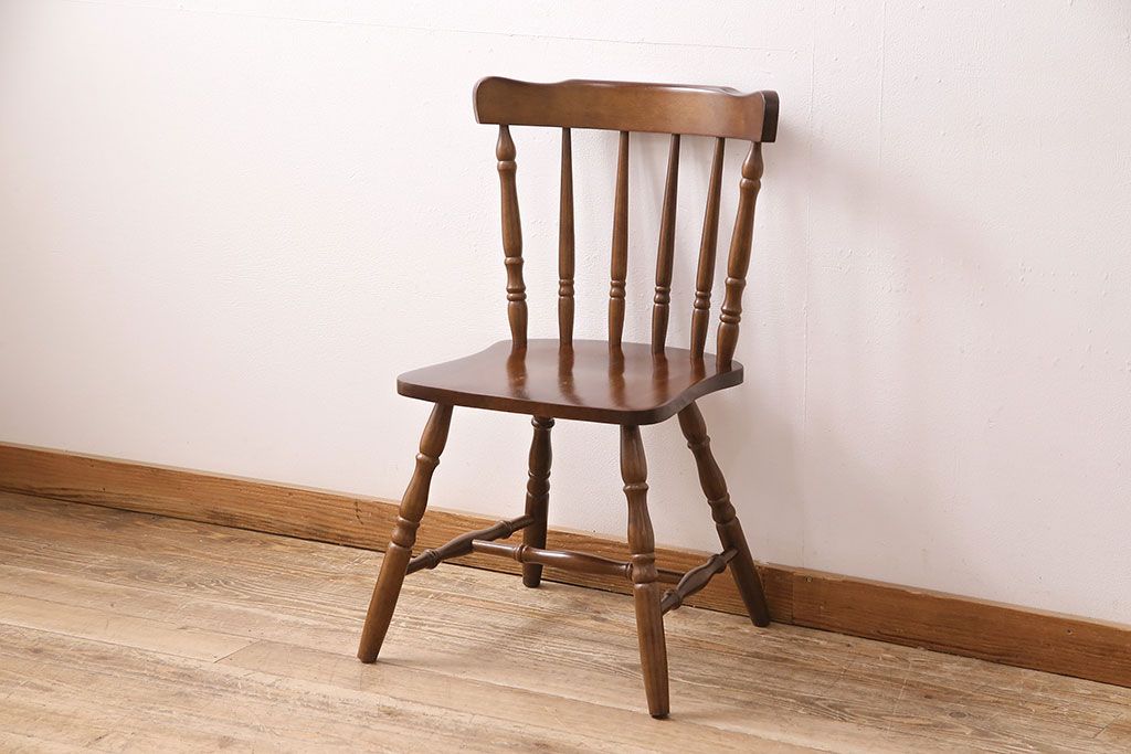 和製ヴィンテージ スポークバックや挽き物の意匠が上品な印象を高めるダイニングチェア(イス、椅子)(R-048652)です。