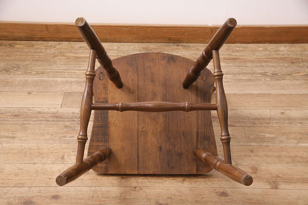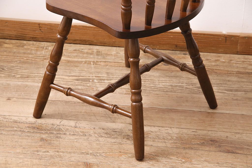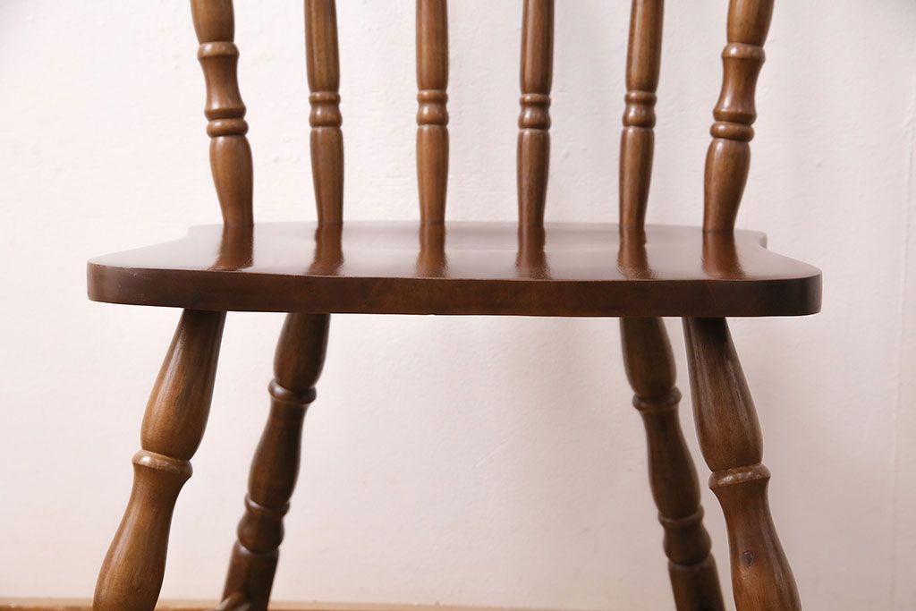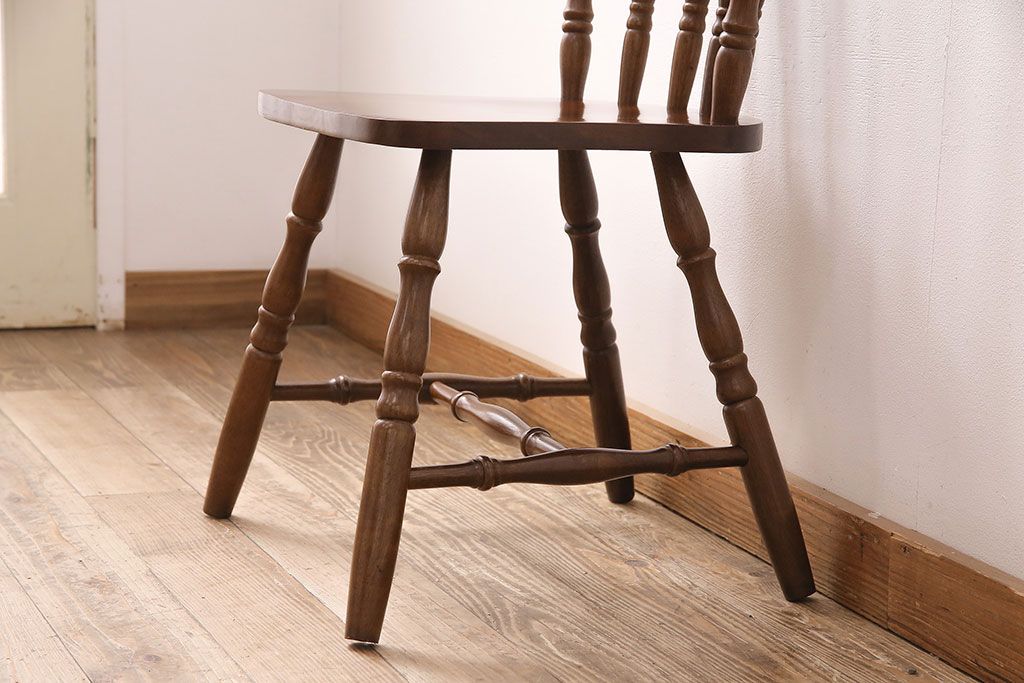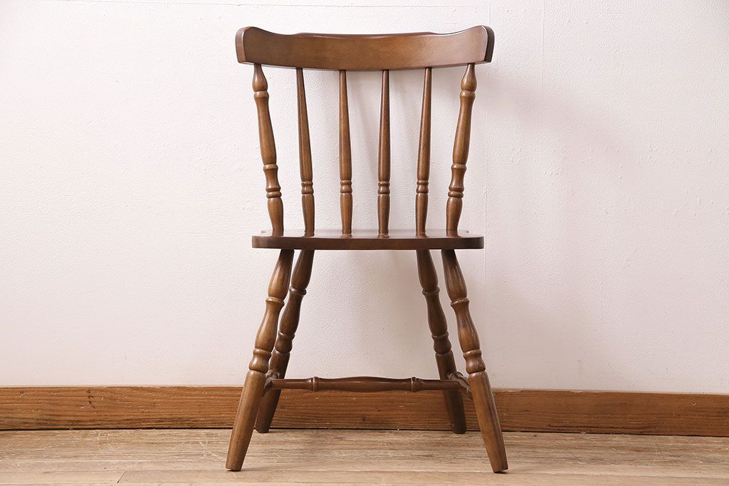 和製ヴィンテージ スポークバックや挽き物の意匠が上品な印象を高めるダイニングチェア(イス、椅子、ビンテージ)(R-048652)