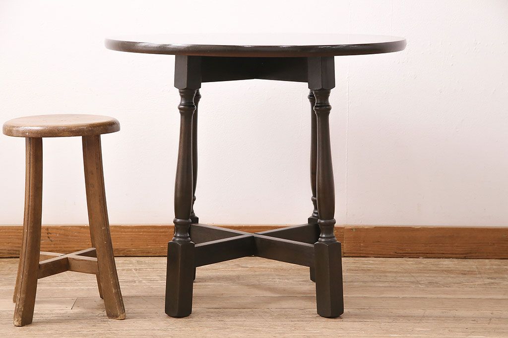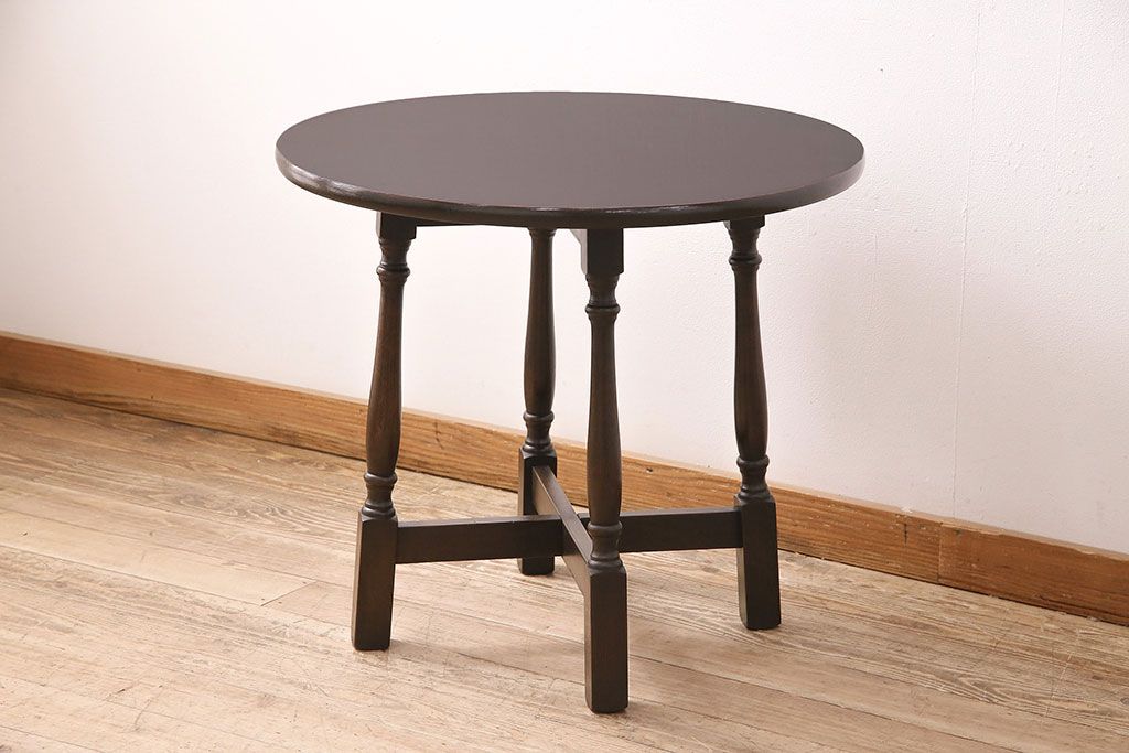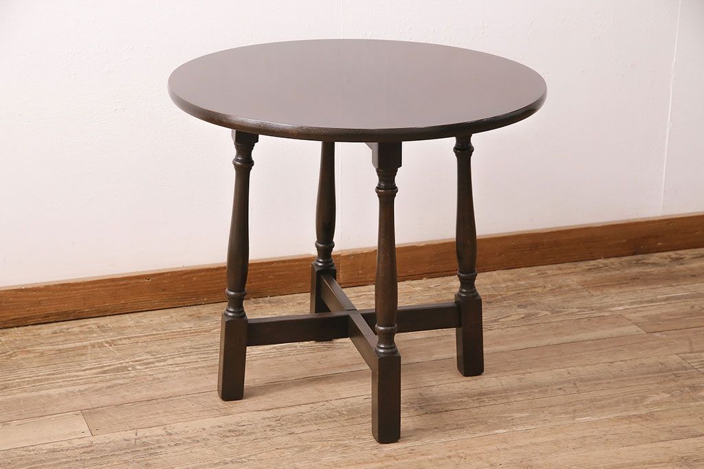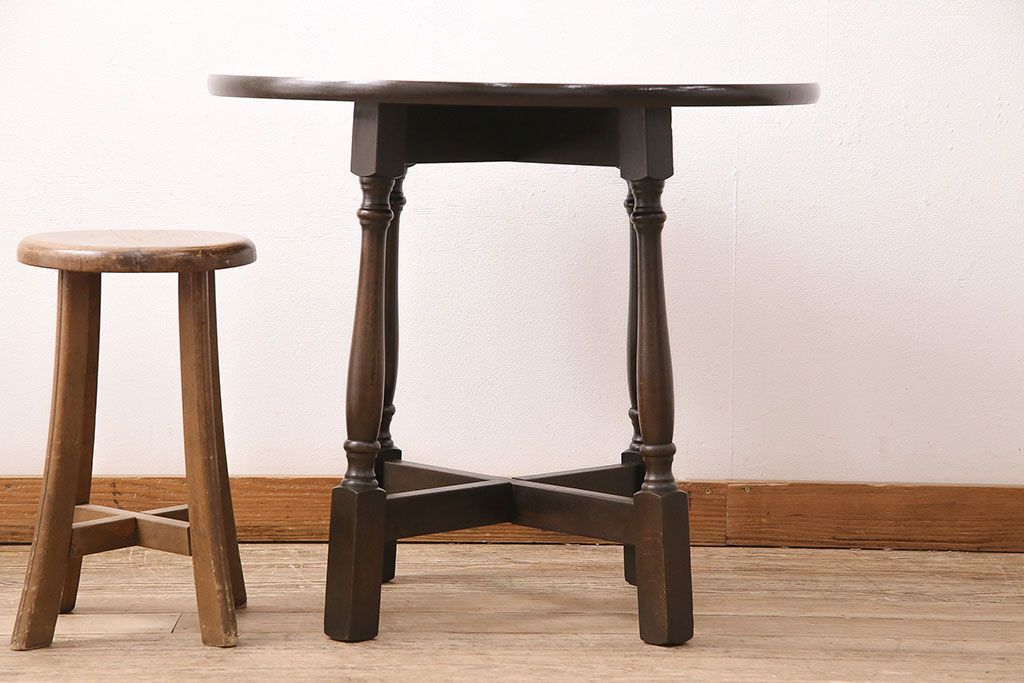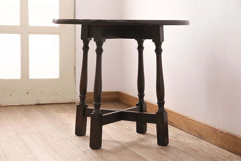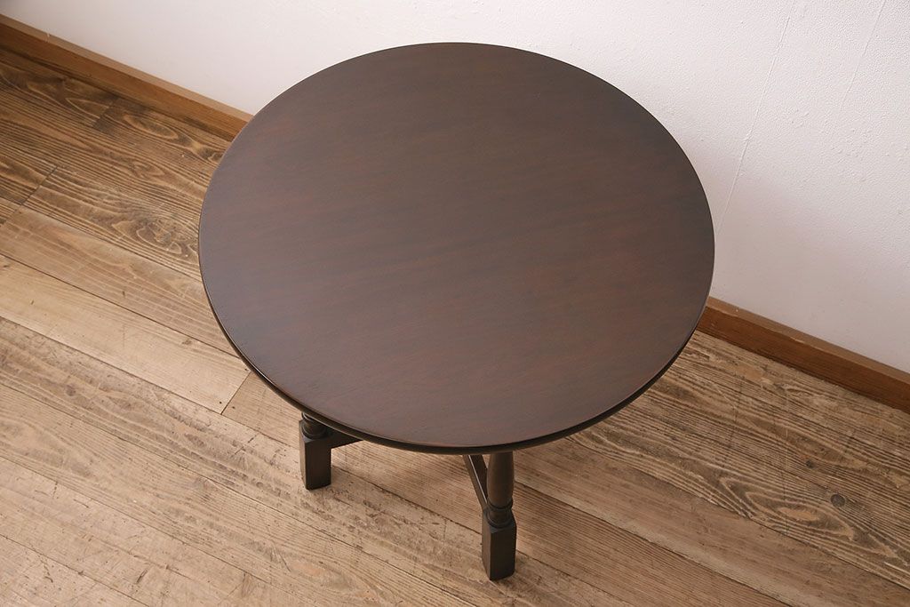 テーブル> カフェテーブル・コーヒーテーブル > イギリスヴィンテージ シックな佇まいが魅力的なバーチ材製の丸テーブル(カフェテーブル、サイドテーブル、ラウンドテーブル、ビンテージ)(R-048701)