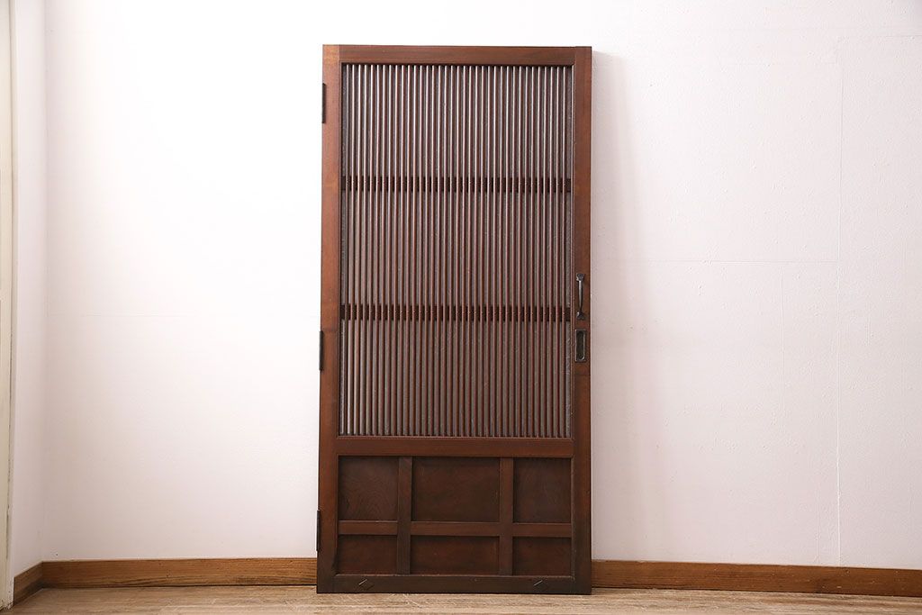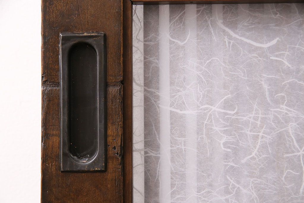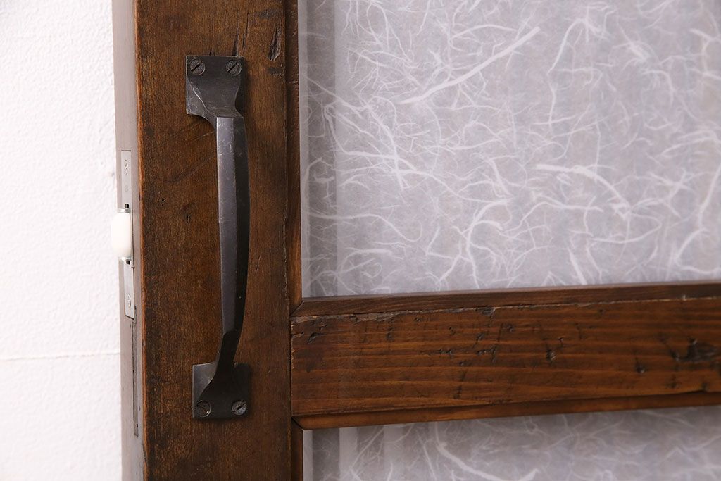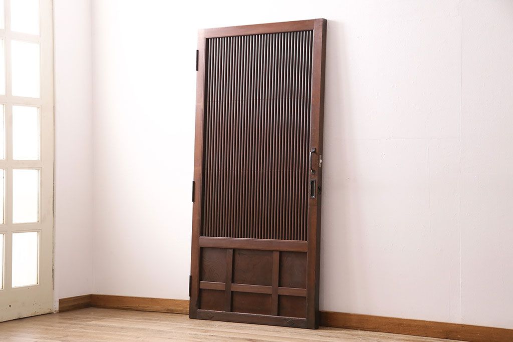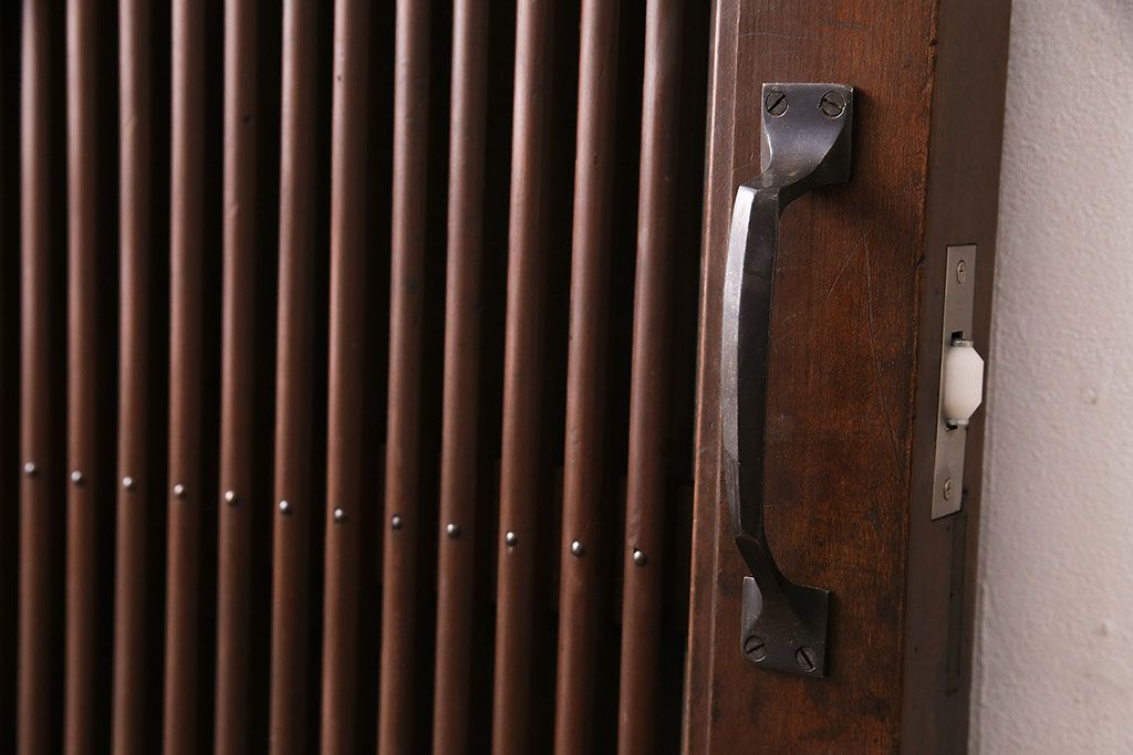 ドア・建具> 蔵戸 > 明治大正期の蔵戸をリペア&カスタム!取っ手、蝶番を取り付けドアにリメイク。設置場所に合わせてリサイズ。格子裏にアクリルワーロンを組み入れ。(玄関戸、玄関ドア、建具)