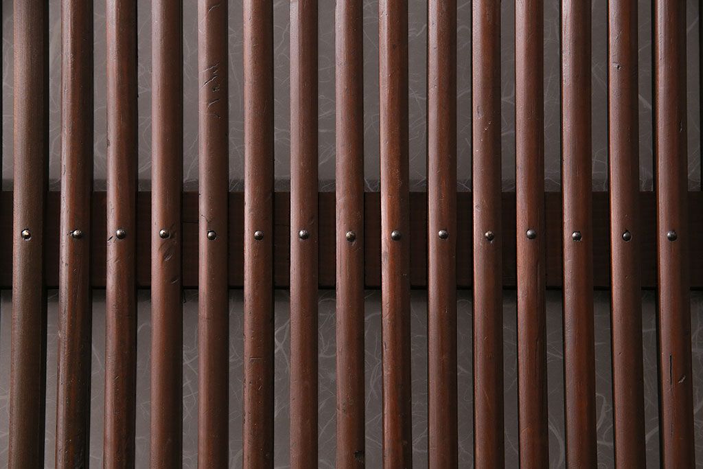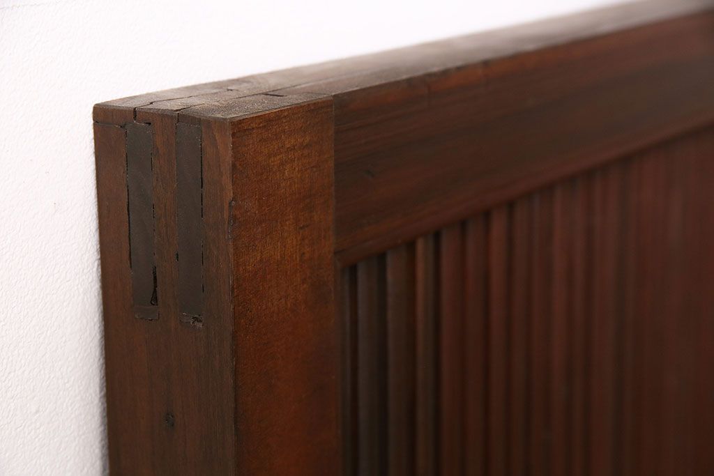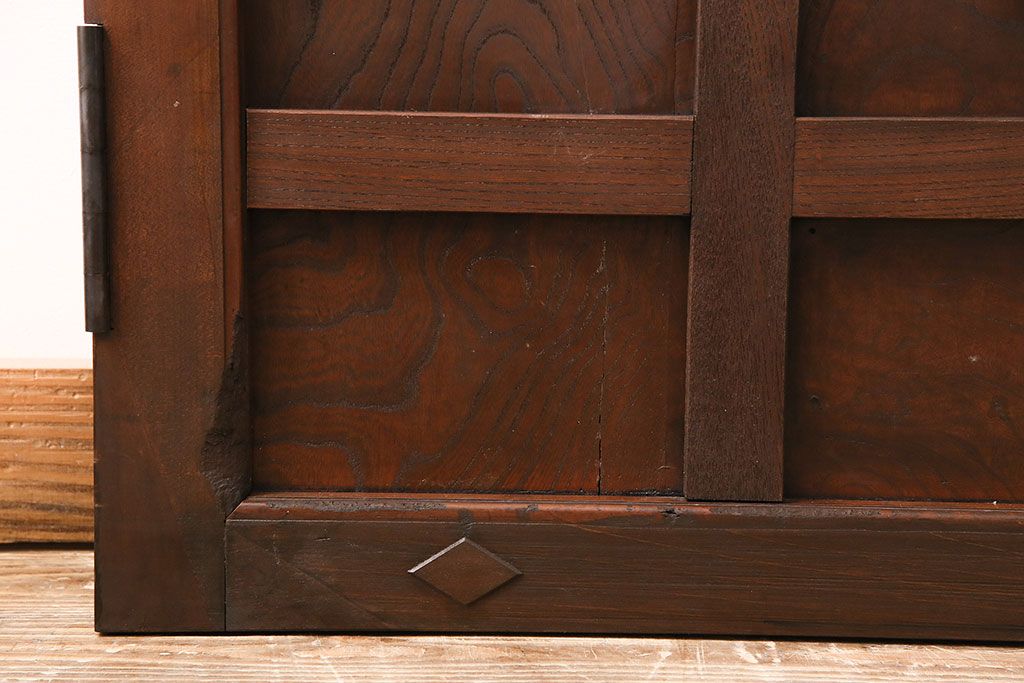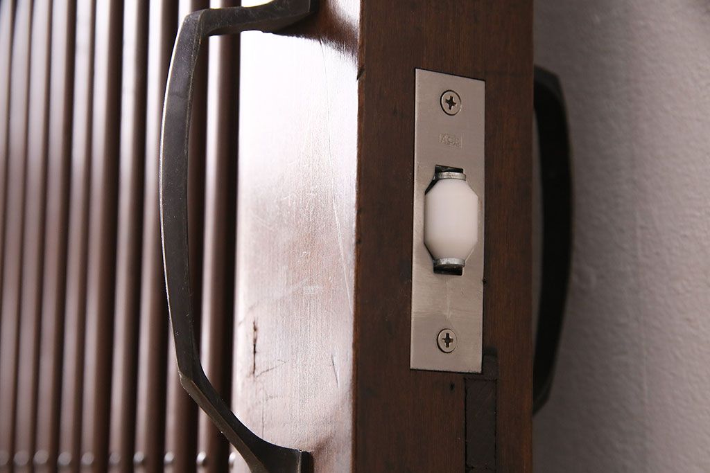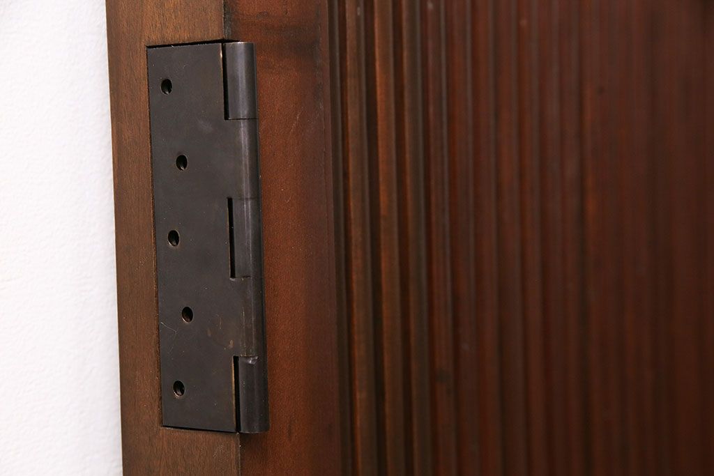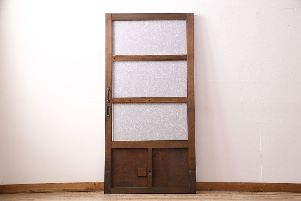 ドア・建具> 蔵戸 > 明治大正期の蔵戸をリペア&カスタム!取っ手、蝶番を取り付けドアにリメイク。設置場所に合わせてリサイズ。格子裏にアクリルワーロンを組み入れ。(玄関戸、玄関ドア、建具)