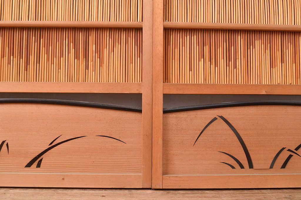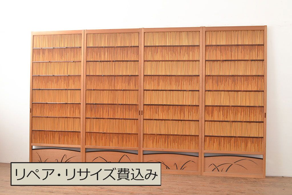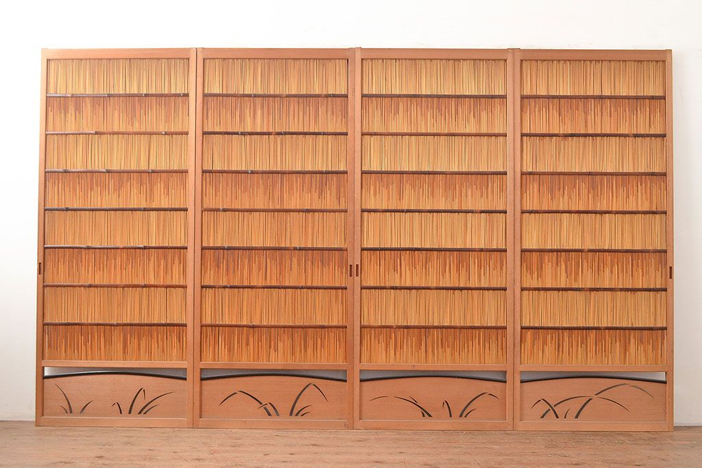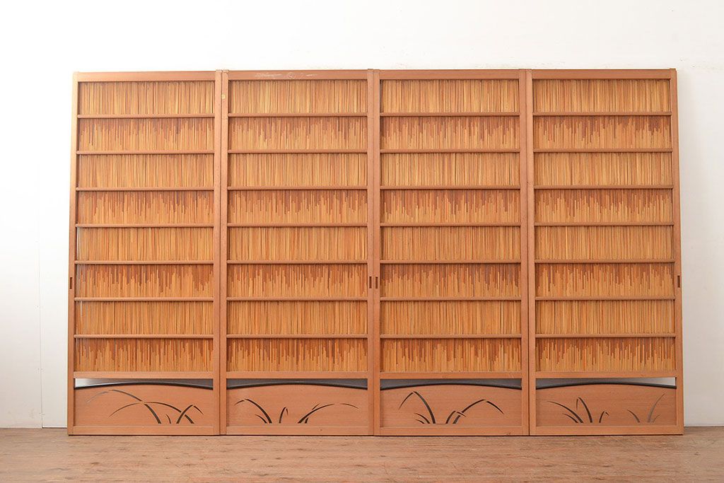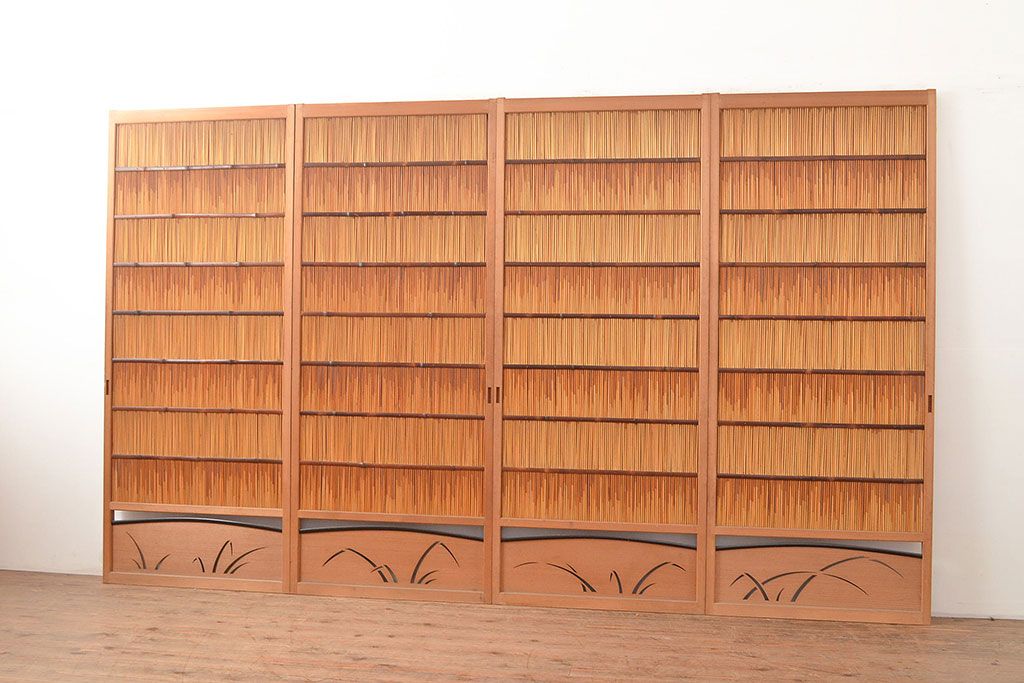 ラフジュ工房> ドア・建具> 引き戸 > 和製アンティーク 透かし彫りが風情を高める御簾戸4枚セット(簾戸、簀戸、葭戸、夏障子、すど、葦戸)(R-048230)