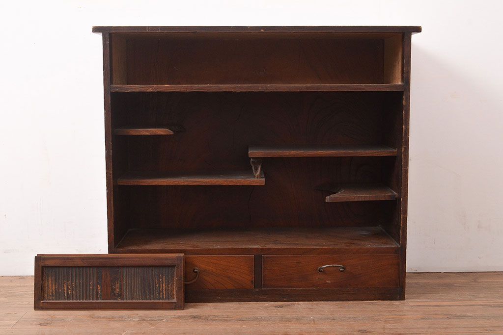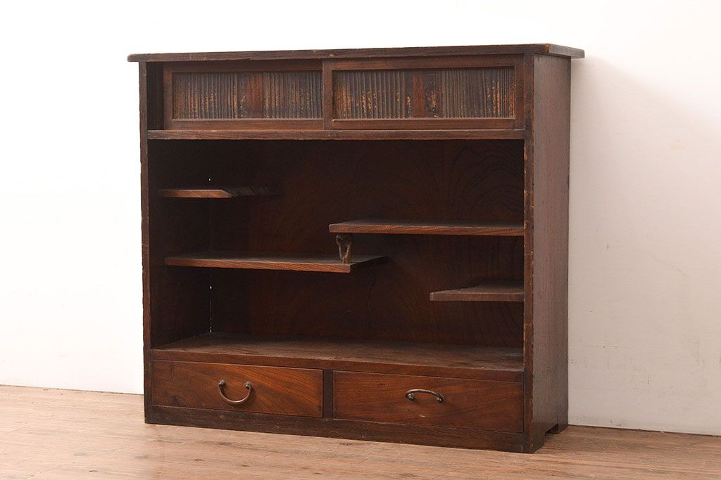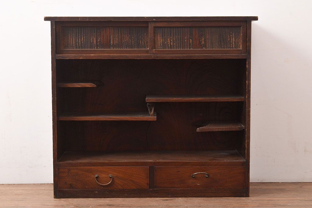 和製アンティーク 年月を重ねた渋い風合いが味のある茶箪笥(茶棚)(R-047562)