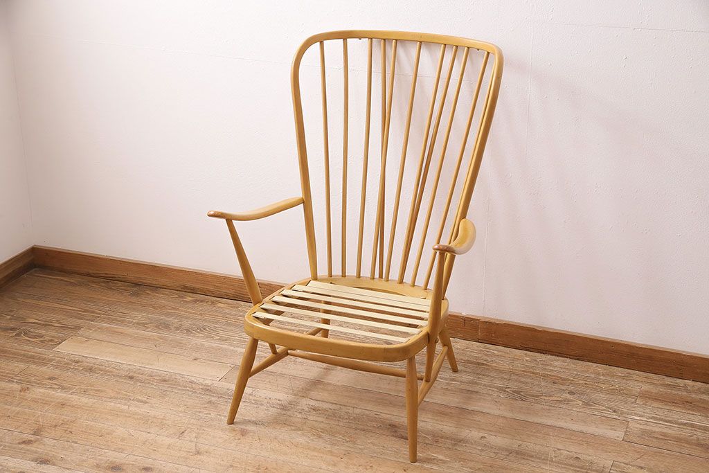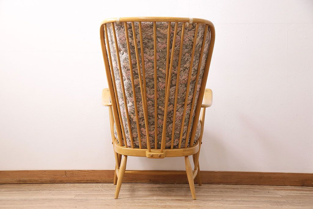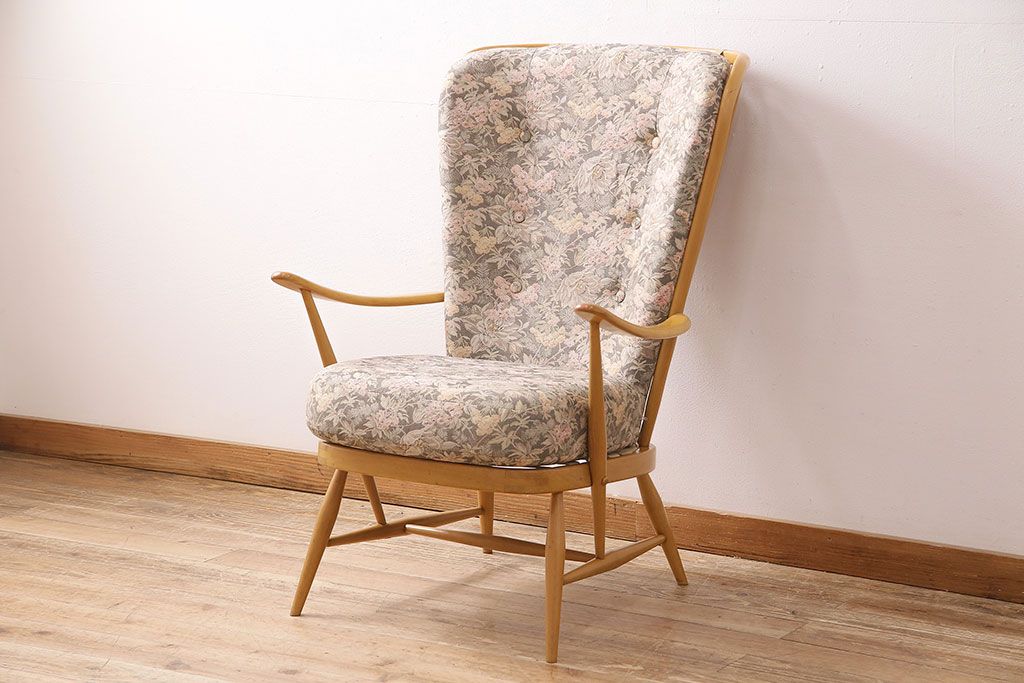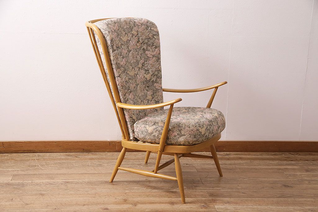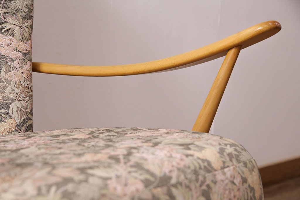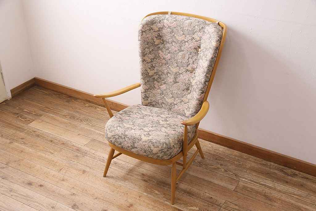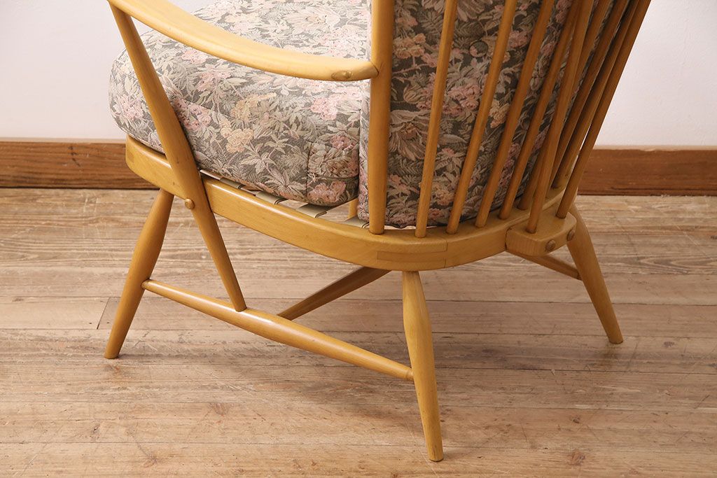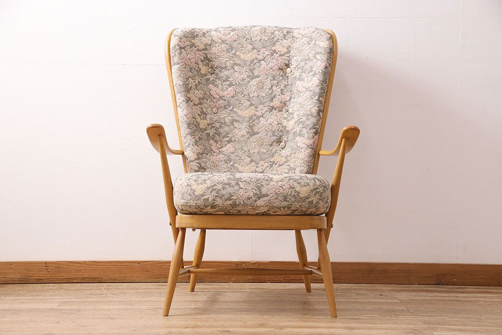 ヴィンテージ家具 ERCOL(アーコール) エバーグリーン エレガントな雰囲気漂う1人掛けイージーチェア(ラウンジチェア、アームチェア、椅子、ソファ、ビンテージ)(R-048539)