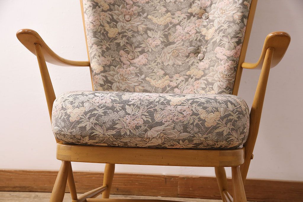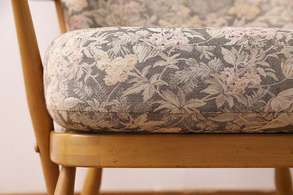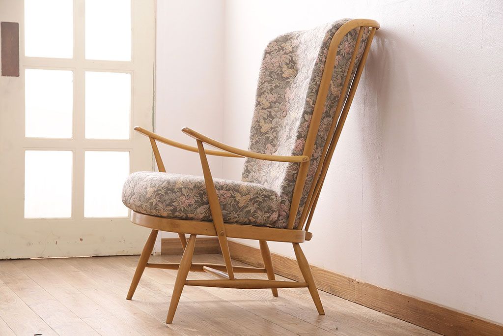椅子・ベンチ> アームチェア > ヴィンテージ家具 ERCOL(アーコール) エバーグリーン エレガントな雰囲気漂う1人掛けイージーチェア(ラウンジチェア、アームチェア、椅子、ソファ、ビンテージ)(R-048539)