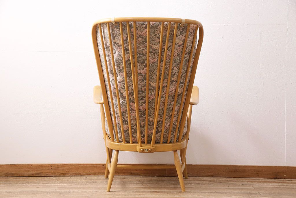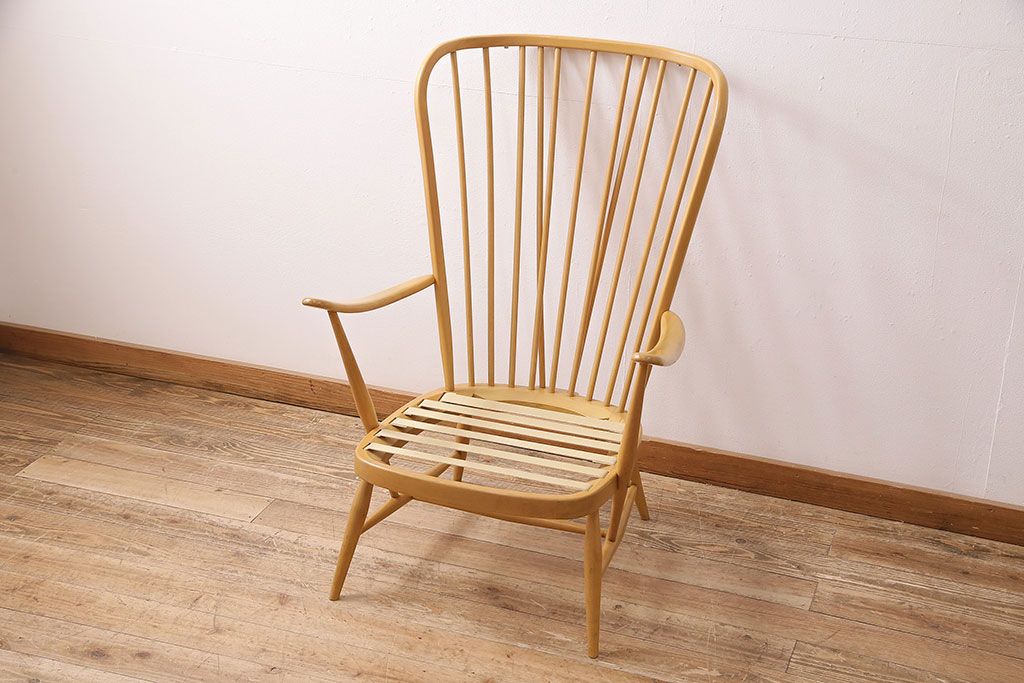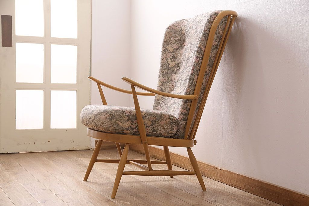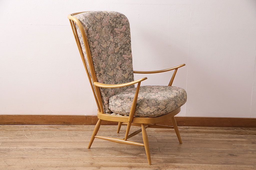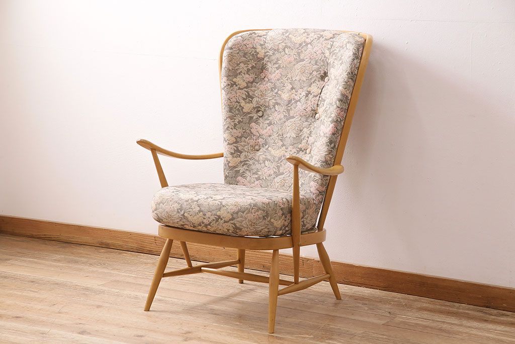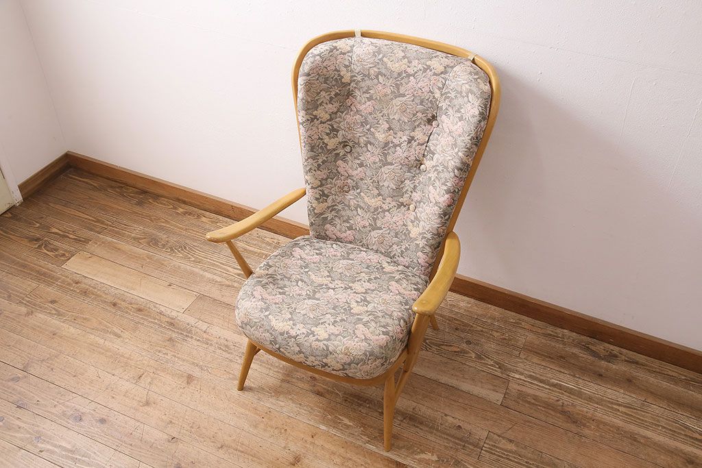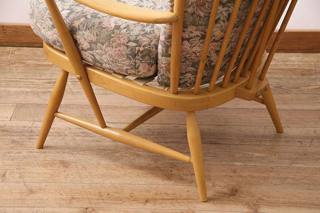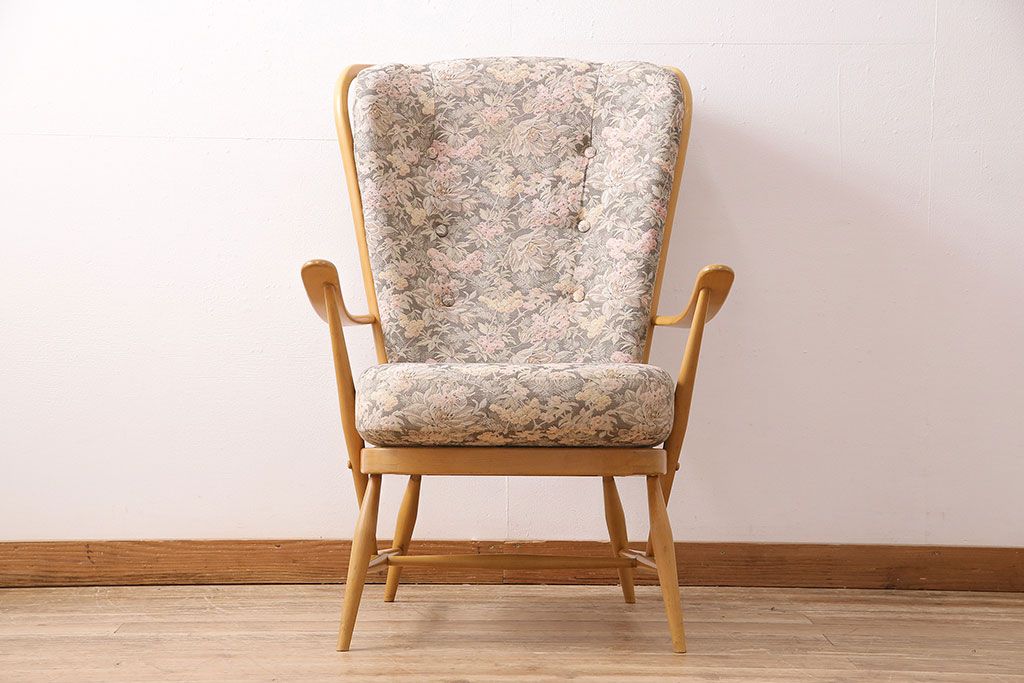 ヴィンテージ家具 ERCOL(アーコール) エバーグリーン エレガントな雰囲気漂う1人掛けイージーチェア(ラウンジチェア、アームチェア、椅子、ソファ、ビンテージ)(R-048538)