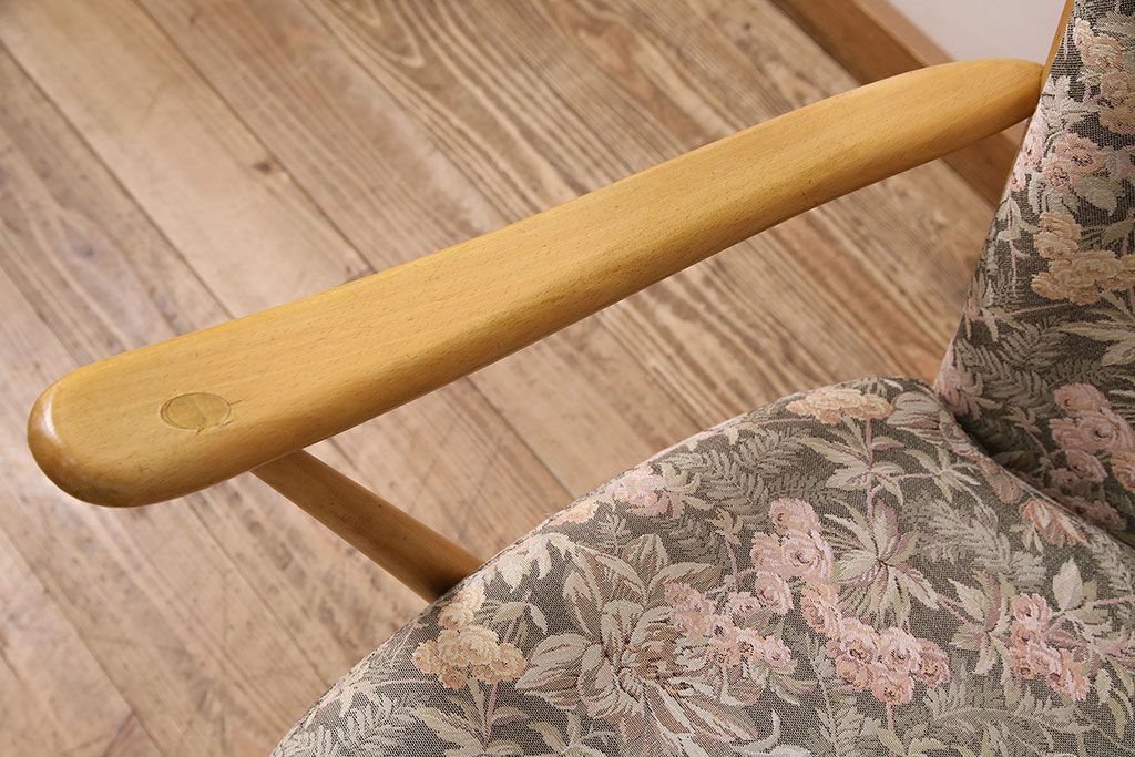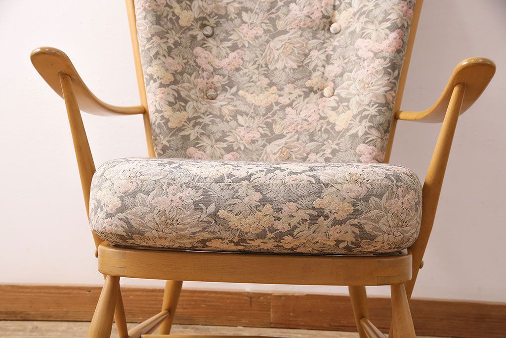 椅子・ベンチ> アームチェア > ヴィンテージ家具 ERCOL(アーコール) エバーグリーン エレガントな雰囲気漂う1人掛けイージーチェア(ラウンジチェア、アームチェア、椅子、ソファ、ビンテージ)(R-048538)