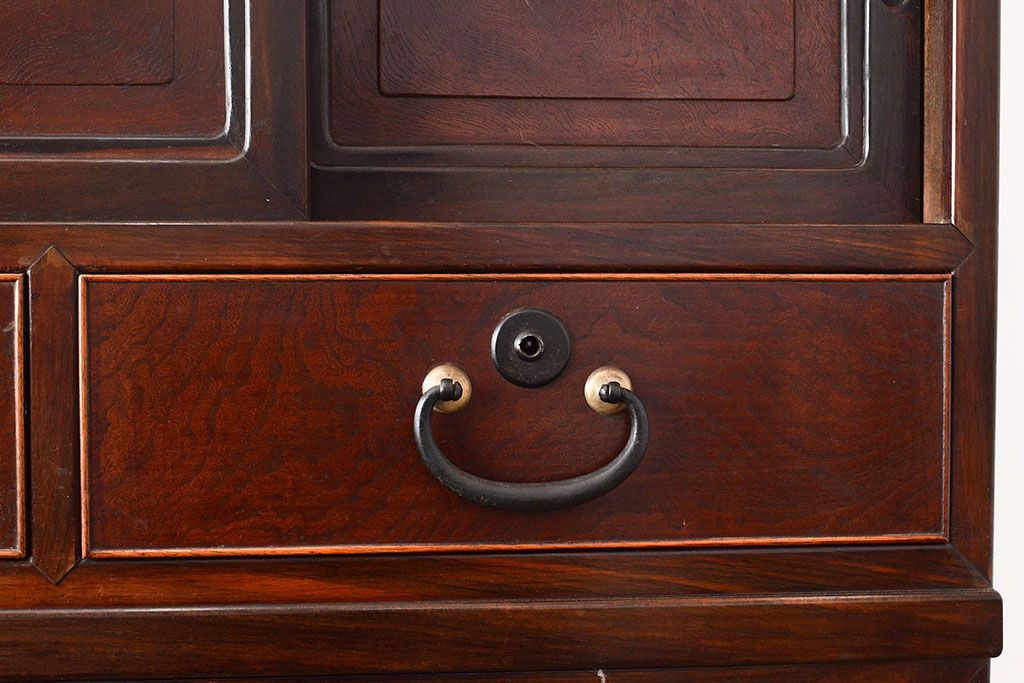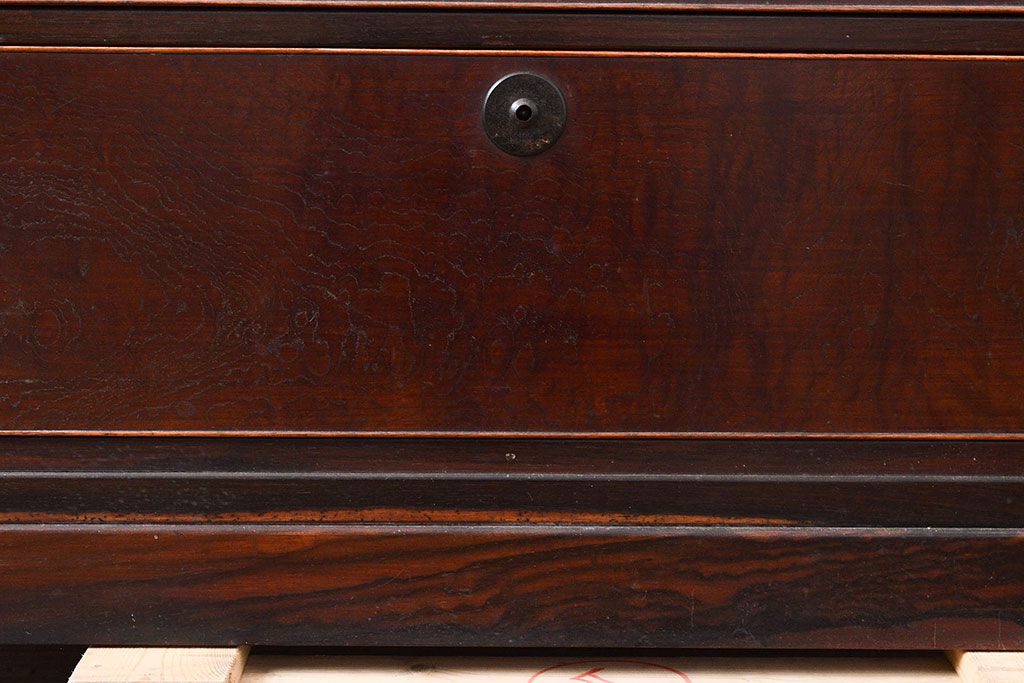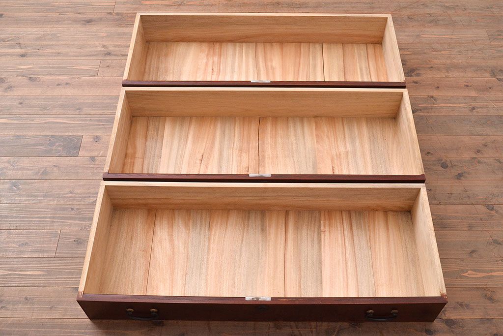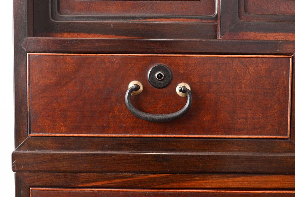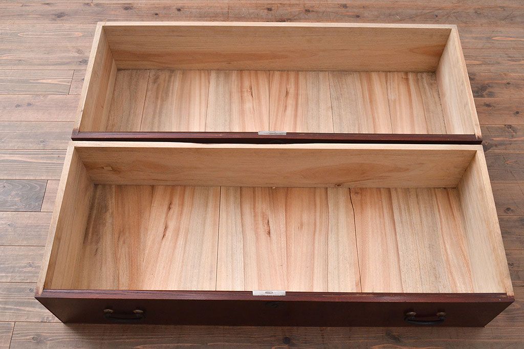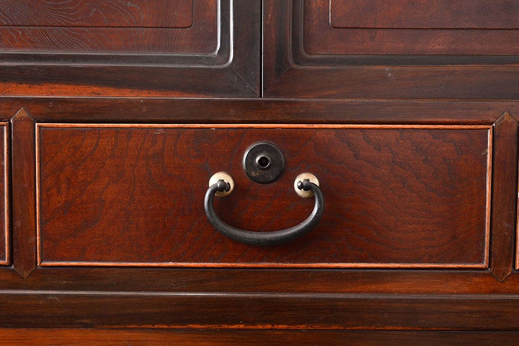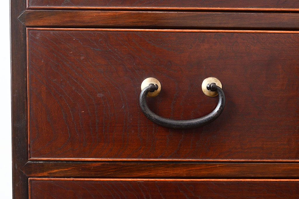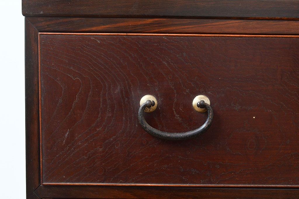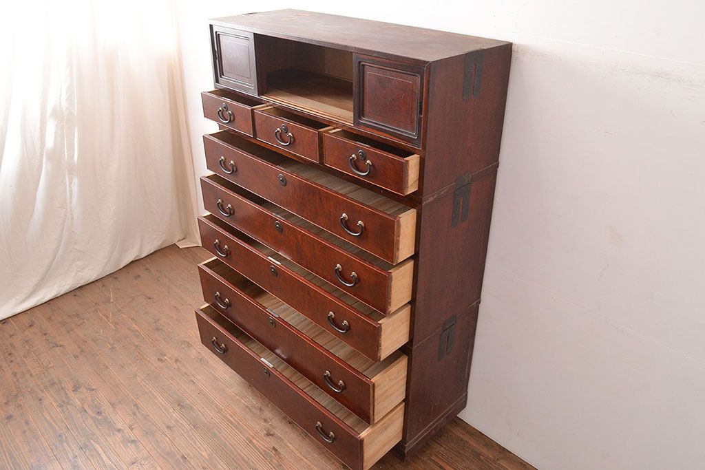 和箪笥> 衣装箪笥 > 【簡易リペア限定品】和製アンティーク 前面漆塗り(ケヤキ玉杢・黒柿) 中(楠木) 天板・側面(ケヤキ) 高級品!品のある佇まいが魅力的な指物家具の重ね箪笥(収納箪笥、整理箪笥、引き出し、チェスト)(R-047558)