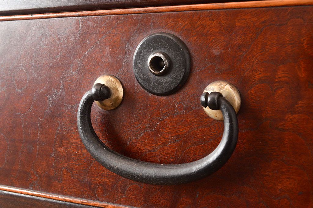 【簡易リペア限定品】和製アンティーク 前面漆塗り(ケヤキ玉杢・黒柿) 中(楠木) 天板・側面(ケヤキ) 高級品!品のある佇まいが魅力的な指物家具の重ね箪笥(収納箪笥、整理箪笥、引き出し、チェスト)(R-047558)