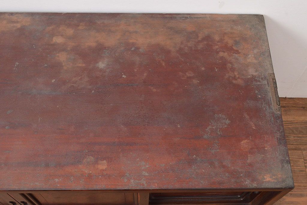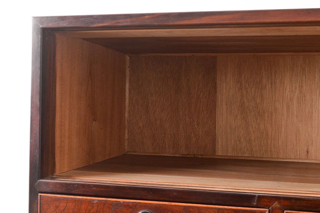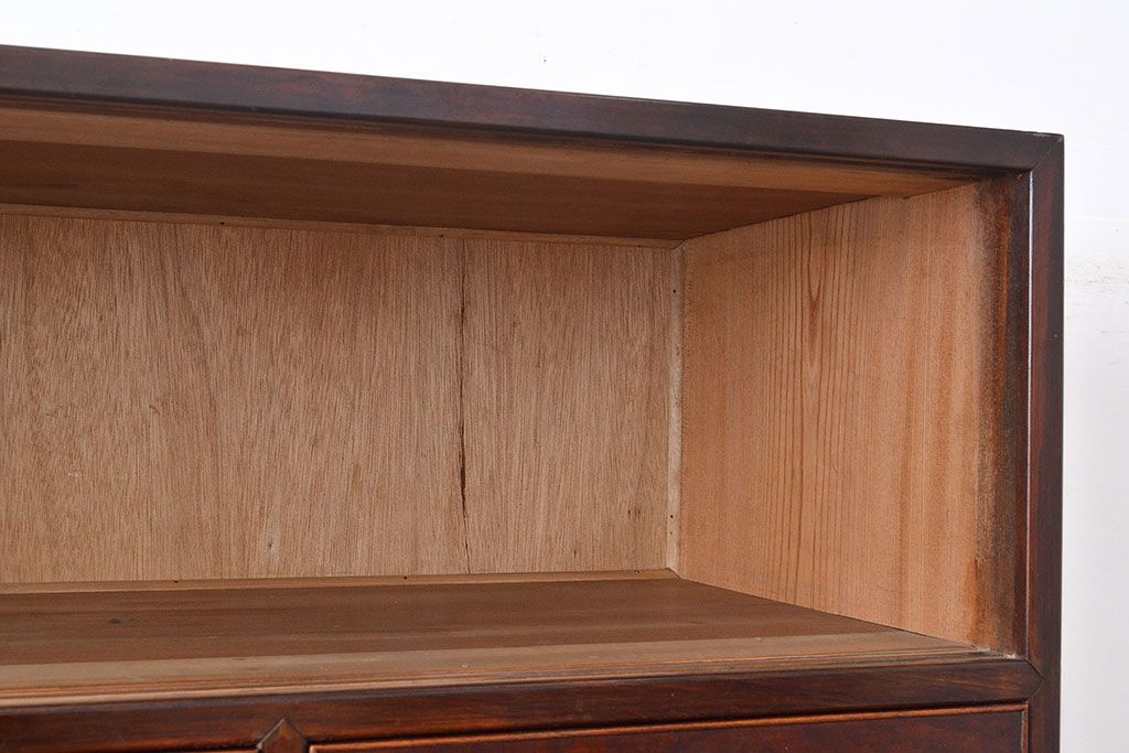 和箪笥 > 【簡易リペア限定品】和製アンティーク 前面漆塗り(ケヤキ玉杢・黒柿) 中(楠木) 天板・側面(ケヤキ) 高級品!品のある佇まいが魅力的な指物家具の箪笥ローボード(収納箪笥、時代箪笥、収納棚)(R-047559)