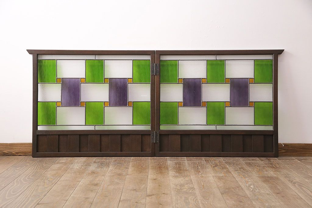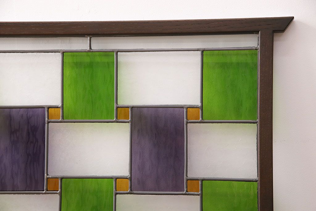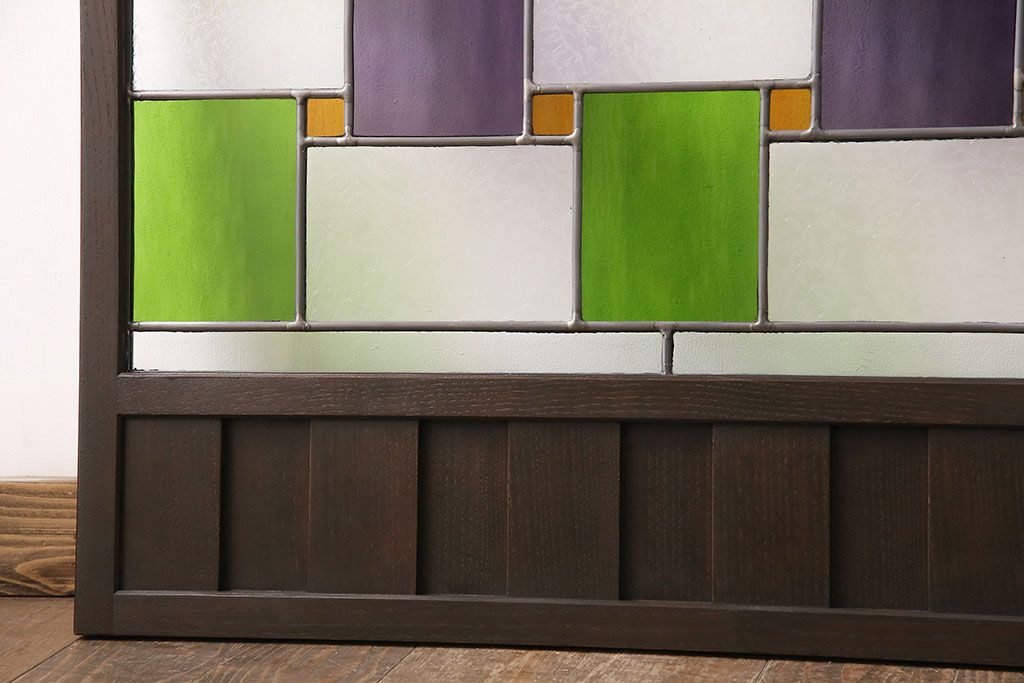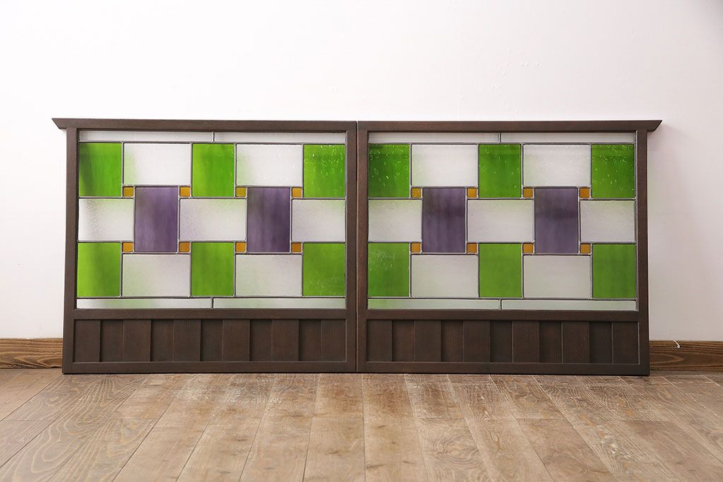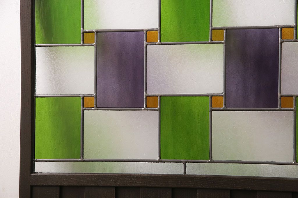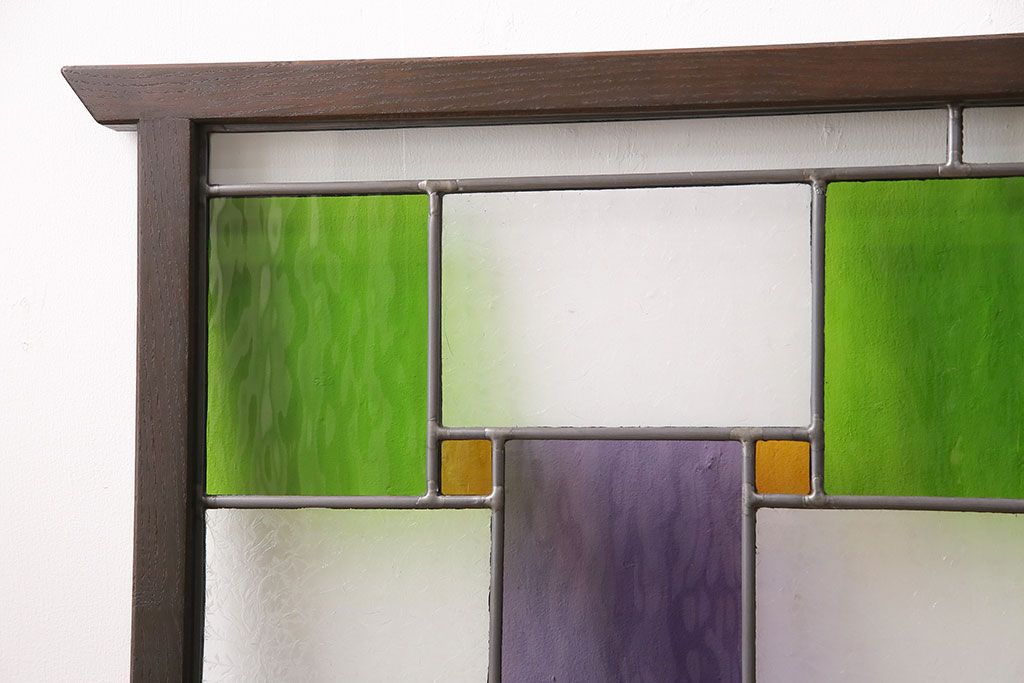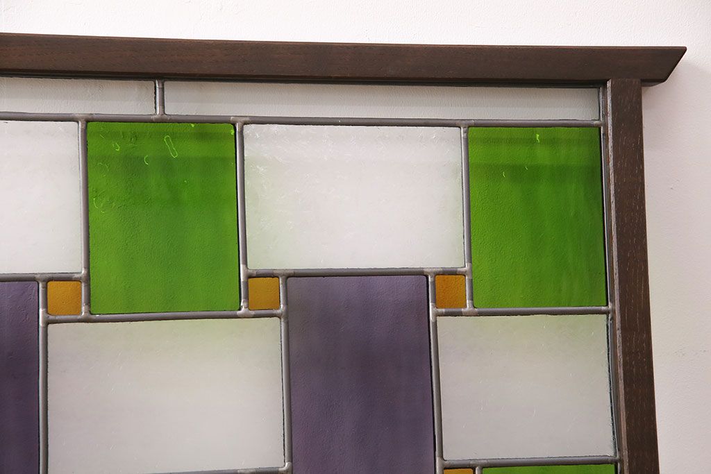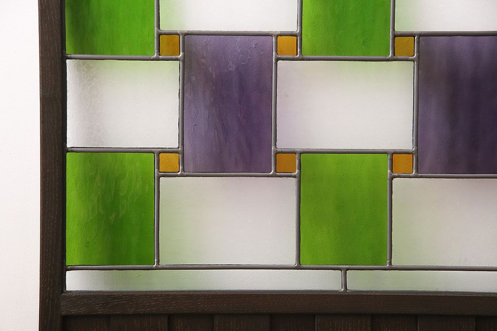 大正ロマンな衝立を新規製作!当店商品を参考にデザイン。結霜ガラス、黄色・緑・紫の色ガラスを組み入れ。(つい立て、パーテーション)