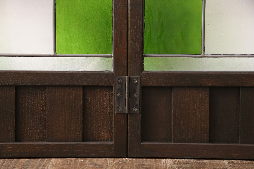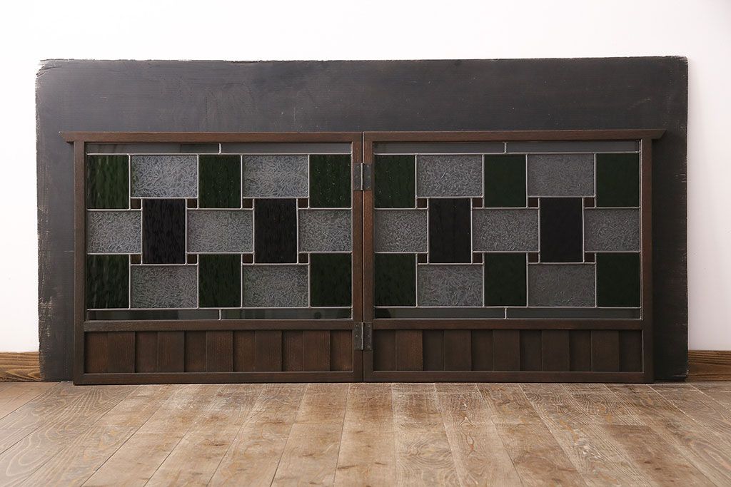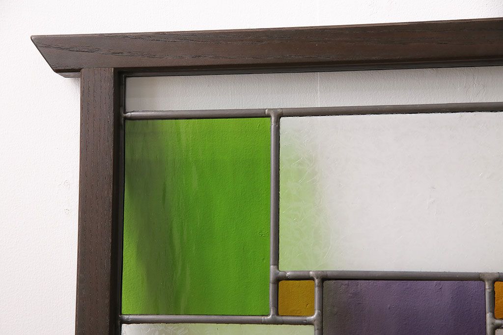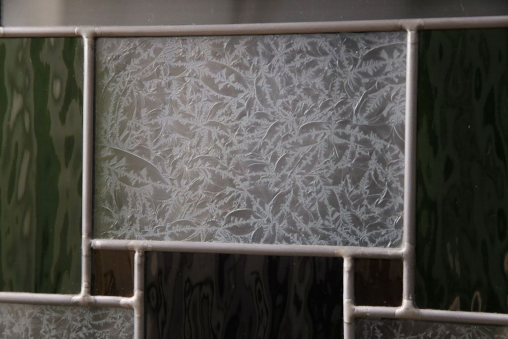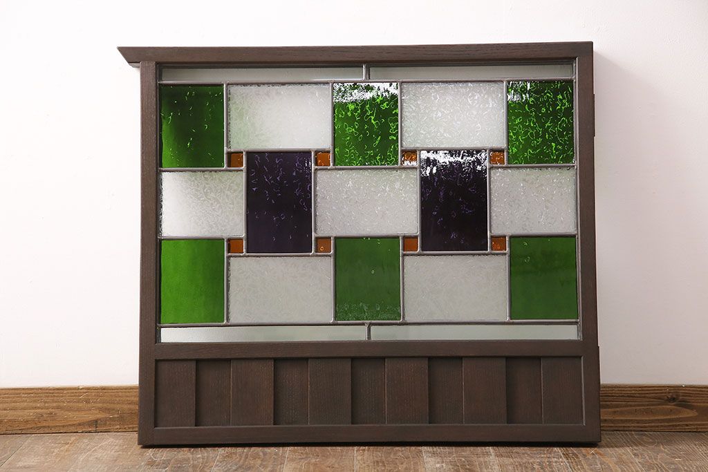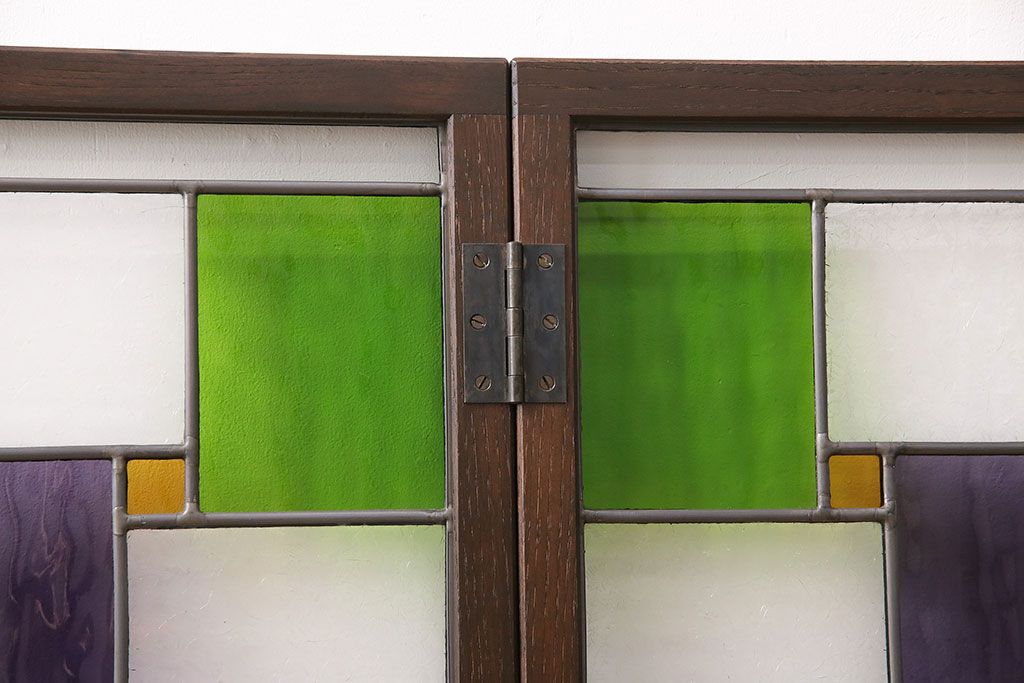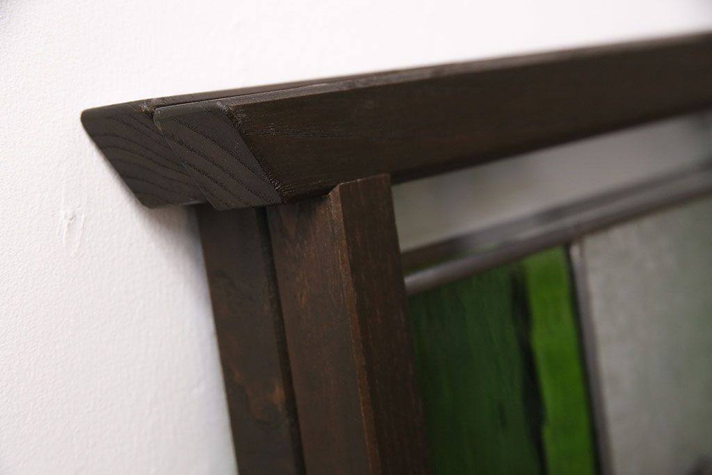 大正ロマンな衝立を新規製作!当店商品を参考にデザイン。結霜ガラス、黄色・緑・紫の色ガラスを組み入れ。(つい立て、パーテーション)