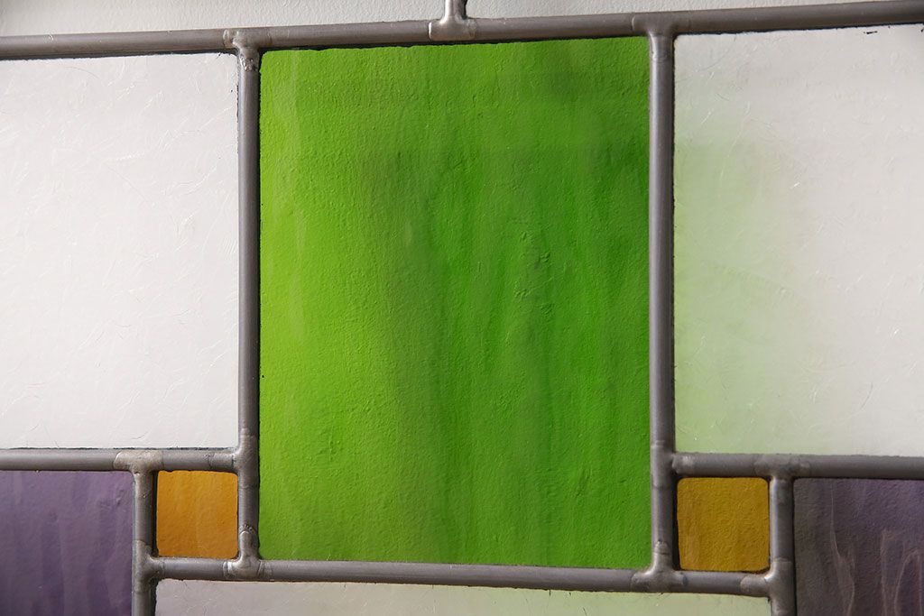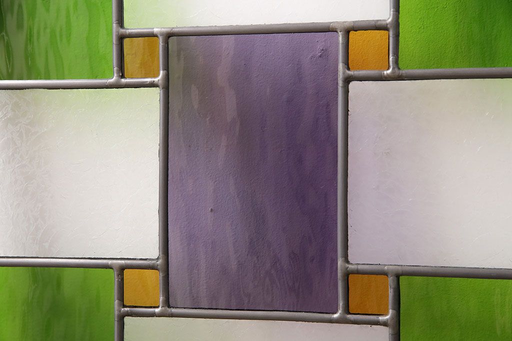 (配色)黄色、明るい緑、紫の色ガラスを使用