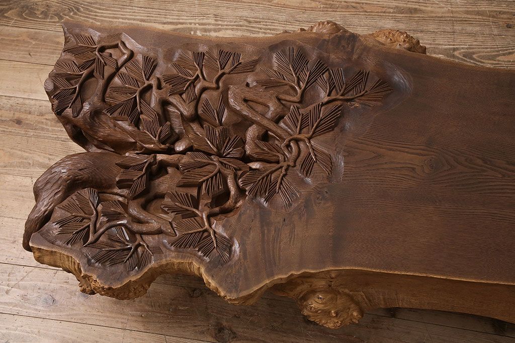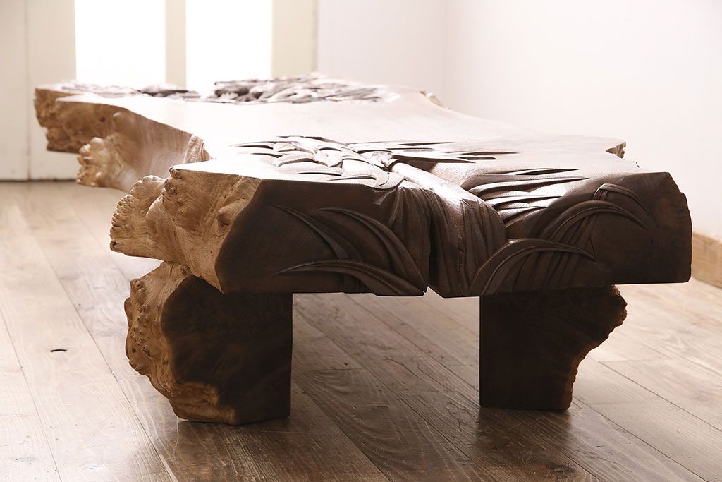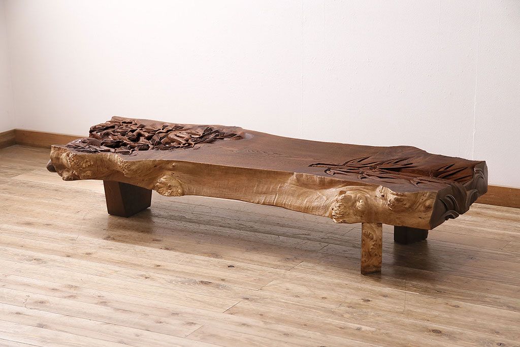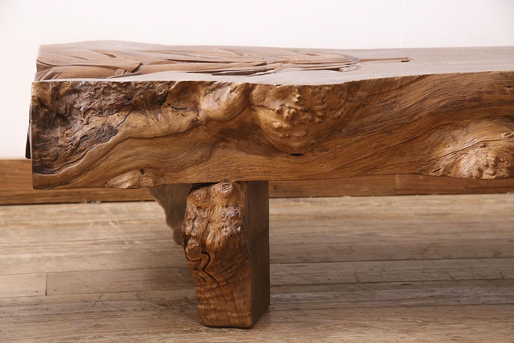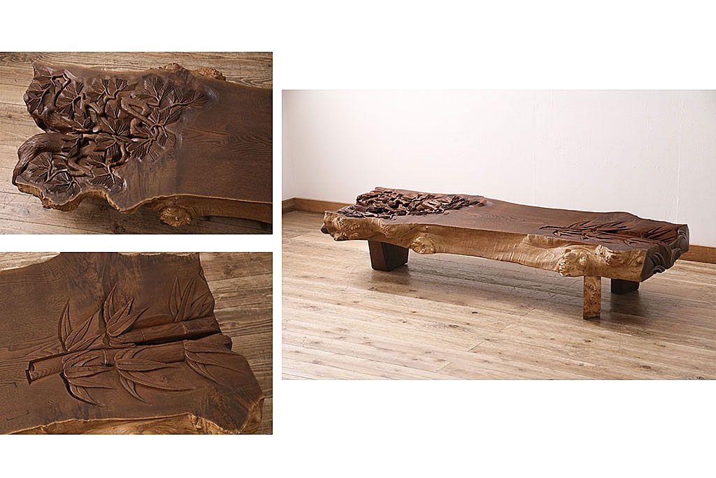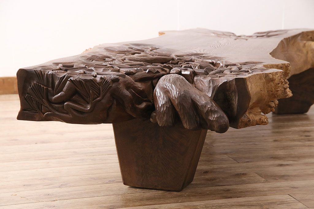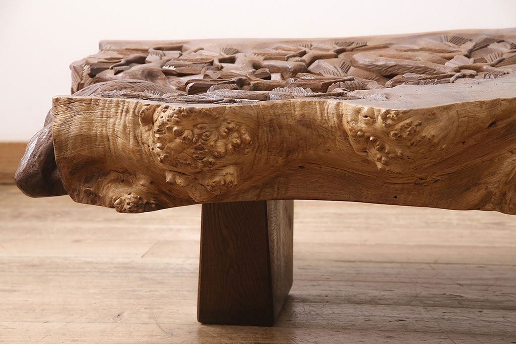 店長おすすめの逸品 > 国産 工芸家具 総栗材 職人技が素晴らしい!凝った彫刻が魅力的な一枚板のテーブル(ローテーブル、座卓、センターテーブル)(R-048585)