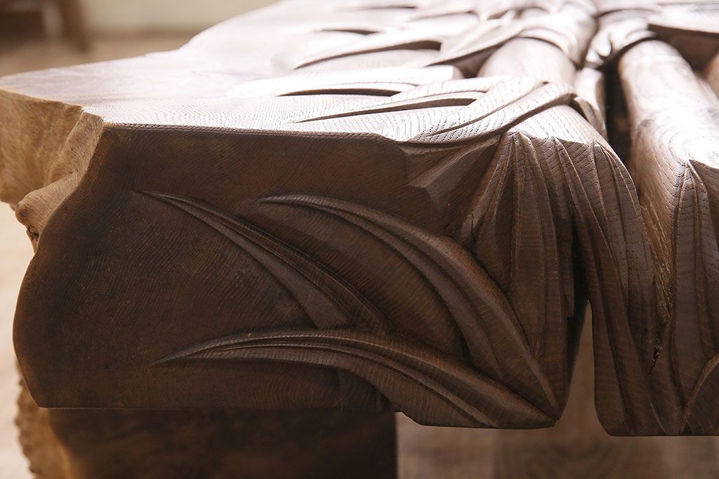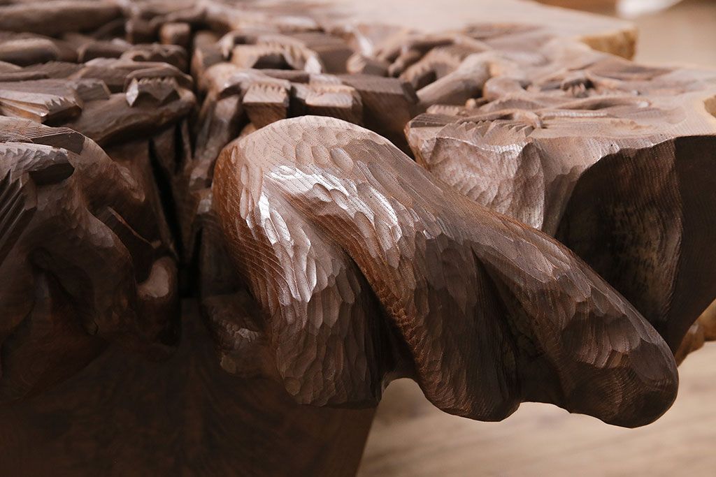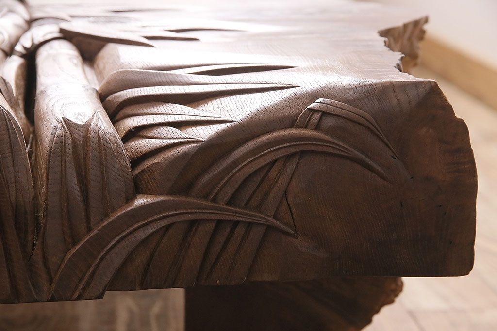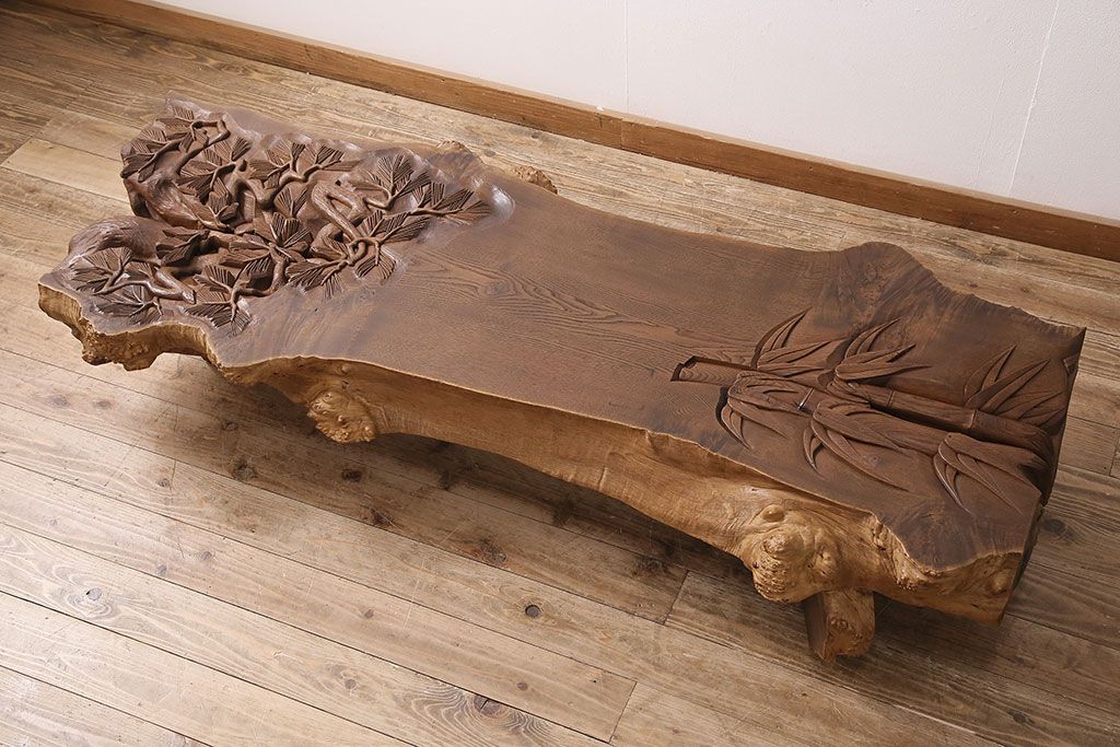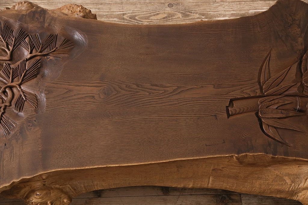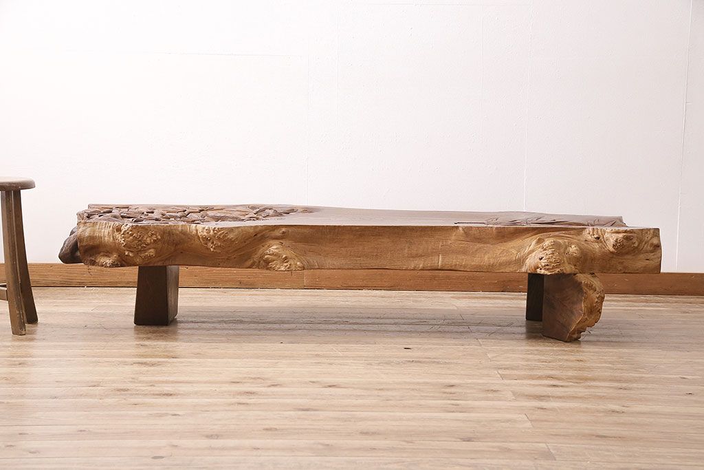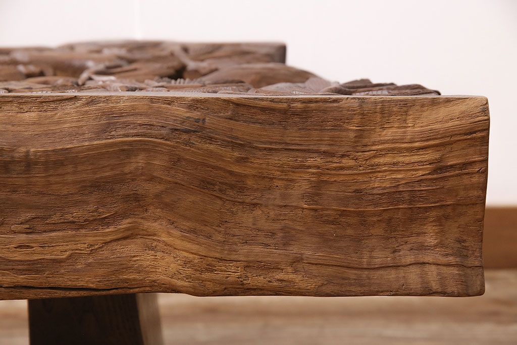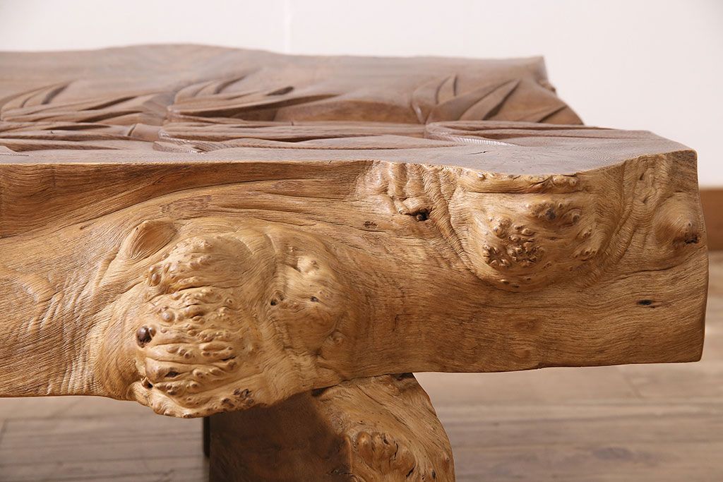 店長おすすめの逸品 > 国産 工芸家具 総栗材 職人技が素晴らしい!凝った彫刻が魅力的な一枚板のテーブル(ローテーブル、座卓、センターテーブル)(R-048585)