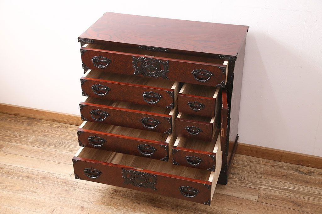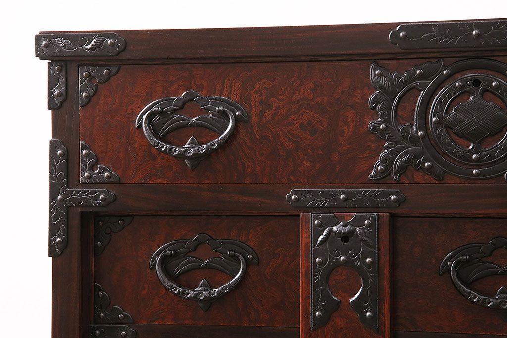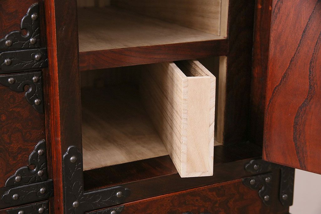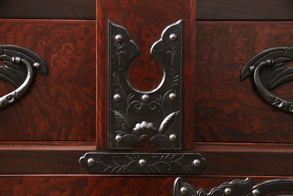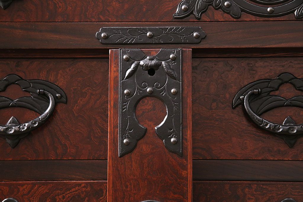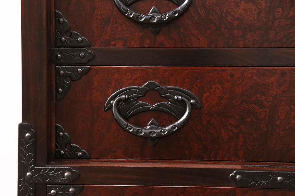 ラフジュ工房> 民芸家具 > 中古 岩谷堂箪笥 桜木家具店作 伝統車付きタンス 豪華な金具と重厚な佇まいが魅力の車箪笥(和箪笥、引き出し)(R-048609)