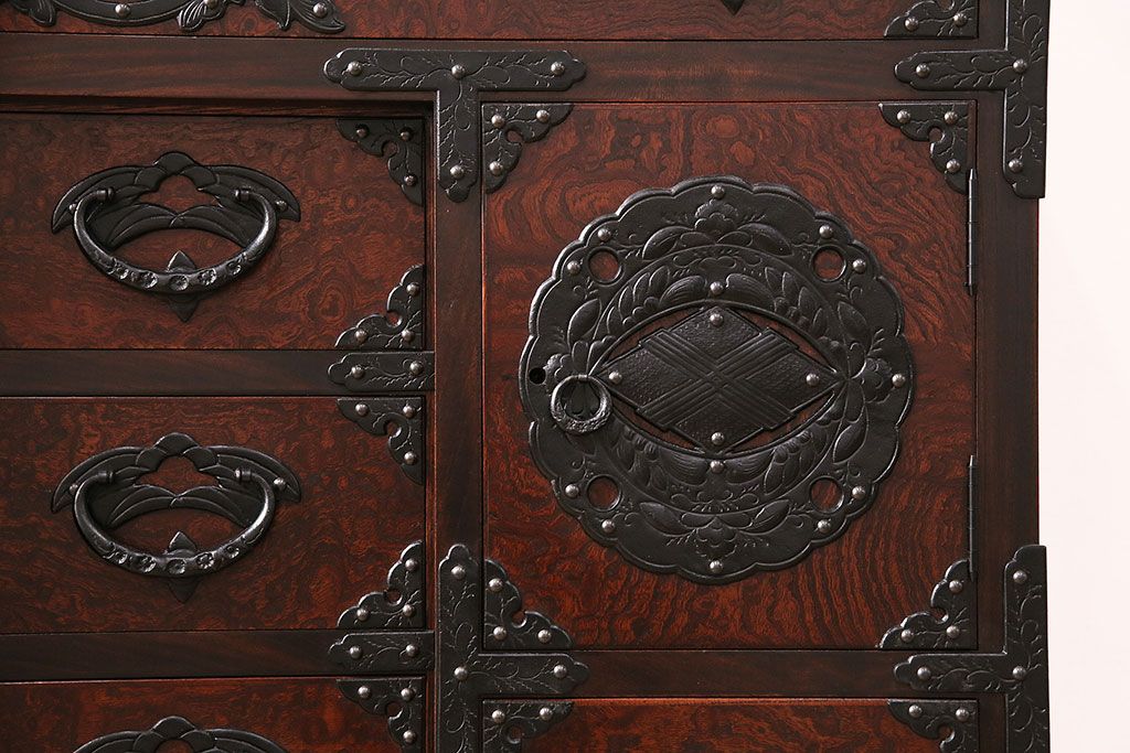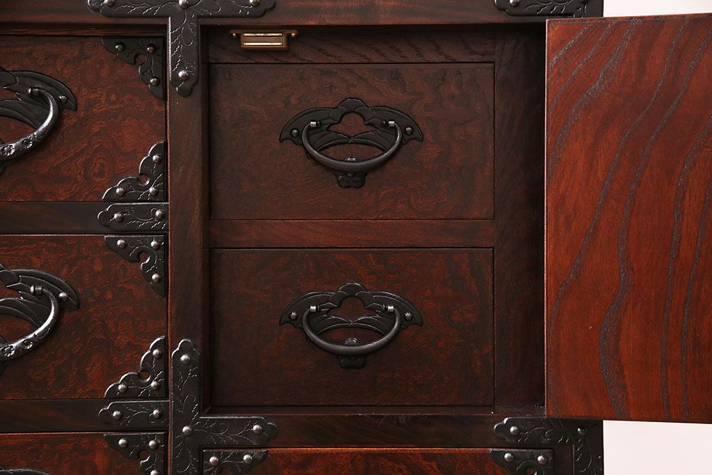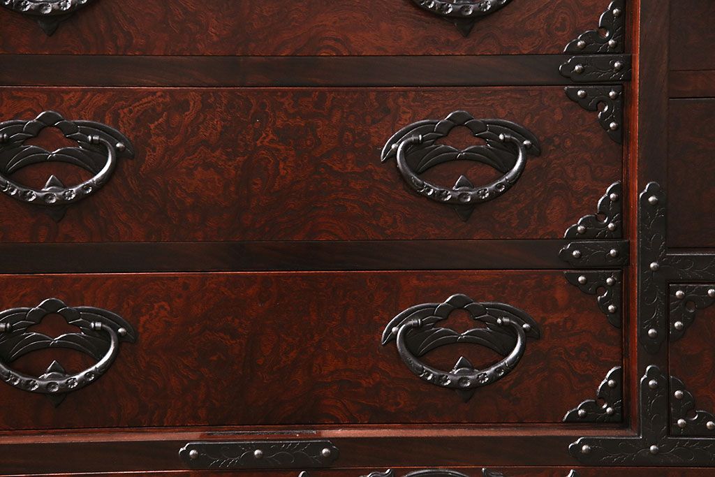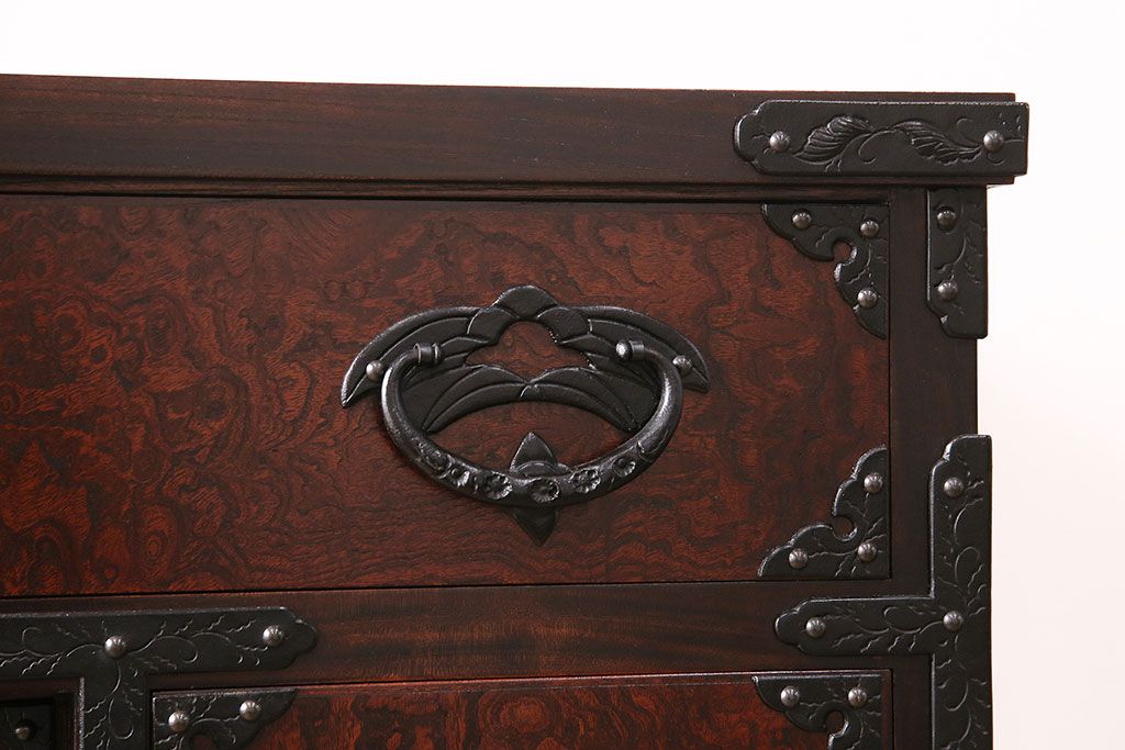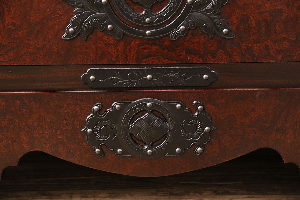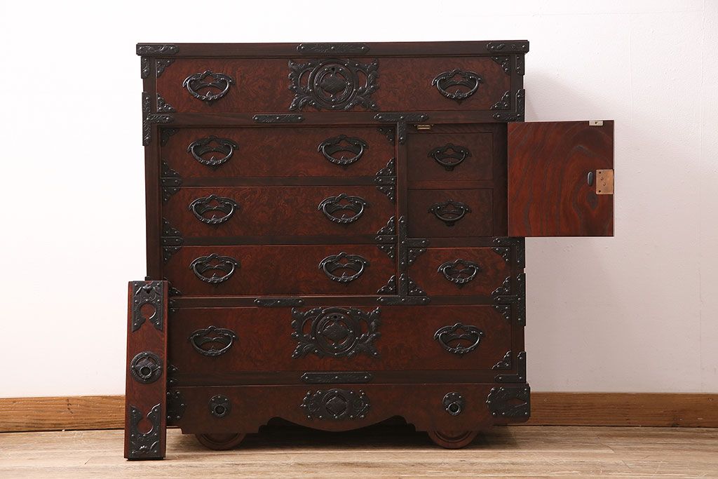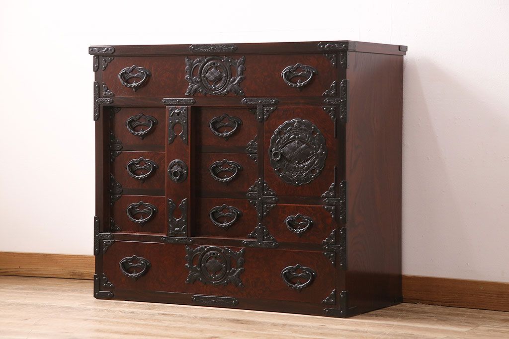 ラフジュ工房> 民芸家具 > 中古 岩谷堂箪笥 桜木家具店作 伝統車付きタンス 豪華な金具と重厚な佇まいが魅力の車箪笥(和箪笥、引き出し)(R-048609)
