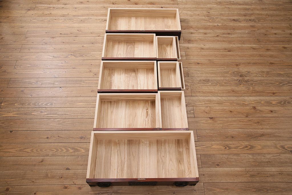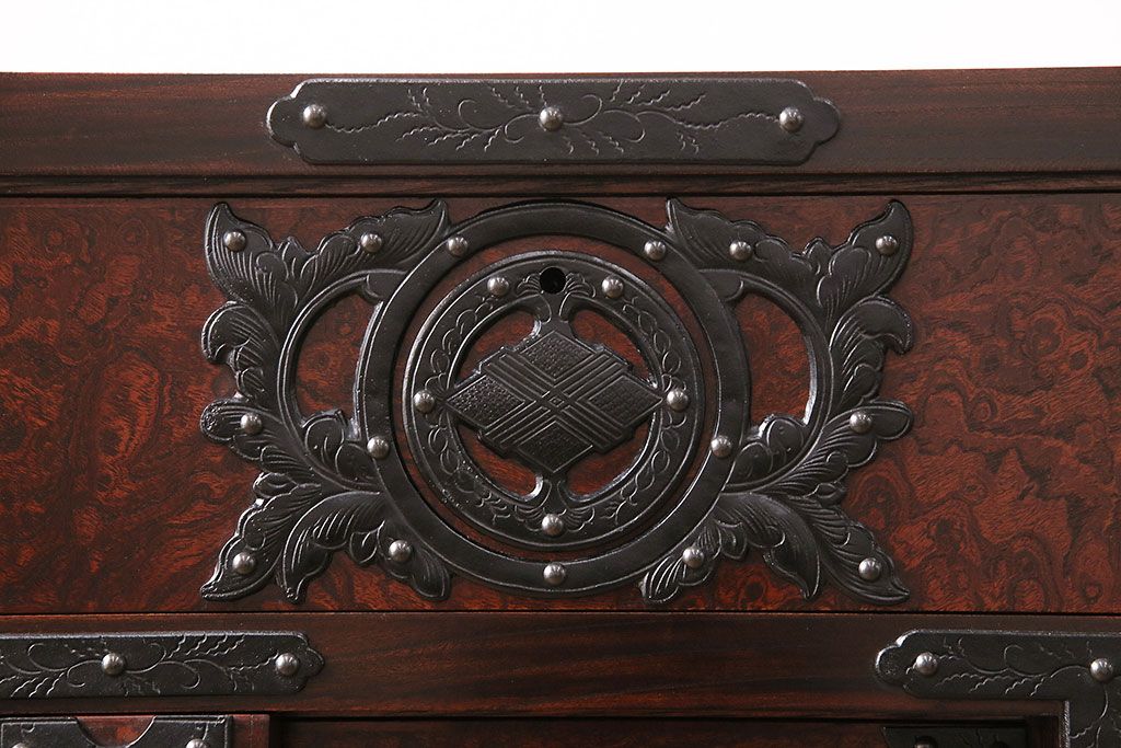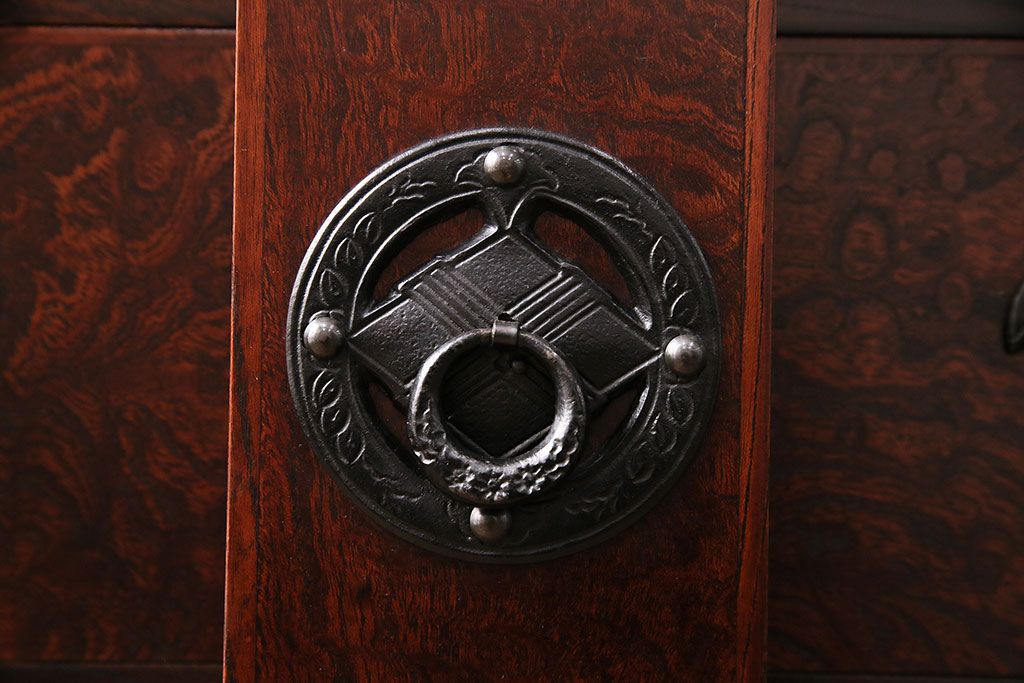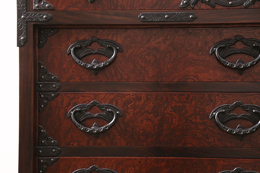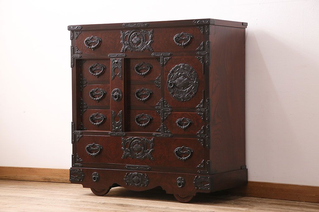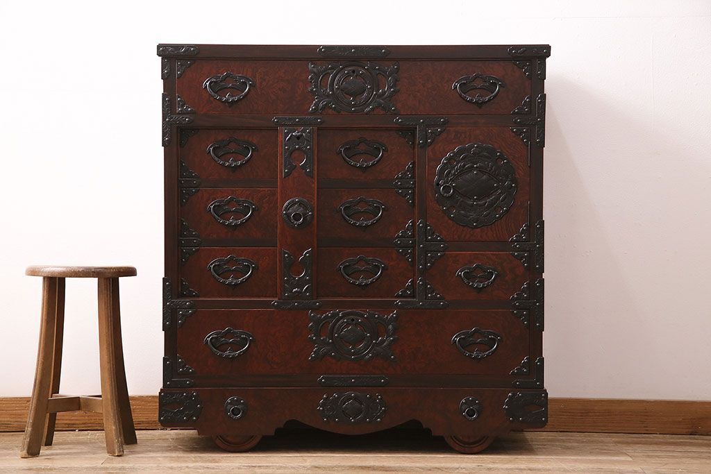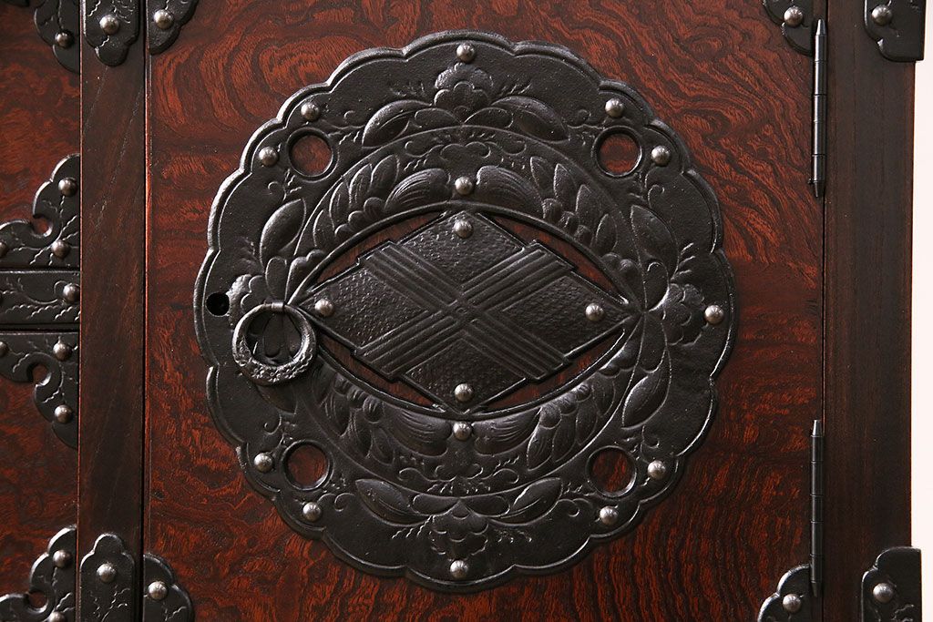 ラフジュ工房> 民芸家具 > 中古 岩谷堂箪笥 桜木家具店作 伝統車付きタンス 豪華な金具と重厚な佇まいが魅力の車箪笥(和箪笥、引き出し)(R-048609)