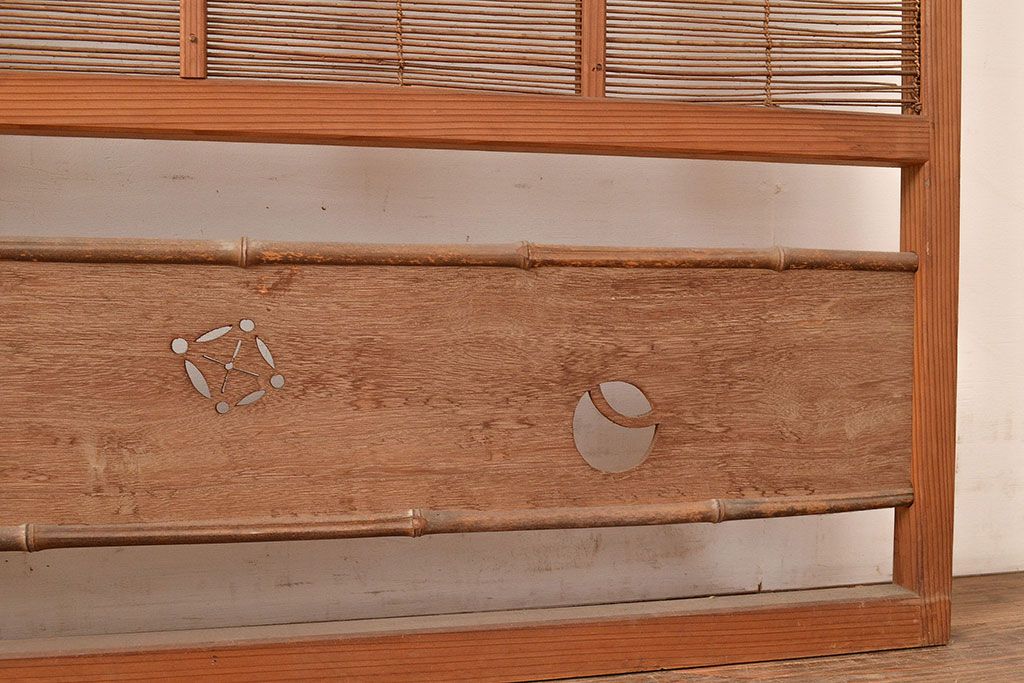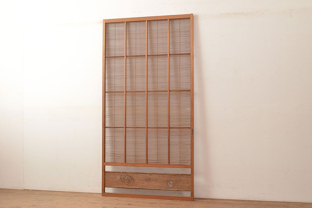 和製アンティーク 「千両」小判の透かしがアクセントの御簾戸1枚(建具、簾戸、簀戸、葭戸、夏障子、夏戸、すど、葦戸)(R-048307)
