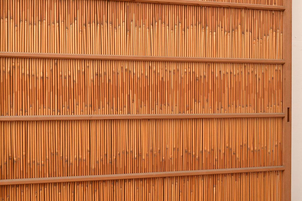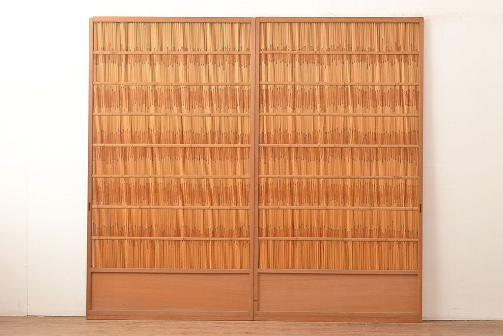 ドア・建具> 引き戸 > 和製アンティーク 竹の桟が上品な和の雰囲気を醸し出す御簾戸2枚セット(簾戸、簀戸、葭戸、夏障子、夏戸、葦戸)(R-048308)