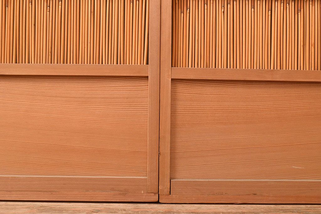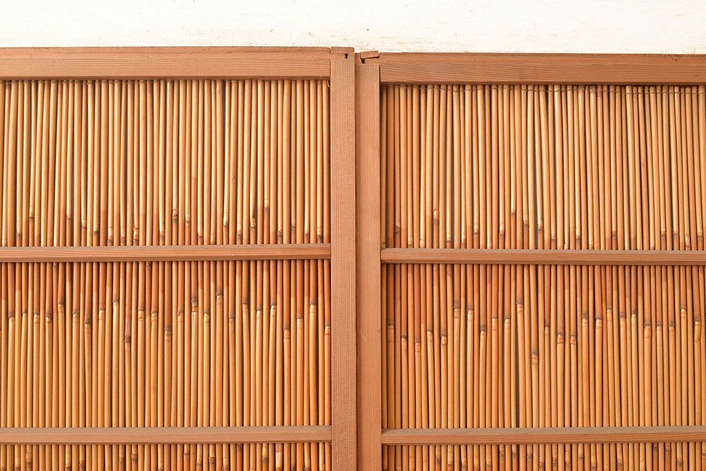 ドア・建具> 簾戸・夏戸・網戸 > 和製アンティーク 竹の桟が上品な和の雰囲気を醸し出す御簾戸2枚セット(簾戸、簀戸、葭戸、夏障子、夏戸、葦戸)(R-048308)