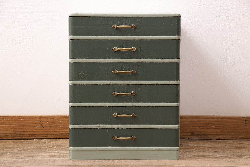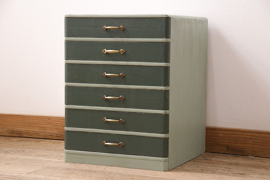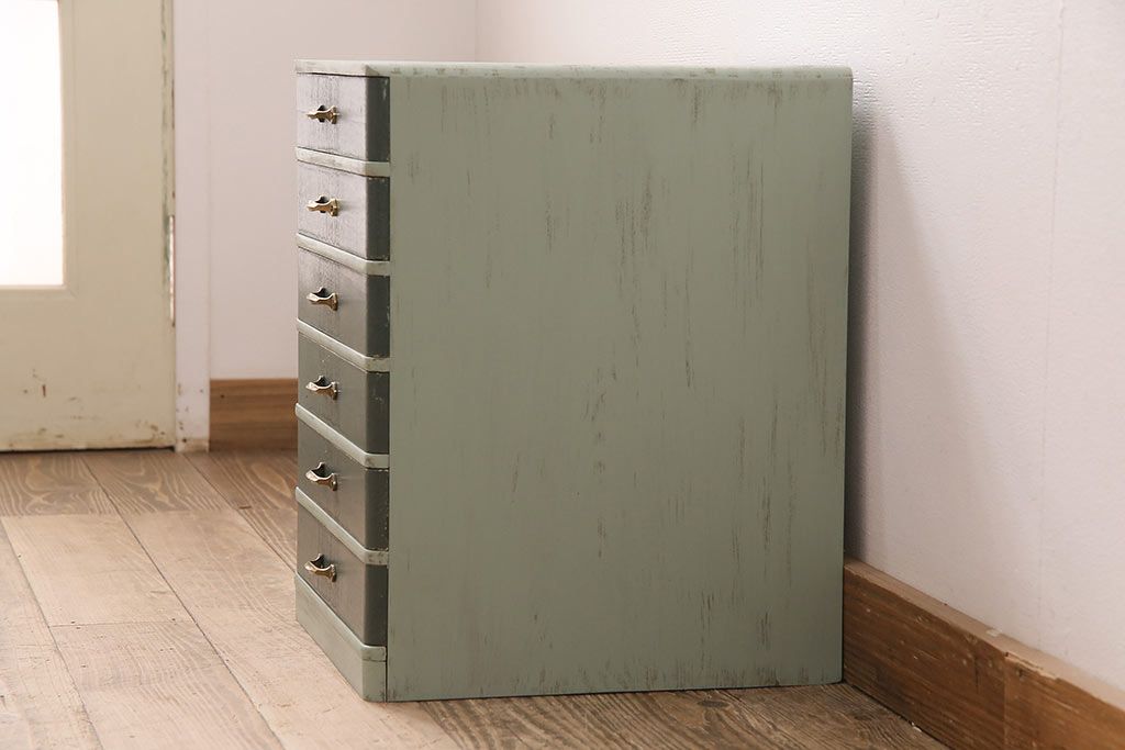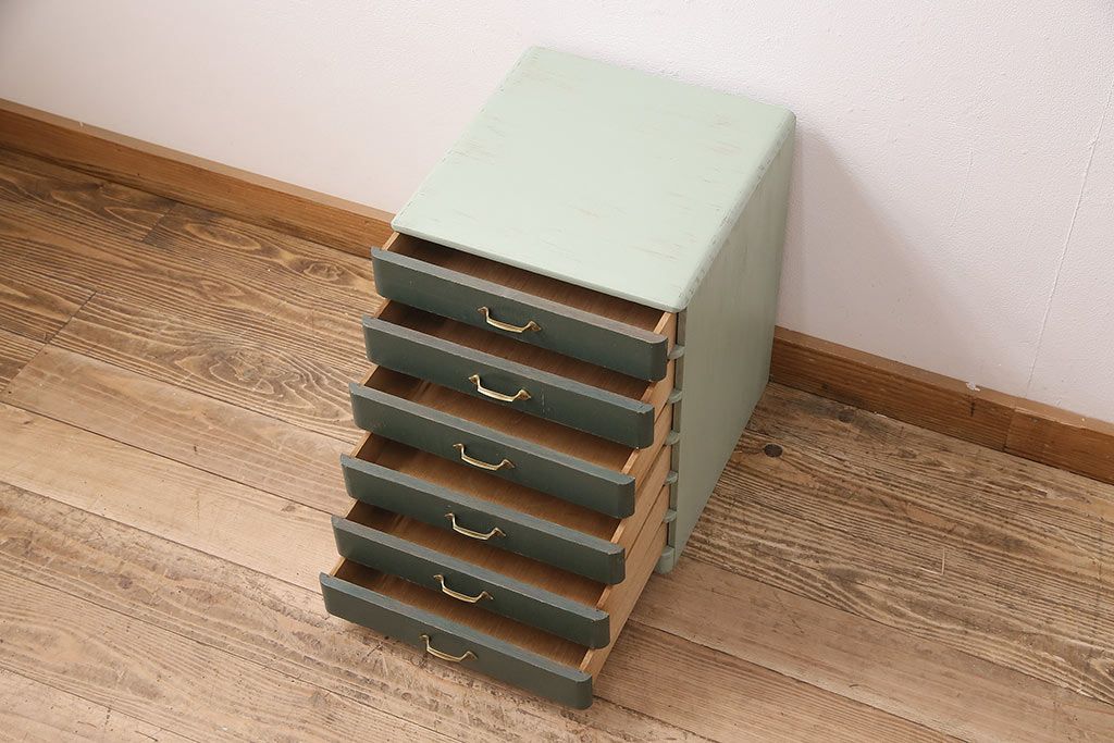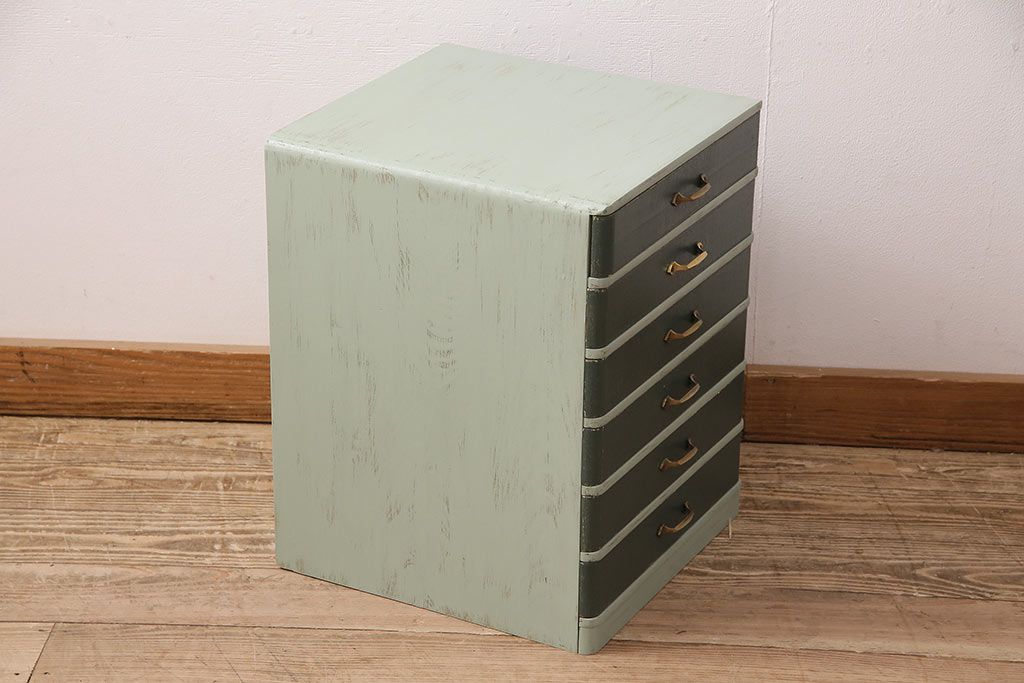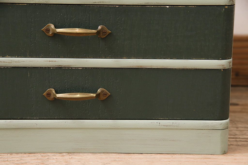 昭和レトロ ペイント 優しいグリーンのツートーンカラーがおしゃれな小引き出し(小物収納、卓上収納、書類収納)(R-048738)です。