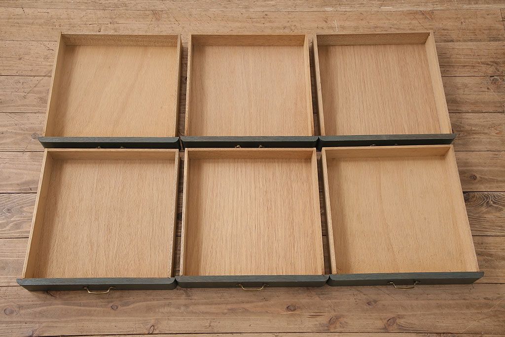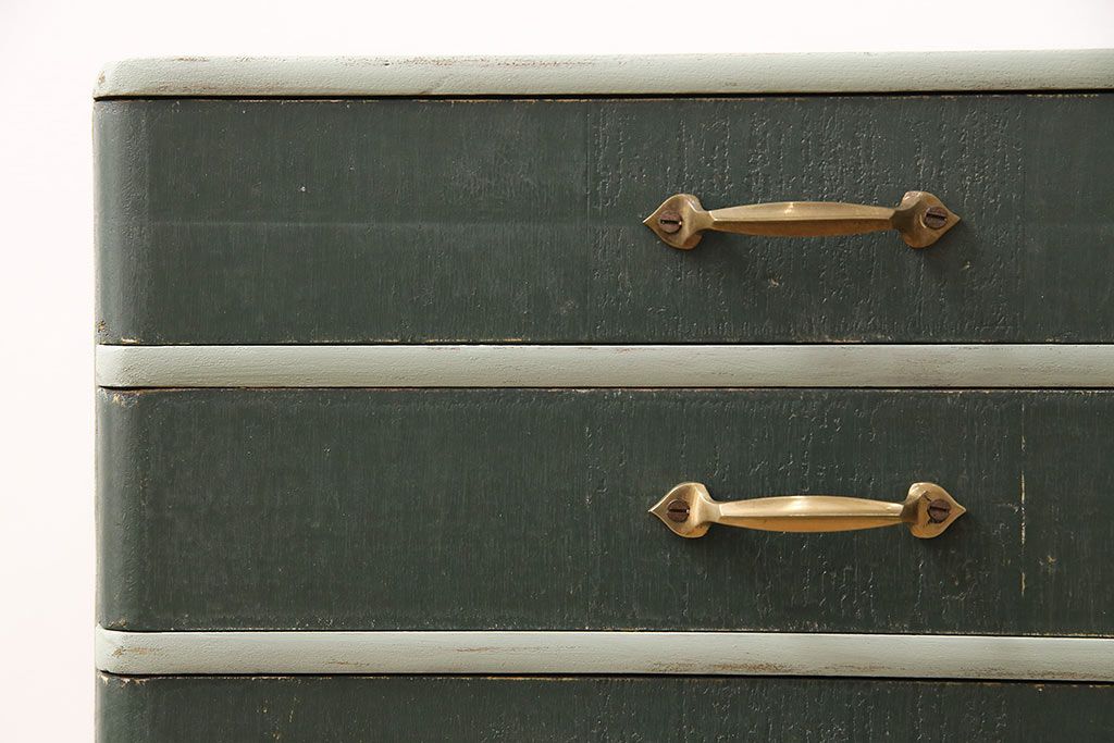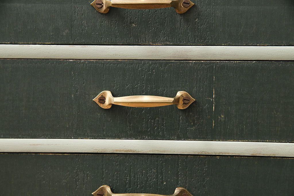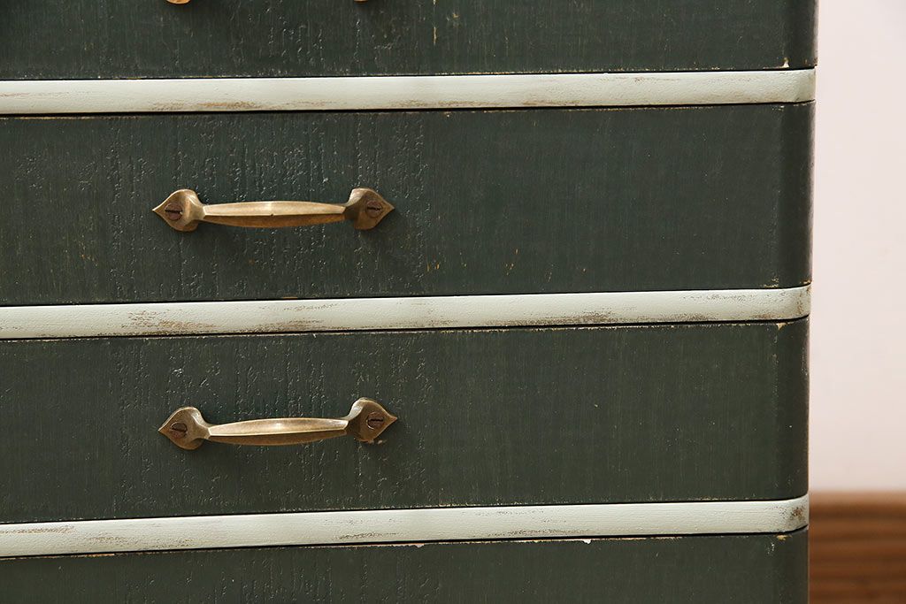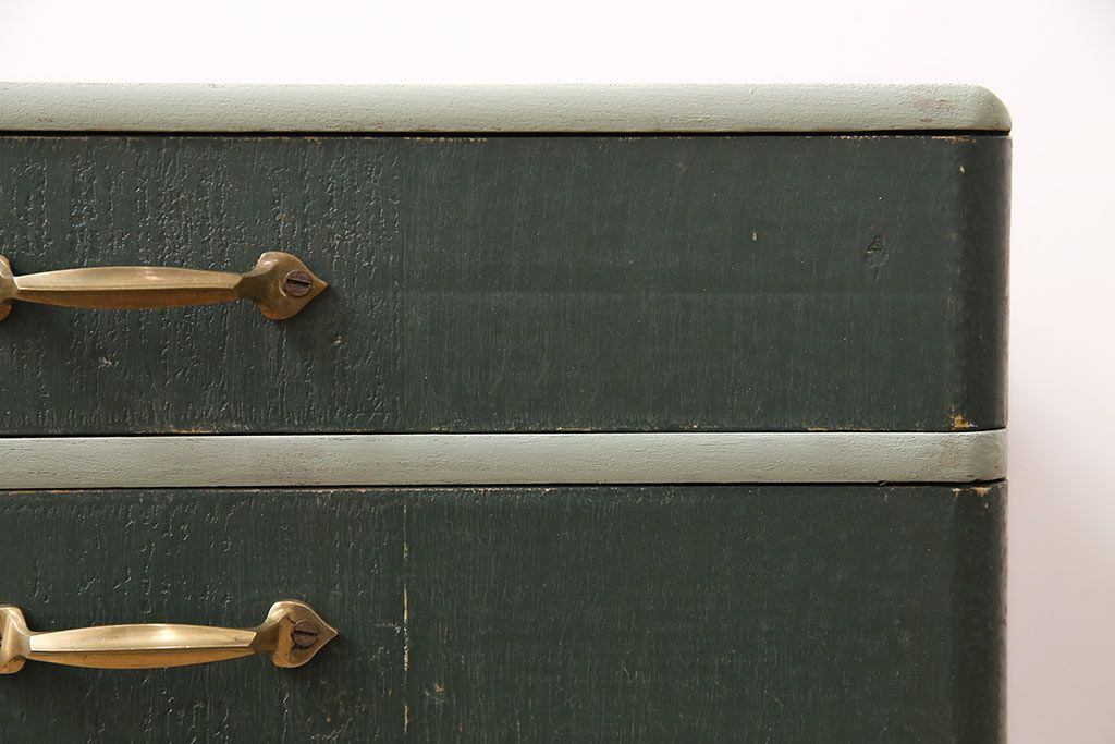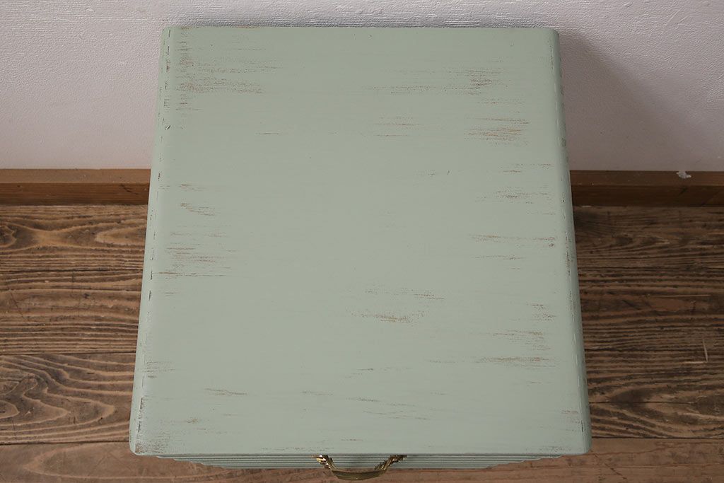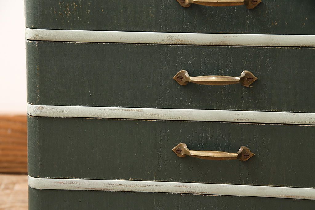 昭和レトロ ペイント 優しいグリーンのツートーンカラーがおしゃれな小引き出し(小物収納、卓上収納、書類収納)(R-048738)